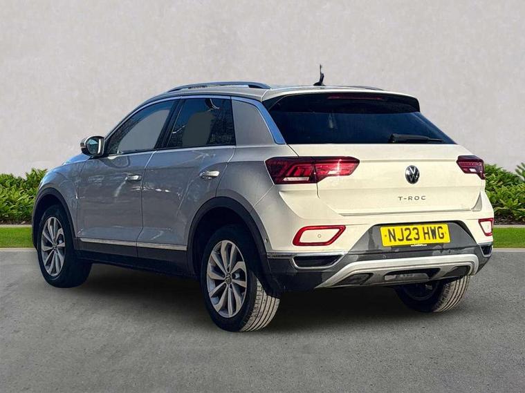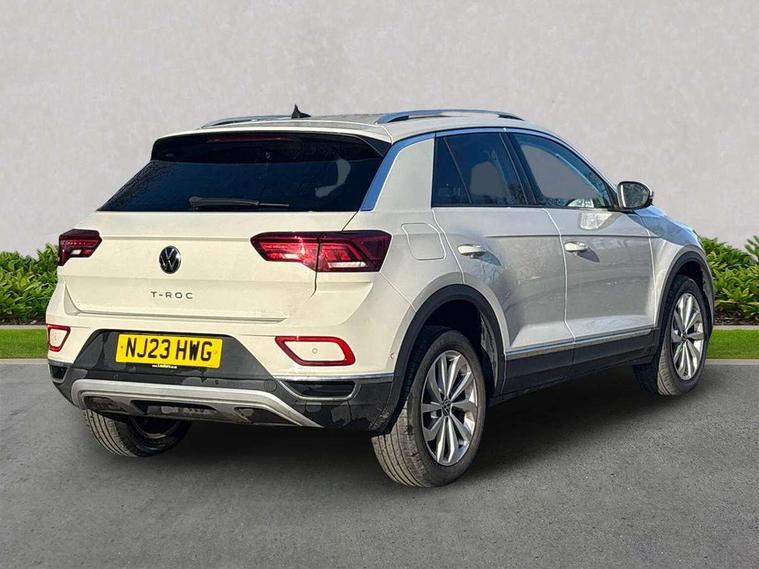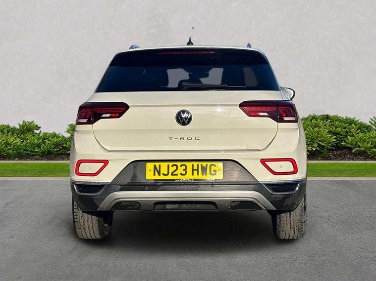 10.25" Digital cockpit pro, Bluetooth mobile phone interface, Driver alert system with fatigue detection, Driver tips and journey analysis, Dynamic road sign display, Emergency call service, Lane keeping system Lane Assist, Modified key software - reduce switch off time for key status change to Long no motion, Online services, Park assist including front and rear parking sensors, Power assisted speed sensitive steering, Service interval indicator, Tailgate/trunk lid release from outside, Think blue trainer driver tips and journey analysis, Warning sound and light for front seatbelts unfastened, Wireless app connect, Battery regeneration during braking, Front shock absorption, Rear shock absorption chassis with increased ride height, Start/stop function with battery regeneration, Diversity antenna for FM reception, Front and rear 6 speakers, Music playback - MP3, WMA and AAC files, Premium USB cable in choice of either Apple or Android smartphone compatibility, SD card slot, Simultaneous pairing of 2 compatible mobile devices, Title and cover art display, We Connect and We Connect Plus functionality, 3rd brake light, Auto dimming interior rear view mirror, Automatic hazard lights activation under emergency braking, Automatic headlight control with LED separate daytime running lights with coming/leaving home function, Body colour sports bumpers with silver metallic underbody fascia, Dynamic headlight range control with self adjusting whilst driving, Extended roof spoiler, Exterior mirrors aspherical on driver side, convex on front passenger side, External USB type C socket and charging sockets, Front windscreen wiper with intermittent wipe and 4 position delay, Heated rear window, LED Plus headlamps, LED rear combination lamps, LED rear number plate lights, LED tail lamp rear comination lamps, Light mode for poor weather, rain, fog or snow, Power windows with comfort operation and circuit breaker, Rain sensor, Rear exhaust tailpipe, Rear fog light on one side and reversing lights on both sides, Rear side wing doors, Rear wash/wipe with intermittent wipe setting, Remote electrically foldable door mirrors, puddle lights and reverse activated passenger's door mirror, 12V power socket in centre console, 3 rear head restraints, 3 seat bench in 2nd row, 4 load lashing points in luggage compartment, Air care climatronic air conditoning system with active combination filter and 2-zone temperature control, Chrome plated radiator grille inserts, air vent surrounds and light switch surrounds, Door and side trim panel with leatherette insert, Drawer under drivers seat, Front + rear carpet mats, Front centre armrest, Front comfort sports seats, Front cupholders x 2, Front footwell illumination, Instrument lighting, white adjustable panel illumination, Interior ambient lighting and surround lighting, Interior light delay, Isofix child seat preparation, Leather gearshift handle, LED interior light with switch off delay/dimmer and 2 front/rear LED reading lights, Load-through provision with cup holder when folded down ('Unsplit rear seat bench, split folding backrest, with centre armrest), Luggage compartment lighting, Non-folding front passenger seat backrest, Single front passenger seat, Storage compartment in left and right luggage area, Storage compartment in rear doors, Storage compartments in driver and front passenger doors, Sunvisors with illuminated vanity mirrors, Variable boot floor, height adjustable and removable, Driver assistance pack without proactive passenger protection - T-Roc, 3 point height adj front seatbelts + pretensioners, 3 point seatbelts in outer rear with ECE label, ABS, Child locks on rear doors, Driver and front passenger airbag with front passenger airbag deactivation, Driver and front passenger safety-optimised head restraints, Drivers seatbelt reminder, Electronic parking brake, Electronic Stability Control (ESC) inc EDL (Electronic Differential Lock) and ASR (Traction Control), Front and rear passengers curtain airbag system including front side airbags, Front assist with city emergency braking and pedestrian monitoring, Front disc brakes, Front seat side impact airbags, Predictive pedestrian protection, Rear disc brakes, Single tone horn, Tyre pressure loss indicator, Volkswagen roadside assistance, Alarm with interior protection, Anti-theft alarm system with interior monitoring, backup horn, and towing protection, Remote central locking with SAFELOCK, radio remote control with 2 remote control folding keys, Trims for alloy wheels,