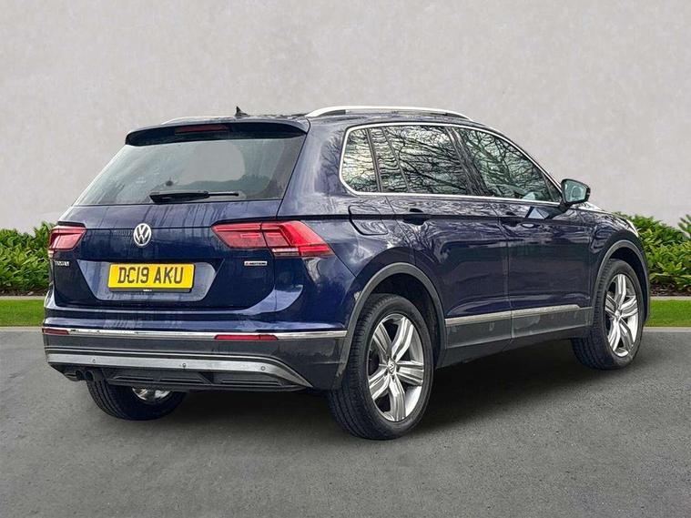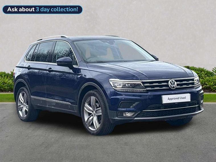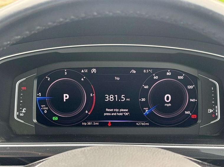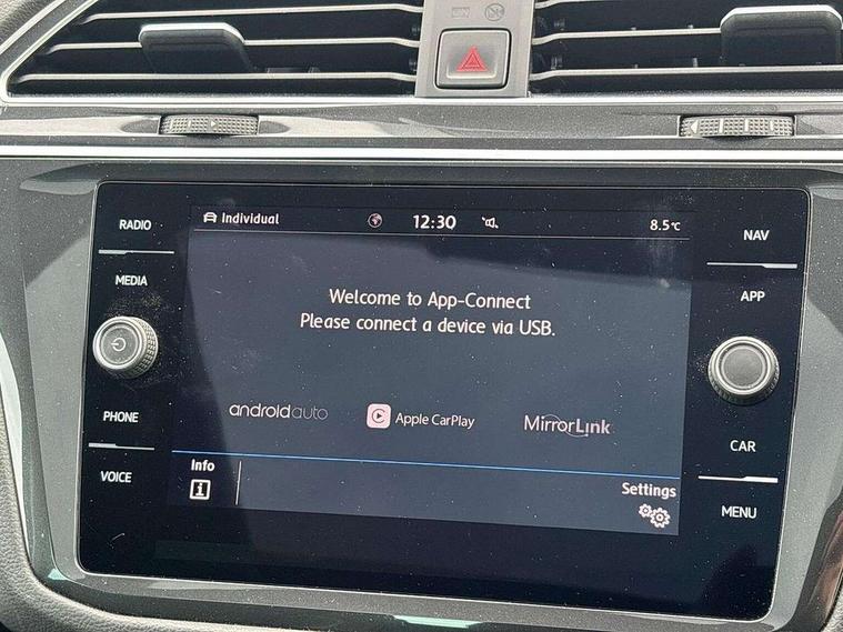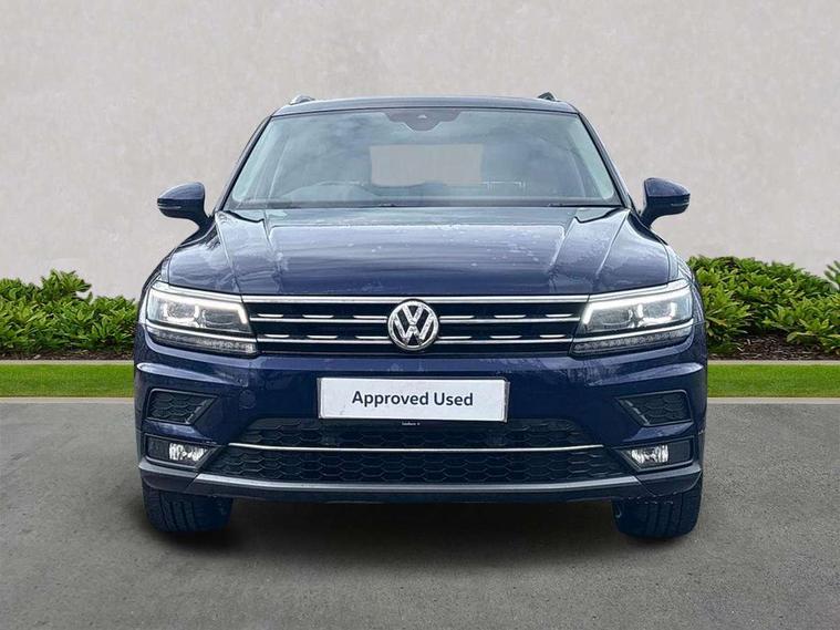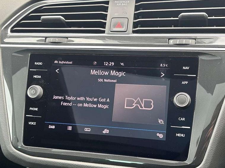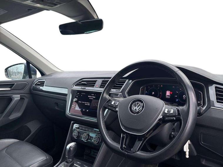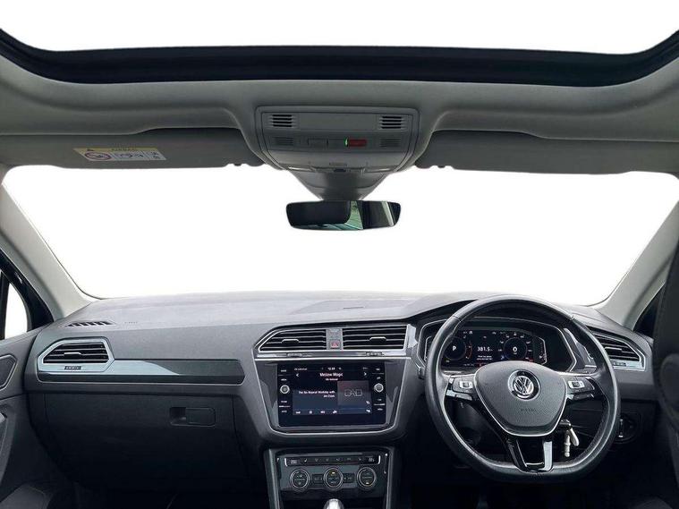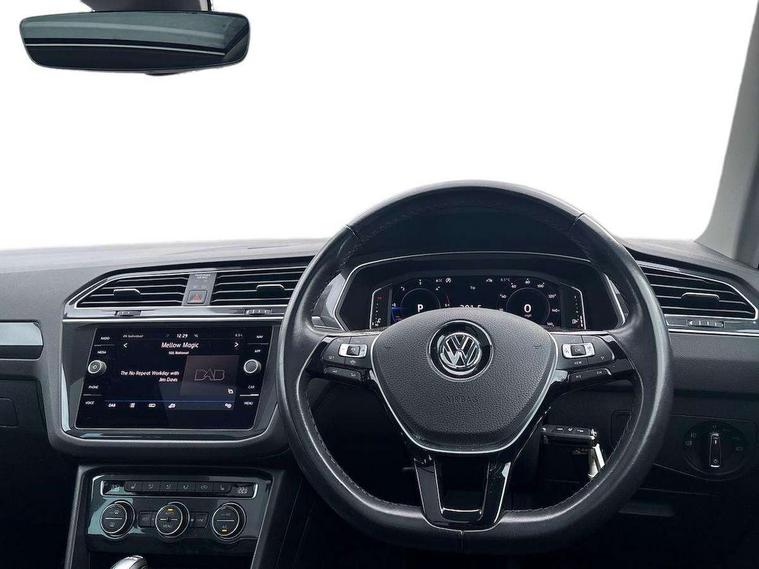 Active information display, Adaptive cruise control, App-Connect, Bluetooth phone integration system, Car-Net Security and Service, Coasting function, Distance control assist, Drive mode selector, Driver profile selection, Fatigue detection system, Front assist, radar sensor controlled distance monitor, city emergency braking + predictive pedestrian protection, Instrument cluster, Lane assist, Low washer fluid warning light, Multifunction colour display, Outside temperature display, Service interval indicator, Speed limiter, Start/Stop function, Warning lights, Diesel particulate filter, Misfuel prevention device for diesel engine, XDS electronic differential lock, 2x USB sockets in front, 4 X 20 watt output, DAB Digital radio, MP3 compatible single CD player, SD card slot, Simultaneous pairing of 2 compatible mobile devices, SMS functionality - read, compose and send SMS messages using touch-screen display, Title and cover art display, 3D effect cherry red LED rear tail lights, Auto dimming interior mirror, Automatic activation of hazard warning lights, Black door protector with chrome inserts, Body colour door handles, Body colour door mirrors, Body coloured bumpers, Chrome side body trim, Chrome side window surrounds, Chrome trimmed radiator grille, Coming/leaving home lighting function, Dusk sensor + auto driving lights, Electric folding door mirrors, Electric heated + adjustable door mirrors, Electric panoramic sunroof with sunblind, Front air intake with chrome strip, Front and rear electric windows, Halogen clear headlights with integrated indicators and range adjustable, Heated rear window, High level 3rd brake light, LED headlights with dynamic light assist daytime running lights and cornering front fog lights, LED rear number plate lights, Rain sensor windscreen wipers, Rear windscreen washer and wiper with interval delay, Side door sills with chrome inserts, Side skirts and rear bumper with chrome insert, Silver rear diffuser trim, Silver roof rails, Silver under body guard, Tinted windows (B pillar backwards), Windscreen wipers/ intermittent wipe + 4 position delay, 12V Accessory socket in centre console, 3 rear headrests, 3 zone climate control, 4 load lashing points, 40:20:40 split folding rear seats, Bag hook in luggage compartment, Driver + front passenger lumbar support, Foldable passenger seatback, Front + rear carpet mats, Front centre armrest with 12v socket, Front centre armrest with storage + rear 2 air vents + cupholders, Front seat back storage pockets, Front seatback folding tables, Height/reach adjust steering wheel, Illuminated driver/passenger vanity mirrors, Illuminated scuff plates, Instrument lighting white adjustable panel illumination, Interior light with delay, Isofix Preparation 2 Rear child seats, Leather gear knob, Load through provision with 2 cupholders when folded, Lockable cooled glovebox, Luggage compartment lighting, Luggage compartment side storage, Map pockets on front seats, Passenger seat height adjuster, Passenger underseat drawer, Rear cupholders, Removable luggage cover, Sliding/reclining rear seats, Storage compartment in driver's door, Storage compartment in passenger's door, Storage compartment in rear doors, Storage tray on dashboard, Sunglasses storage, Variable boot floor, Ambient lighting pack - Tiguan, Winter pack - Tiguan/Tiguan Allspace, 3 rear 3 point seatbelts, ABS+EBD+Brake assist, Active bonnet, Active pedestrian safety system, Curtain airbags, Driver/Front Passenger airbags, Driver/Passenger whiplash optimised head restraints, Drivers knee airbag, DTC - Drag torque control, Electronic parking brake with auto hold, ESP with EDL + ASR, First aid kit, Front side airbags, Front ventilated disc brakes and rear disc brakes, Head airbag system, Height adjustable front 3 point seatbelts + pretensioners, Hill hold control, Passenger airbag deactivate switch, Passenger knee airbag, Proactive preventive occupant protection, Rear side airbags, Rigid safety cell with front and rear crumple zones, Seatbelt warning lamp and buzzer, Two tone horn, Warning triangle, Alarm with interior protection, Electronic engine immobiliser, Remote central locking with 2 remote folding keys, Chrome door trim inserts, Piano black interior trim, Steel space saver spare wheel,