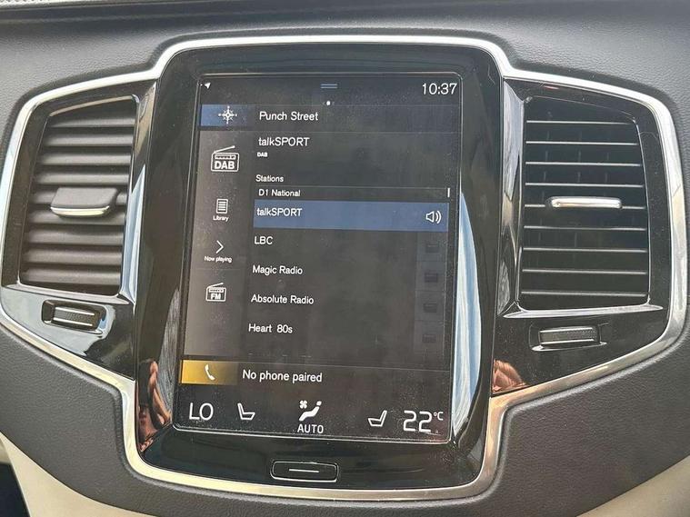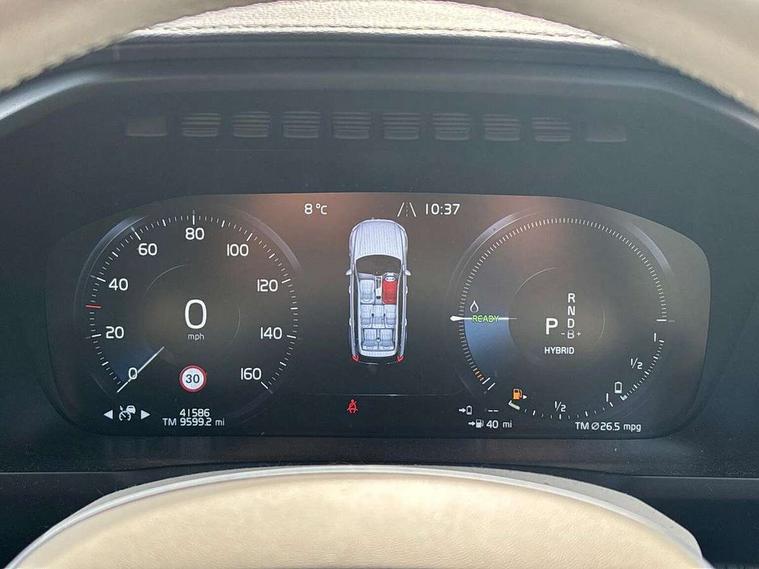 12.3" Active TFT crystal driver's instrument display, 9" centre console portrait touch screen, Adjustable steering wheel force, Bluetooth hands free telephone connection, Drive mode settings, Driver alert control with lane keeping aid, Driver assistance (pilot assist and adaptive cruise control), Driver awareness - Blind spot information system with steer assist, cross traffic alert with autobrake and rear collision warning and mitigation, Front and rear park assist, Handsfree power tailgate opening and closing, Oncoming Lane Mitigation, Sensus navigation with European mapping and traffic information, Service interval indicator, Speed limiter, Speed sensitive steering, Trip computer, Voice activated control for key functions, Volvo on call, 7m Charge Cable with 3 Pin Plug, 7m Type 2/mode 3 charge cable, 8 speed automatic transmission with start/stop + manual change functions, All wheel drive system, Electric rear axle drive, Lithium-ion battery, Touring chassis, DAB Radio (Digital Audio Broadcasting), Steering wheel remote infotainment controls, Adaptive brake lights with high level LED brake lights, Auto dimming interior + exterior mirrors, Automatic headlight levelling system, Automatic LED Headlights + Active high beam incorporating daytime running lights, Body colour bumpers, Chrome Front and Rear Bumper plus Lower Side Mouldings, Chrome window surround, Colour coordinated auto folding and heated power door mirrors, Dual integrated exhaust pipes, Front and rear power windows, Heated washer nozzles, Home safe and approach lighting, Integrated roof rails in silver, Matt silver front grille with chrome detailing, Puddle lights, Rain sensor with automatic windscreen wiper activation, Rear wash/wipe with intermittent wipe setting, Recharging port located in nearside front wing, Roof antenna, Roof spoiler, Visible VIN plate, 12V socket front tunnel console, rear passenger compartment and cargo area, 4 Zone electronic climate control + cooled glovebox, A-pillar parking ticket holder, Ambient door and instrument panel lighting, B Pillar ventilation, Bright metal luggage threshold, Cargo divider with grocery bag holder, Centre console cupholders and storage, Driver's side lower dashboard storage compartment, Front and rear door pocket and front cupholder illumination, Front footwell and side step illumination, Front headrests, Front seat cushion extensions, Heated front seats, Height/reach adjustable steering column, Illuminated luggage compartment, Illuminated tailgate, Illuminated vanity mirrors + ticket holder, Illumination lockable glovebox compartment, Integrated sun curtains in rear doors, Load protection net, Luxury floor mats, Multicolour theatre lighting, Orrefors Crystal Gear Lever Knob, Outboard armrest with cupholder and storage for third row passengers, Power driver seat with multi directional lumbar support and memory for seat and exterior mirrors, Power folding 2nd row headrests, Power passenger seat with multi directional lumbar support and memory, Rear footwell and side step illumination, Rear headrests, Recharge aluminium tread plates, Semi automatic load cover, Steering wheel audio controls, Three 2nd row individual folding passenger seats with fore/aft adjustment, Two 3rd row individual folding passenger seats, Underfloor cargo storage, 7 three point seatbelts, City safety includes pedestrian, cyclist and large animal detection and front collision warning with full auto brake, Drivers knee airbag, Dual stage driver/passenger airbags, First aid kit, Front seats SIPS airbags, Hill descent control, Hill start assist, IC (Inflatable Curtains) - Full Length, Passenger airbag cut-off switch, Power parking brake with auto hold function, Road sign information display, Run off Road Mitigation, Run off Road Protection, Seatbelt reminder and pretensioners for all seats, SIPS (Side Impact Protection System), Slippery road and hazard light alert, Stability and Traction Control with Spin control, Engine Drag Control and Corner Traction Control, Tyre pressure monitoring system, Vehicle deceleration control with Anti-lock Brake System, Electronic Brake Distribution and Emergency Brake Assist, Warning triangle, WHIPS whiplash protection system - front, Anti-theft alarm including immobiliser/volume sensor + level sensor, Care key with user defined top speed, Key integrated remote control central locking + fuel flap with deadlocking system and auto open/close power windows, Keyless drive (includes keyless entry and keyless start) with remote tag, Locking wheel nuts, Private locking for glovebox and tailgate, Tailored instrument panel and door tops, Tyre sealant kit + 12v compressor,