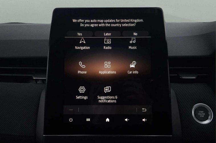 10" digital driver display, Cruise control + speed limiter, Driver attention warning, Easy link 9.3" touchscreen with built in navigation + Wifi smartphone integration plus, Eco mode driving function, Emergency call system, Engine start button, Exterior temperature display, Front park assist, Front parking sensors, Intelligent speed assistance include traffic sign recognition with speed alert, Lane departure prevention, Lane departure warning system, Lane keep assist, MULTI-SENSE driving modes (eco, sport & my sense) with 8 ambient lighting variations, My safety switch: shortcut to personalise configuration of driving aids, Over speed prevention, PAS, Rear park assist, Rear parking sensors, Rear view camera, Saftey shield [button for personalisation configuration of key ADAS features], Service interval indicator, Start/stop system, Trip computer, Wireless phone charger, Wireless smartphone replication with apple carplay and android auto, 2 USB ports, Arkamys audio system with 6 speakers, Bluetooth, 1x jack, 1x aux socket, DAB/FM Radio, Auto dimming rear view mirror with light and rain sensor - frameless, Automatic headlights, Automatic high / low beam, Automatic windscreen wipers, Body colour bumpers, Body colour door handles, Daytime running lights, Electrically adjustable door mirrors, Exhaust pipe, Exterior rear hidden door handles, Front and rear electric windows with one touch, Front and rear LED roof light x 2, Front fog lights, Full LED front headlight, Heated electric folding wing mirrors, Heated rear windscreen, LED rear signature lights with crystal clear covers, LED third brake light, Matte shadow grey F1 blade, Rain sensor, Rear brake light, Rear side wing doors, Rear wiper, Shadow grey insert on lower side doors, Shadow grey kick plate, Shadow grey side window surrounds, Shadow grey upper grille, Shark fin antenna, Tinted rear windows and tailgate, 12V socket in front, 3 rear headrests, 3 seat bench in 2nd row, Aluminium pedals, Automatic climate control with combined filter and humidity senor, Black armrests in door panel, Centre console armrest, Driver and front passenger seat height adjustment, Fabric seat with synthetic leather detailing upholstery, Floating console with storage, Front head restraints, Heated front seats, Isofix system on outer rear seats, Luggage compartment light, Manual height and reach adjustable steering wheel, Modular boot floor, Multifunctional steering wheel, Perforated synthetic leather steering wheel with blue stitching, Power supply jack, Rear seats - 1/3:2/3 foldable with fixed base, Single front passenger seat, Sun visors, 3 point seatbelts on all rear seats, ABS, Active emergency braking system - Urban and pedestrian/cyclist, Adjustable driver and passenger safety seat belts, Child locks on rear doors, Collision avoidance braking, Curtain airbags, Distance warning alert, Driver and front passenger airbags, Electronic brake force distribution, Electronic parking brake with auto hold, Emergency brake assist, ESC (Electronic Stability Control), Front passenger airbag deactivation, Front side airbags, Hill start assist, Seatbelt reminder, Tyre pressure monitor, 2x Black keys, Hands free key card with Keyless access and start, Immobiliser, Locking fuel cap, Locking wheel nuts, RAID (Renault Anti-Intruder Device) automatic door locking, Remote central locking, Superlocking, Dark interior roof trim, 17" Esprit alpine diamond cut alloy wheels, Tyre repair kit,