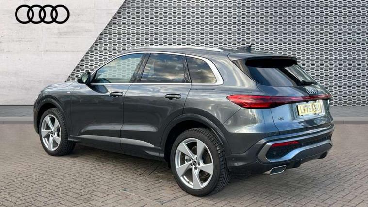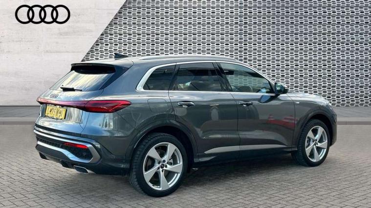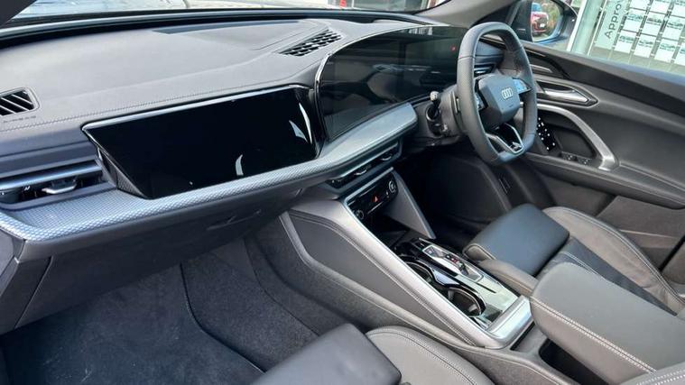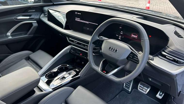 Adaptive cruise control, Attention and drowsiness detection with driver observation, Audi application store, Audi connect emergency call and service, Audi digital key, Audi drive select, Audi smartphone interface, Audi virtual cockpit plus with 11.9" OLED colour display, Camera based traffic sign recognition, Front cross traffic intersection assist, Lane change assistant with exit warning system, rear cross traffic alert and rear turn assist, Lane departure warning system, MMI navigation plus with high resolution 14.5" OLED touchscreen colour display, Park assist plus, PAS, Reversing camera, Swerve assist and front turn assist, Traffic sign based speed limiter, Audi sound system impressive sound with 8 loudspeakers including centre speaker and subwoofer, 6-channel amplifier with a total output of 180 watts, DAB Digital radio, Smartphone compartment with wireless charging, Aluminium roof rails, Auto dimming rear view mirror, Body coloured door mirrors, Electrically adjustable heated and folding + automatically dimming exterior mirrors, Front and rear electric windows, Front door sill trims with aluminium inlays, illuminated with 'S' logo, Grill frame, inlay and front air inlets in matt anthracite chrome, Headlight cleaning system, Heated rear window, High beam assist, High gloss window surrounds, LED headlights plus incl. digital DRL, dynamic coming and leaving home function with turning/all weather/motorway/manouevring and intersection lights, LED rear lights pro incl. dynamic rear indicators and illuminated light strip with animated coming and leaving home function, Logo projection light in exterior mirrors, Privacy glass, Projection third brake light for rear window in LED, Radiator grille in phantom black, Rear and side windows with heat insulating glass, Rear honeycombe grille in matt black with inlay in matt anthracite chrome, Rear side wing doors, Rear wash/wipe, S Line badge on the front wings, S line bumpers in contrasting Volcano grey metallic paint finish, Windscreen with acoustic glazing, 3 rear head restraints, 3 seat bench in 2nd row, 3 spoke leather steering wheel with multi-function buttons with touch control, flattened on top and bottom, with S badging and contrast stitching, 4 way electric lumbar support for driver and front passenger, Black carpets, Comfort centre armrest front, Deluxe 3 zone electronic climate control, Front and rear floor mats, Front sport seats with integrated head restraints, Headlining in black cloth, i-Size child seat mounting on the front passenger side and outer rear seats, i-Size and top tether on the outer rear seats, Increased charging capacity for USB ports 2X100 Watts in rear, 2X60 Watts in front, Interior trim in aluminium look, Luggage compartment lid, electrically opening and closing, Manual steering column adjustment, S embossed logo on front sport seats, Single front passenger seat, Softwrap in black, Stainless steel pedals and footrest, Steering wheel grips in perforated leather and shift paddles, Ambient lighting package plus - Q5, Rear seat bench plus pack - Q5, Storage and luggage compartment pack with luggage net - Q5, 3x3 point rear seatbelts, ABS, Acoustic vehicle alerting system, Convenience key with safelock, Driver and front passenger airbag with passenger airbag deactivation, Electric child safety locks, First aid kit with warning triangle and high visibility vests, Front emergency brake assist, Front side airbags with head airbag system and front interaction airbag, Hill hold assist, Rear seat occupant reminder, Tyre pressure loss indicator, Anti-theft wheel bolts, Thatcham approved category 1 anti theft alarm, Accent surfaces and control buttons in gloss black, Anthracite matt brushed aluminium inlays with linear embossing, Black dashboard with contrast stitching, Upper and lower interior elements in artificial leather, Tyre repair kit,