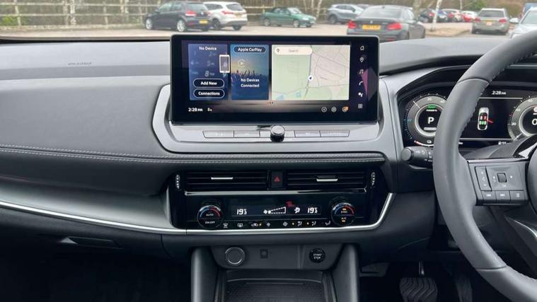 2 front USB-C ports, 2 rear USB-C ports, 360 degree Intelligent around view monitor with moving object detection, Blind spot warning, Drive assist custom mode, Drive modes (sport, normal, eco), Driver drowsiness and attention warning, e-Pedal step, Electric speed sensitive power steering, Emergency and breakdown call, Emergency lane keep assist, Emergency Stop Signal (ESS), Engine start/stop button, EV mode switch, Event data recorder, Front and rear parking sensors, Full Digital 12.3" TFT Digital Combimeter, Google virtual personal assistance, Idle stop/start system, In-car WIFI hotspot, Intelligent Cruise control (ICC), Intelligent driver alert system, Intelligent forward collision warning, Intelligent lane intervention, Intelligent speed assist, Lane departure warning system, Maximum speed limiter, Nissan connect 12.3 inch touchscreen infotainment system, Nissan connect navigation with google maps, Nissan connect services 2.0 (Google Automotive System), Outside temperature sensor, Propilot assist with Navi-Link, ProPilot park, Rear cross traffic alert, Remote control services - door locks, lights, horn and car locator, Reversing detection, Traffic jam pilot, Traffic sign recognition with legal speed adjustment, Trip computer, Wireless Apple CarPlay/Android Auto, Wireless charging pad, Limited slip differential, 6 speakers, AM/FM audio system with DAB, Bluetooth audio streaming, Auto dimming frameless rear view mirror, Auto rear wiper when reversing, Body colour mirror caps, Body coloured door handles, Bodyside mouldings, Chrome side window finisher, e-POWER badging, Electric auto folding door mirrors, Electrically adjustable and heated door mirrors with LED turn indicator, Follow me home headlights, High beam assist, Intelligent auto headlights, LED 3rd brake light, LED daytime running lights, LED Headlights, LED rear lights, One touch front and rear electric windows with remote opening and closing, One touch passenger window, Partially body coloured bumpers, Rain sensing wipers, Rear privacy glass, Rear roof spoiler, Rear side wing doors, Rear styling plate, Shark fin antenna, Silver roof rails, Splash free rain sensing wipers, Super UV and infrared cut glass, Three blink turn signal, 12v power socket in dashboard and luggage, 3 bench rear seats in 2nd row, 3 rear headrests, 60/40 split folding rear seat bench, Chrome interior door handles, Cloth upholstery, Driver and passenger sunvisors with illuminated vanity mirrors, Driver seat back pocket, Dual zone automatic climate control with pollen filter, e-POWER shifter, Electrically adjustable lumbar support for driver, Front centre console and armrest, Front cupholders, Front door with bottle holders, Height adjustable driver seat, Height adjustable front headrests, Height adjustable passenger seat, Luggage board system, Luggage space lighting, Multifunction steering wheel, Passenger seat back pocket, Rear door bottle holders, Rear seat armrest with 2 cupholders, RGB ambient light (Full area coverage), Single front passenger seat, Smooth leather steering wheel, Tilt/telescopic adjustable steering wheel, Two rear isofix child seat anchorage points with top tether, 3x3 point rear seatbelt pretensioners + load limiters, ABS with EBD and brake assist, Autonomous emergency braking, Child locks on rear doors, Curtain and front side, far side airbags, Driver and passenger airbags, Driver, passenger and 2nd row rear seat belt reminder, Electric handbrake with auto hold function, Front seatbelt pretensioners + load limiters, Height adjustable front seatbelts, Hill start assist, Intelligent blind spot intervention, intelligent front emergency braking, Intelligent rear automatic braking, Tyre pressure monitoring system, Vehicle dynamic control, Engine immobiliser, Intelligent key with walk away lock and approach unlock functions, Remote central door locking with deadlocking, Thatcham alarm, 18" Diamond cut alloy wheels, Tyre puncture repair kit,