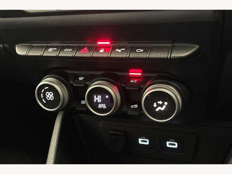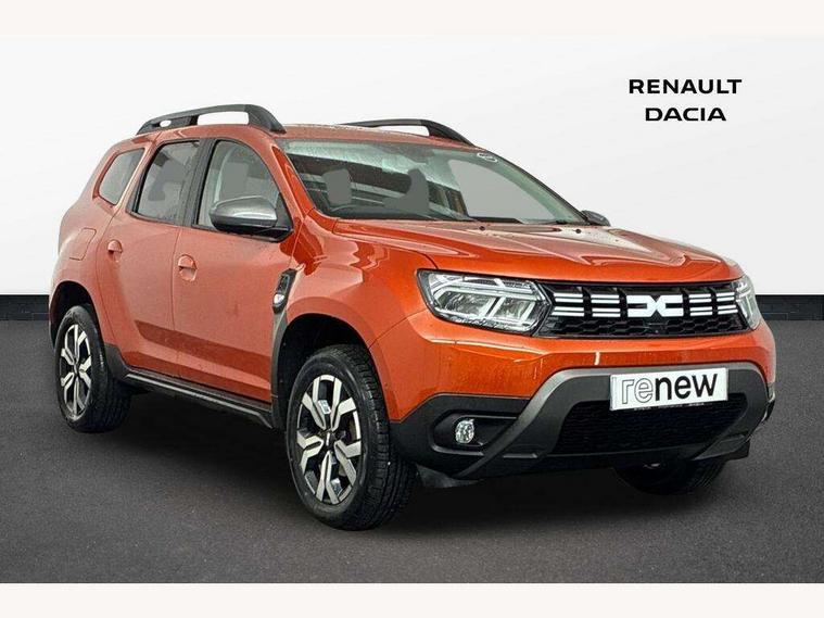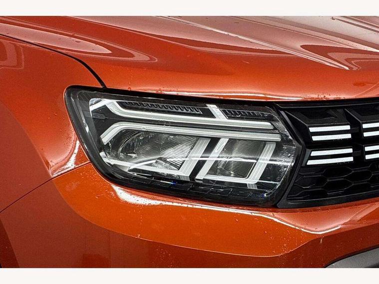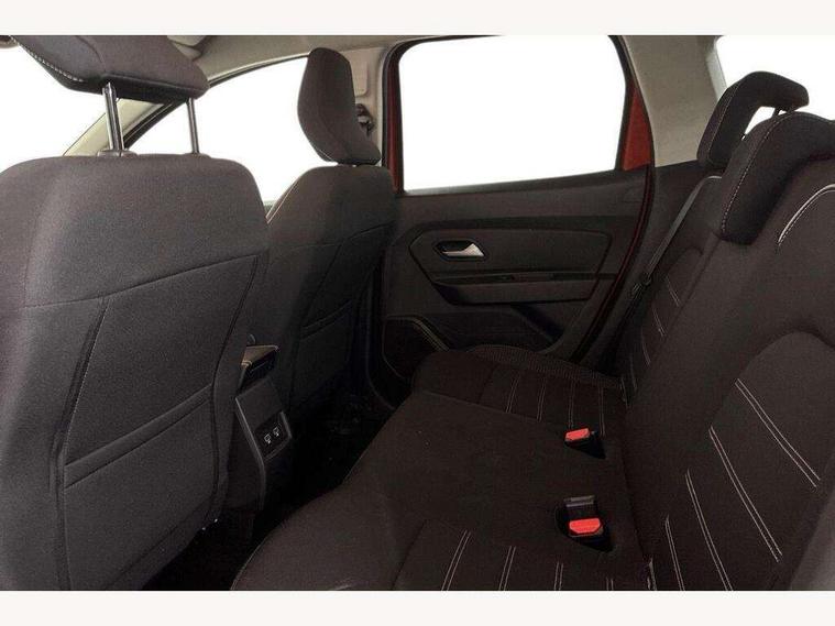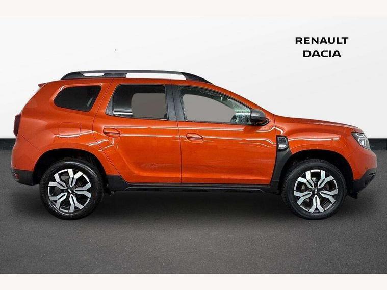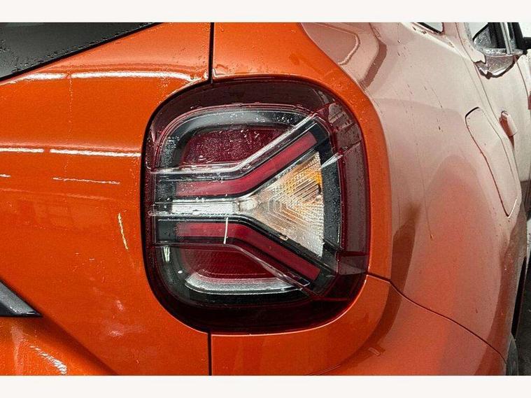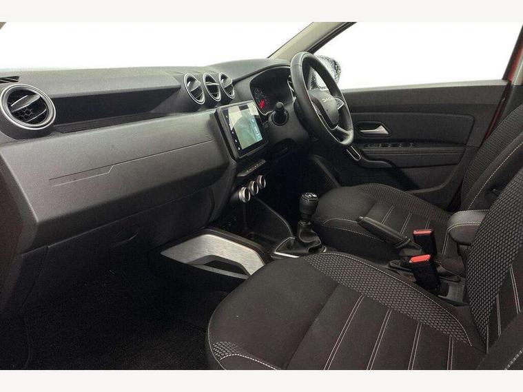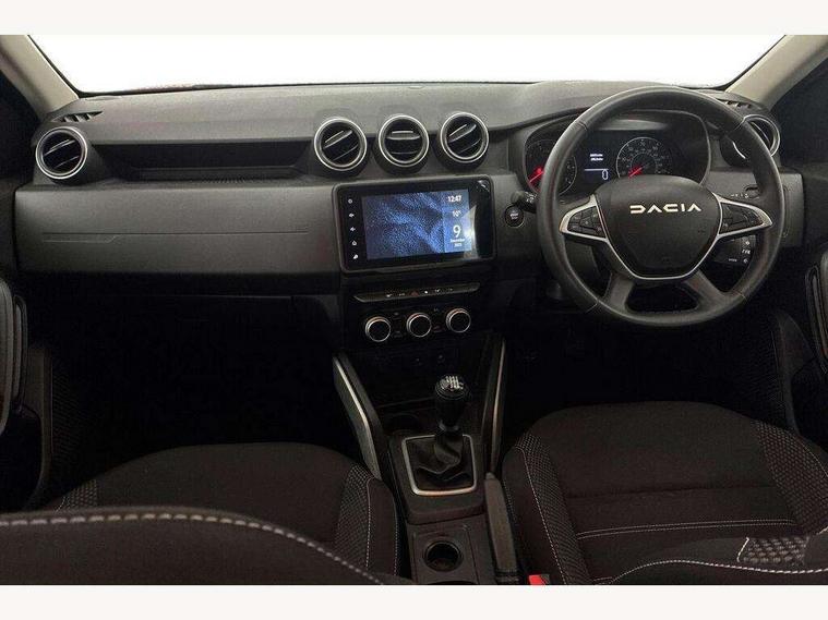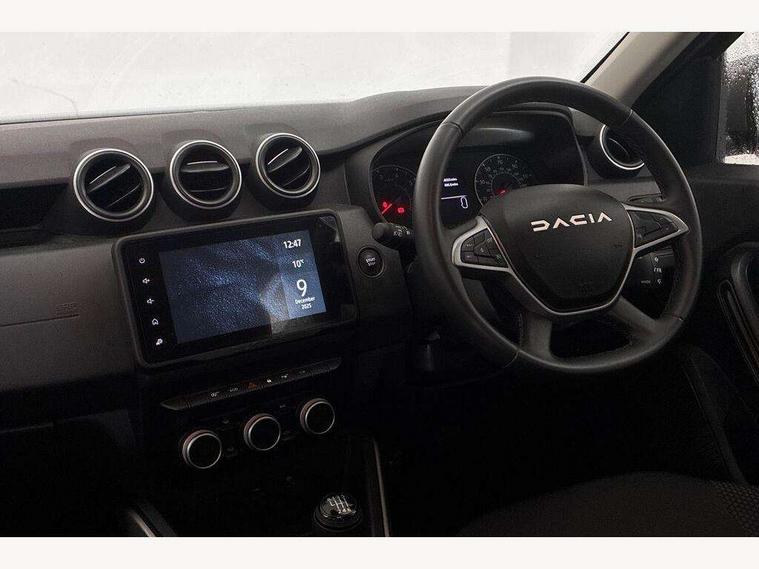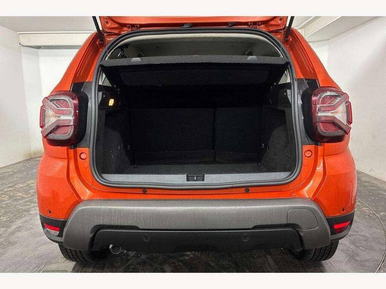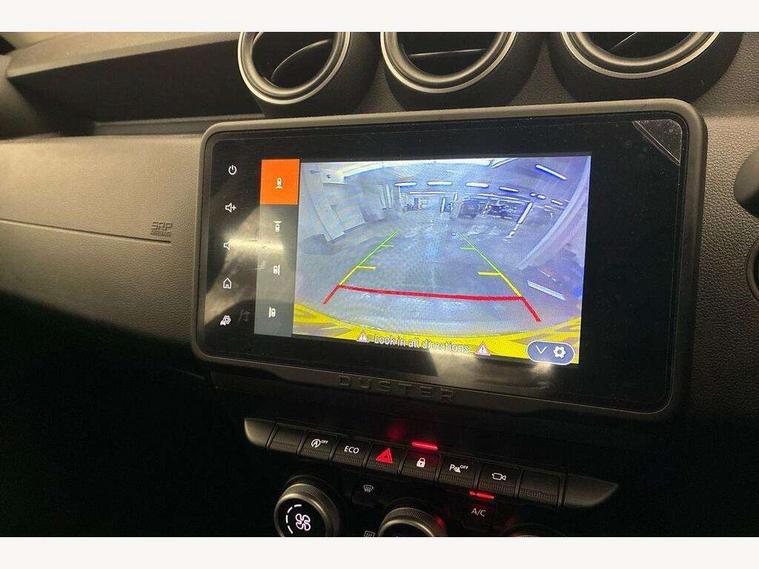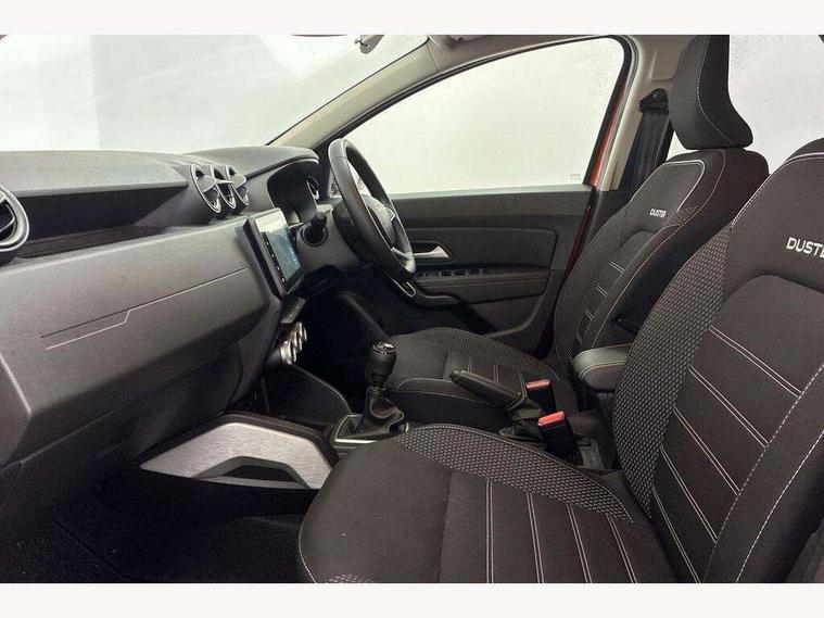 Blind spot warning, Cruise control and speed limiter, eCall emergency system, Eco mode, Electric power assisted steering, Multi view camera, On board computer, odometer, trip computer, average fuel consumption, average speed, service indicator, outside temperature gauge, Rear parking sensors, Rev counter, Reversing camera, Stop/start system, 8" Media Navigation with wireless smartphone replication, Dacia plug and radio/MP3/USB/bluetooth/DAB/steering wheel control, 3 speed windscreen wipers, Acoustic windshield, Automatic front wipers, Black side sills, Black/satin chrome tailgate trim with Duster inscription in black background and lettering, Body coloured door handles, Chrome front grille with hot stamping, Chrome logo surround on steering wheel, Dark glass on lateral rear windows, Daytime running lights, Drivers window one touch up/down, Dusk sensor, Electric adjustable/heated door mirrors, Electric folding door mirrors, Electric front windows, Electric rear windows, Front and rear body coloured bumpers, Front door sill protection strip, Front fog lights, Grey quartz longitudinal roof bars with Duster inscription, Heated rear window, High level third rear brake light, Modular roof bars, Rain sensor, Rear side wing doors, Rear spoiler, Rear wash/wipe, Satin chrome door mirrors, Underbody protection skid plates, Y shaped LED headlights with rear LED lights, 3 rear height adjustable headrests, 3 seat bench in 2nd row, 60/40 split folding rear seat, Automatic air conditioning, Backlighted steering wheel buttons, Boot light, Driver seat lumbar adjustment, Fabric decorative insert on door panels, Fabric upholstery, Front head restraints, Front passenger reading light, Gear shift indicator, Glovebox light, Heated seats, Height adjustable driver seat, Height adjustable front and rear headrests, Height and depth adjustable steering wheel, High centre console with driver armrest, Isofix points for child seats in both outer rear seats, Map pocket on front seat backs, Passenger sunvisor with vanity mirror, Rear passenger reading light, Satin chrome gear lever cap insert, Satin chrome interior door handles, Satin chrome lower steering wheel insert, Single front passenger seat, Soft feel leather steering wheel, 3x3 point rear seatbelts, ABS and Emergency brake assist, ASR traction control with Electronic stability control, Child locks on rear doors, Door open visual and audible warning, Driver airbag, Driver and passenger seatbelt not fastened - visual and audible warning, EBD - Electronic brakeforce distribution, Front passenger airbag, Front passenger airbag deactivation, Front seatbelt pretensioners, Front side airbags, Height adjustable front seatbelts, Hill start assist, Tyre pressure monitor, Keyless entry, Remote central locking, Thatcham approved engine immobiliser, Charcoal grey central console surround, Matt black central console fascia, Matt black decorative insert on rear door panels, Piano black decorative insert on front door panels, Satin chrome air vent surround, Satin chrome instrument dial surrounds, 17" Alloy wheels,