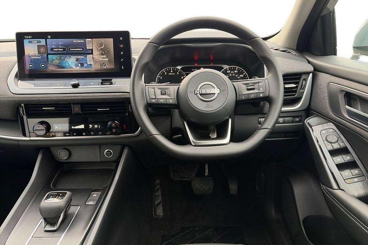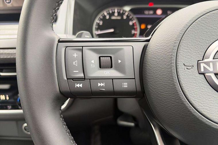 2 front USB-C ports, 7" High definition full colour TFT screen combimeter, Blind spot warning, Drive assist custom mode, Drive modes (sport, normal, eco), Driver drowsiness and attention warning, Electric speed sensitive power steering, Emergency and breakdown call, Emergency lane keep assist, Emergency Stop Signal (ESS), Engine start/stop button, Event data recorder, Idle stop/start system, Intelligent Cruise control (ICC), Intelligent driver alert system, Intelligent forward collision warning, Intelligent lane intervention, Intelligent speed assist, Lane departure warning system, Maximum speed limiter, Nissan connect 12.3 inch touchscreen infotainment system, Outside temperature sensor, Rear cross traffic alert, Rear parking sensors, Rear view camera, Reversing detection, Traffic sign recognition with legal speed adjustment, Trip computer, Wireless Apple CarPlay and wired Android Auto, Limited slip differential, 6 speakers, AM/FM audio system with DAB, Bluetooth audio streaming, Auto dimming frameless rear view mirror, Auto rear wiper when reversing, Body coloured door handles, Bodyside mouldings, Chrome side window finisher, Electric auto folding door mirrors, Electrically adjustable and heated door mirrors with LED turn indicator, Follow me home headlights, Gloss black mirror caps, High beam assist, Intelligent auto headlights, LED 3rd brake light, LED daytime running lights, LED Headlights, LED rear lights, One touch front and rear electric windows with remote opening and closing, One touch passenger window, Partially body coloured bumpers, Rain sensing wipers, Rear roof spoiler, Rear side wing doors, Shark fin antenna, Splash free rain sensing wipers, Three blink turn signal, 12v power socket in dashboard and luggage, 3 bench rear seats in 2nd row, 3 rear headrests, 60/40 split folding rear seat bench, Chrome interior door handles, Cloth upholstery, Dark headlining, Driver and passenger sunvisors with illuminated vanity mirrors, Dual zone automatic climate control with pollen filter, Electrically adjustable lumbar support for driver, Front centre console and armrest, Front cupholders, Front door with bottle holders, Height adjustable driver seat, Height adjustable front headrests, Height adjustable passenger seat, Luggage space lighting, Multifunction steering wheel, Passenger seat back pocket, Rear door bottle holders, Single front passenger seat, Steering wheel gearshift paddles, TEP steering wheel, Tilt/telescopic adjustable steering wheel, Two rear isofix child seat anchorage points with top tether, White ambient light (Partial area coverage), 3x3 point rear seatbelt pretensioners + load limiters, ABS with EBD and brake assist, Autonomous emergency braking, Child locks on rear doors, Curtain and front side, far side airbags, Driver and passenger airbags, Driver, passenger and 2nd row rear seat belt reminder, Electric handbrake with auto hold function, Front seatbelt pretensioners + load limiters, Height adjustable front seatbelts, Hill start assist, Intelligent blind spot intervention, intelligent front emergency braking, Intelligent rear automatic braking, Tyre pressure monitoring system, Vehicle dynamic control, Engine immobiliser, Intelligent key with walk away lock and approach unlock functions, Remote central door locking with deadlocking, Thatcham alarm, 17" Alloy wheels, Tyre puncture repair kit,