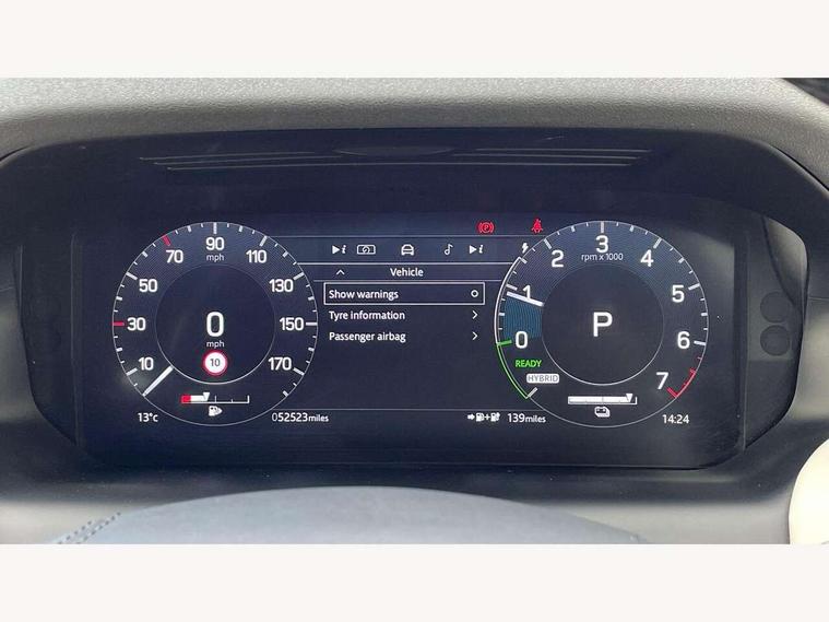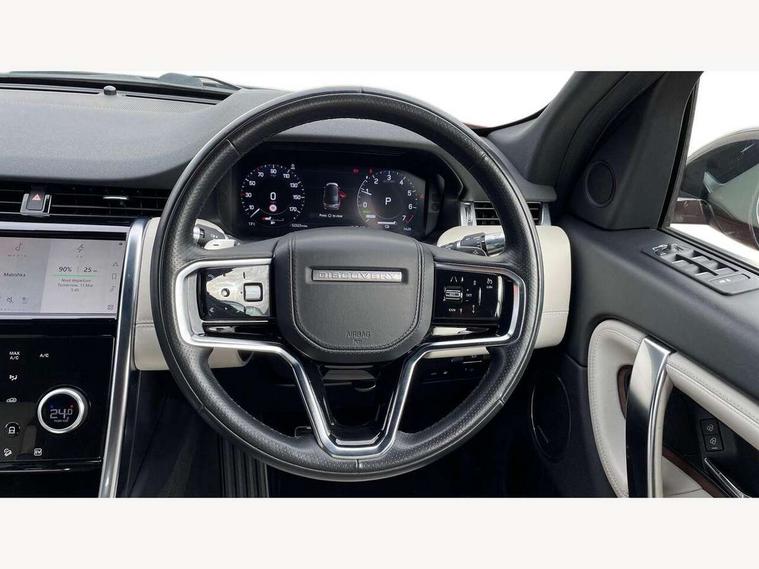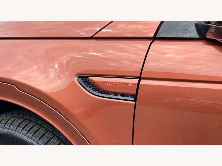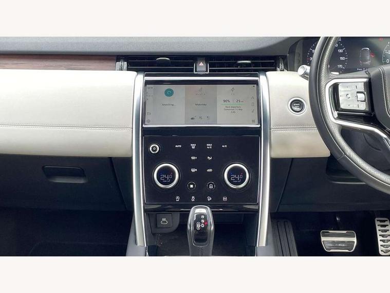 10" touch screen, 3D Surround Camera with 360 View, 180 Rear View, Front Traffic Detection, Forward Vehicle Guidance, Tow Hitch Assist and clear sight Ground View, Adaptive cruise control, Android Auto, Apple CarPlay, Blind spot assist, Clear exit monitor, Driver condition monitor, Front and rear parking aid, InControl remote premium, Interactive driver display, Lane keep assist, PAS, Pivi Pro connected navigation system with upgraded Infotainment, Powered tailgate/boot lid, Rear collision monitor, Rear traffic monitor, Rear view camera, Service interval indicator, Traffic sign recognition with adaptive speed limiter, Trip computer, Wade Sensing, 7 kW onboard charger, All terrain progress control, Coil suspension system, Public charging cable, Terrain Response 2, Bluetooth connectivity including audio streaming, Digital Audio Broadcast radio-DAB, Steering wheel mounted audio controls, Automatic headlight levelling, Automatic headlights, ClearSight interior rear view mirror, Door mirror memory, Electric front/rear windows, Fixed panoramic sunroof with powered sunblind, Illuminated metal front treadplates with R dynamic branding, Power fold, auto-dimming, heated door mirrors with approach lights, Rain sensing windscreen wipers, Rear fog lights, Rear side wing doors, Rear wiper, Bright metal pedals, Centre console with armrest, Front passenger isofix child seat attachment, Perforated full leather steering wheel, Rear headrests, Satin chrome gearshift paddles, Sunvisors with illuminated vanity mirrors, Tilt/reach adjustable steering wheel, Black exterior pack - Discovery sport, Online pack - Discovery sport, 3 point seatbelts on all seats, ABS, Brake hold function, Collision mitigation braking system, Cornering brake control (CBC), Driver/Front Passenger airbags, Drivers knee airbag, Electronic brake force distribution, Electronic parking brake, Emergency brake assist, ESP + traction control, High speed emergency braking, Hill descent control, Hill launch assist, Pedestrian airbag system, Rear seat ISOFIX, Side and curtain airbags for front and 2nd row seats, Trailer stability control, Tyre pressure monitoring system, Battery Back Up System (BBUS) with tilt sensor, Intrusion sensor, Keyless entry, Locking wheel nuts, Centre stack rails in noble chrome,