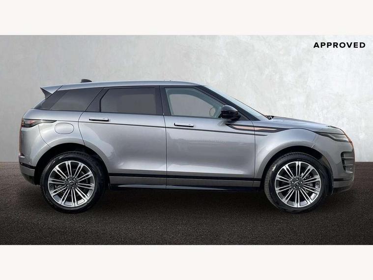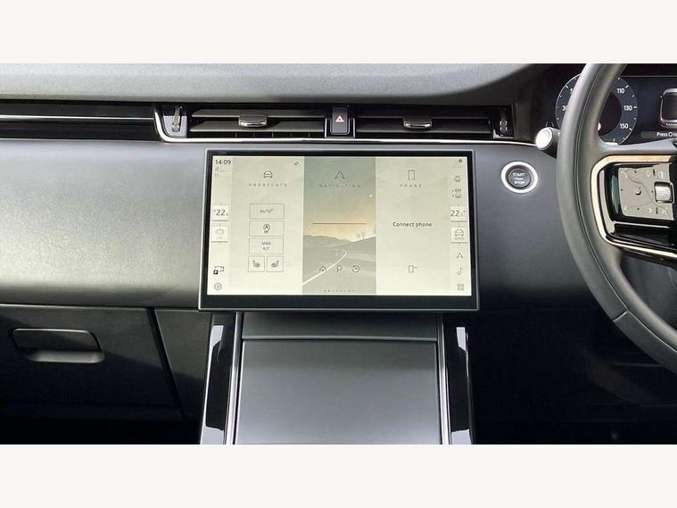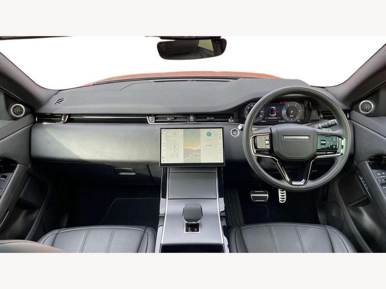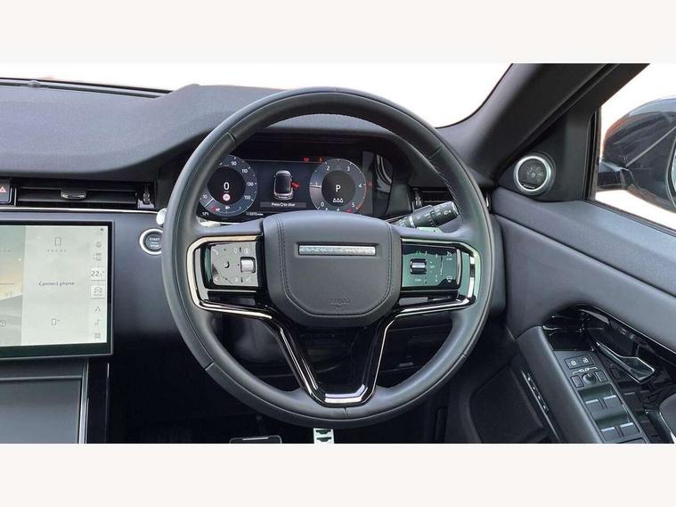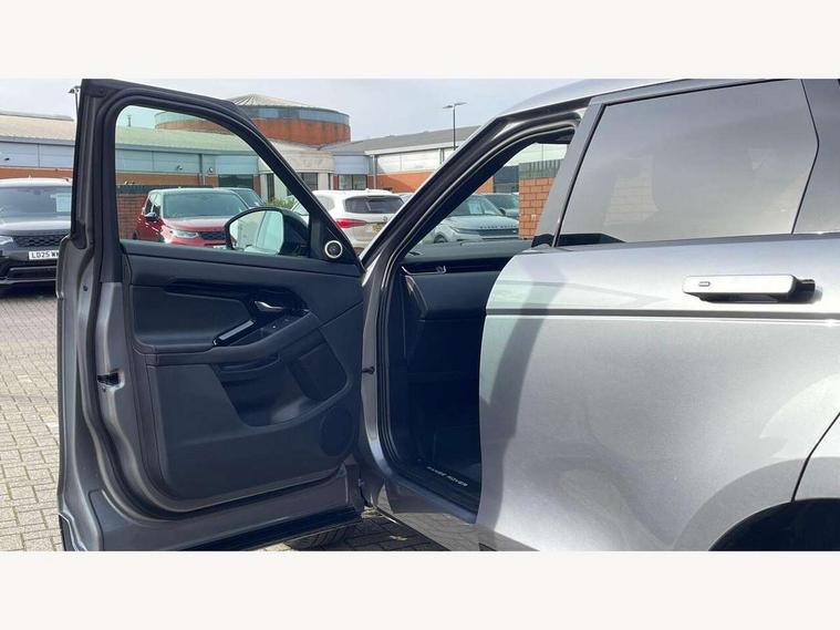 11.4" touch screen, Adaptive cruise control, Android Auto, Apple car play, Blind spot assist, Bluetooth connectivity, Brake pad wear indicator warning light, Driver condition monitor, eCall emergency system, Eco mode, Electronic power assisted steering (EPAS), Front and rear parking aid, InControl remote, Interactive driver display, Land Rover InControl apps, Lane keep assist, Pivi pro connected includes diamond pivi variant, smart settings, connected navigation pro, nuance speech licence, Powered tailgate/boot lid, Rear collision monitor, Rear traffic monitor, Traffic sign recognition with adaptive speed limiter, Voice control system, Wireless device charging, All terrain progress control, Diesel exhaust fluid (DEF) large tank, Efficient Driveline, Large fuel tank, Passive suspension, Terrain Response 2, Digital Audio Broadcast radio-DAB, Steering wheel mounted controls, Acoustic laminated windscreen, Auto headlights, Automatic headlight levelling, Electric windows with one touch open/close and anti trap, Flush deployable exterior door handles, Front and rear recovery eyes, Front fog lights, Heated rear window with timer, Heated washer jets, Heated windscreen, Pixel LED headlights with signature DRL and LED tail Lights, Power fold, auto-dimming, heated door mirrors with approach lights and auto dimming driver side, Rain sensing windscreen wipers, Rear animated directional indicators, Rear fog lights, Rear side wing doors, Rear wiper, Side repeater indicators in mirror, Tailgate spoiler, Third brake light, Winter wiper park position, 14 way driver memory electric front seats with 2 way manual headrests + 4 way lumbar support, bolsters, 40:20:40 split folding rear seats with centre headrest and armrest, Ambient interior lighting, Bright metal pedals, Carpet mats, Chrome tread plates with range rover branding Includes stainless steel loadspace scuff plate with etched graphic, Customer configurable single point entry, Electrically adjustable steering column with memory function and easy entry/exit, Front and rear cupholders, Heated steering wheel, Isofix system on outer rear seats, Overhead lighting console, Overhead stowage for sunglasses, Passive front head restraints, Rear air vents, Rear head restraints, Satin chrome gearshift paddles, Single passenger seat, Sunvisors with illuminated vanity mirrors, Twin sliding front centre armrest, Online pack with data plan - Evoque, Power socket pack 2 - Evoque, 3 rear 3 point seatbelts, Anti-lock braking system (ABS), Brake hold function, Customer configurable autolock, DSC - Dynamic Stability Control, Electronic brake force distribution, Electronic parking brake, Electronic traction control, Emergency braking, Front and rear seatbelt reminder, Hill descent control, Hill launch assist, Low traction launch, Occupant protection assist, Passenger seat occupant detector, Power operated child locks, Roll stability control, Six airbags - Driver and passenger airbags/driver knee airbag/front side airbag and curtain airbags, Torque vectoring brake, Tyre pressure monitoring system, Alarm, Immobiliser, Intrusion sensor, Keyless entry, Locking wheel nuts,