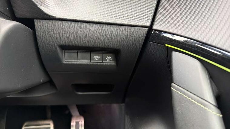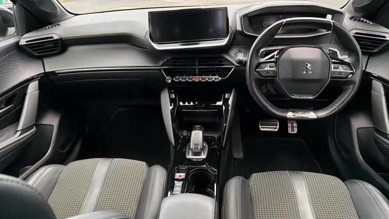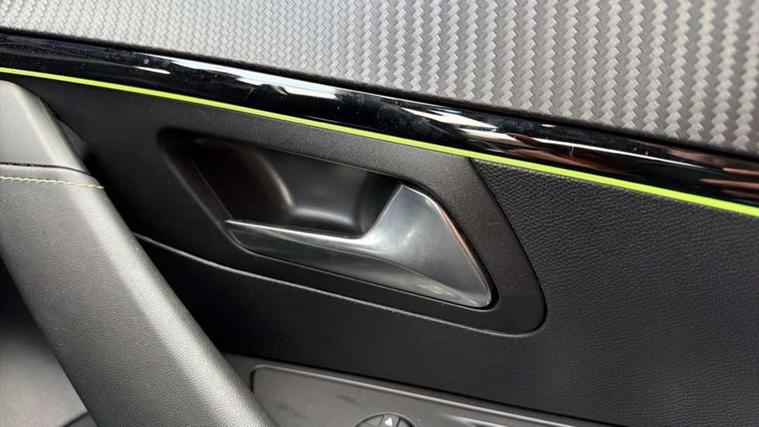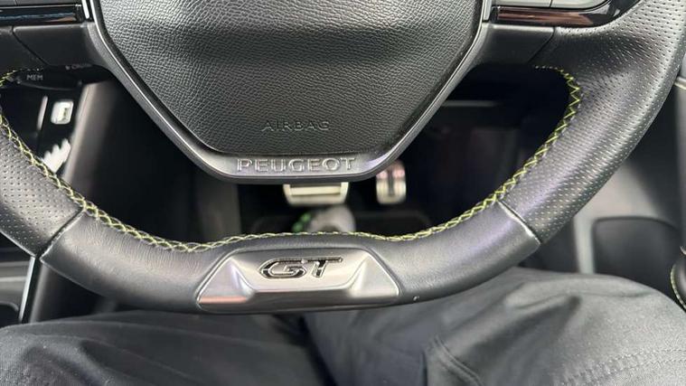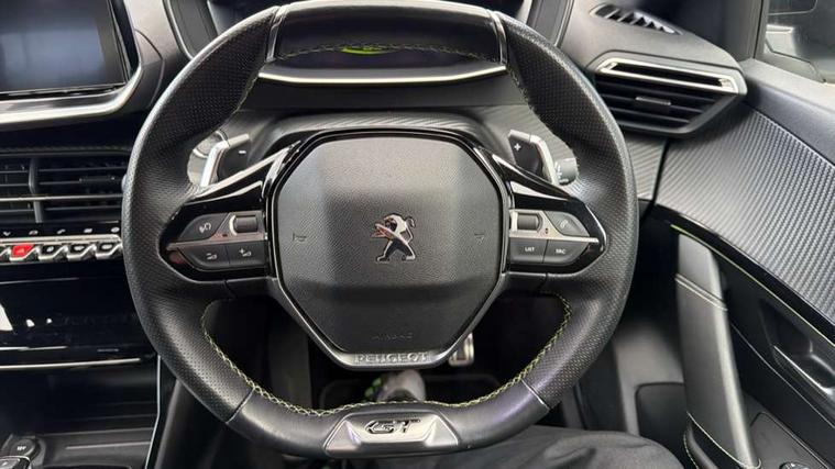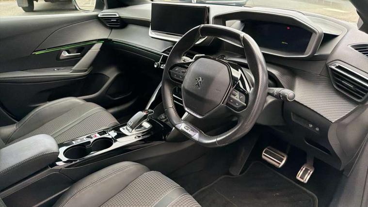 Bluetooth telephone facility, Driver attention warning, Exterior temperature indicator with ice warning, Front and rear parking sensors, Mirror screen with mirror link, apple carplay and android auto, Multi function trip computer, PEUGEOT i-Cockpit with compact steering wheel, PEUGEOT i-Cockpit with configurable 3D headup instrument panel, PEUGEOT SOS and assistance, Push button start, Smart phone docking station, Smartphone charging plate, Speed limit recognition and recommendation, Visio Park 1 with 180 degree Colour reversing camera, 2 front USB socket with USB-C, 2x USB sockets in rear, 6 speakers radio with mp3 compatible, DAB Digital radio, Voice recognition for radio, navigation and telephony features, 2 X Rear number plate lights, Automatic hazard light activation upon heavy brake application, Automatic lights, Automatic windscreen wipers, Body coloured exterior door handles, Dark tinted rear side and tailgate windows, Diamond Black roof, Electric front windows + one touch + anti-pinch, Electric rear windows with one touch/anti-pinch, Electrically adjustable, heated and power folding door mirrors, Extended diamond black rear spoiler, Follow me home headlights, Frameless electrochrome interior rear view mirror, Front windscreen wiper with magic wash cleaning system, Full LED headlights with smartbeam assist, Gloss black finish on B pillar, Gloss black rear cluster connecting strip, Gloss black wheel arch extensions, Gloss black window surround, GT Line model designation badging on C pillar, GT Line model designation badging on tailgate, Headlights left on audible warning, LED daytime running lights with 3 claw headlight with distinctive tooth design, LED side indicator lights integrated into door mirrors, Model designation badges front and rear, Nera black door mirror shells, Radiator grille - Dark chrome chequered and gloss black edge trim, Rear bumper with gloss black finish, Rear full LED 3D peugeot signature claw effect lights with daylight function, Rear lower bumper diffuser effect trim in gloss black, Rear reversing lights, Rear windscreen wiper triggered automatically in reverse gear, Stainless steel door sill scuff plates, Tailgate with heated rear windscreen and wiper blade, Twin chrome exhaust tailpipes, 1/3 to 2/3 split folding rear seats, 12V socket, 8 Colour personalisable ambient lighting, Aluminium pedals and foot rest, Automatic gear lever in full grain leather and satin chrome, Driver and front passenger seat manual adjustment in longitudinal and back rest angle, Driver and front passenger seat mechanical height adjustment, Driver and front passenger sport seats, Dual zone electronic climate control, Electric power steering with reach and rake adjustable steering column, Front and rear carpet mats in black with lime green stitch detail, Front centre armrest with storage compartment, Front LED interior light with 2 reading spotlights and rear interior light with timer, High centre console with 2 cup holders, ISOFIX child seat mounting points on passenger seat, Lime green contrast stitching to armrest, front centre console, door panels and dashboard facia, Map pockets on the backs of the front seats, Mistral full grain perforated leather steering wheel with aikinite stitch detail and satin chrome 'GT' emblem, Piano keys gloss black plated toggle switches to access main functions of the vehicle, Roof lining - Mistral black, Seatbelt unfastened on the move audible and visual alert for front and rear seats, 2x 2nd row ISOFIX child seat mountings, 3 point seatbelts on all rear seats, ABS (Anti-lock Braking System) with EBD (Electronic Brakeforce Distribution) and EBA (Emergency Braking Assistance), Active safety brake with night function/cyclists/pedestrians, Child locking functionality on rear doors, Driver and passenger airbags with Passenger airbag deactivation system, Driver/front passenger side airbags, Electric parking brake, ESP with Hill Assist, Front and rear curtain airbags, Front and rear disc brakes, Front optimised safety headrests and 3 x rear retractable headrests with height adjustable, Front three point retractable seatbelts with force limiters, Tyre pressure sensor, Automatic door locking when moving off, Deadlock, Electronic code immobiliser, Thatcham Cat.1 alarm, Carbon effect Dashboard, front and rear door panel finish, 17" Camden diamond cut two tone alloy wheels, Space saver spare wheel,
