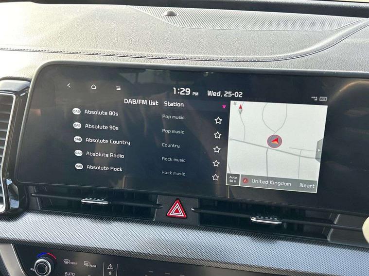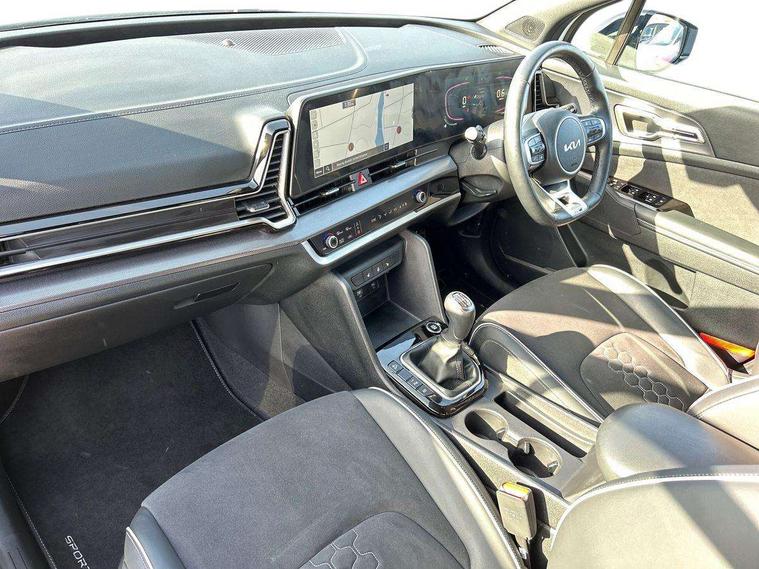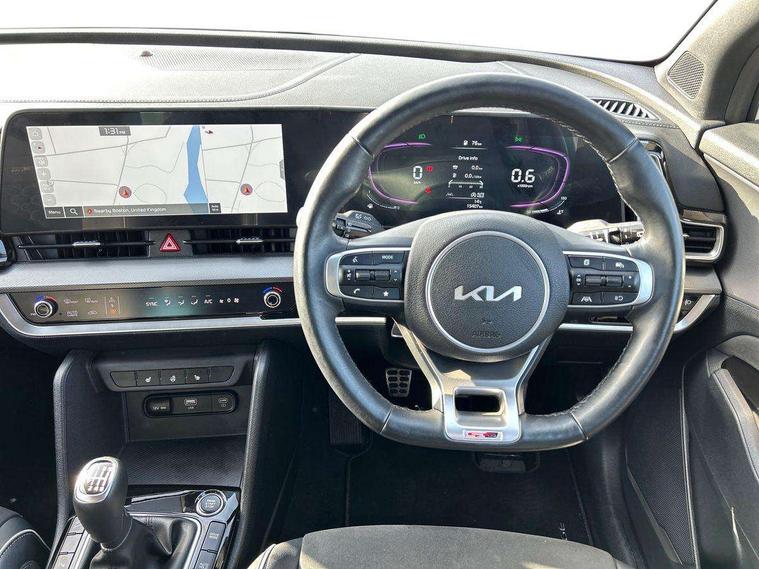 12.3" Display with navigation, 4.2" supervision colour cluster display, Apple car play/Android Auto with voice control, Drive mode selector, E-call, Forward collision avoidance assist (FCA) - city/pedestrian/cyclist/junction covering, Front and rear parking sensors, Intelligent speed limit assist, Kia Connect (UVO), Lane Following Assist (LFA), Lane keep assist, Low washer fluid warning, Rear view monitor, Reversing camera system integrated into centre fascia screen, Speed sensitive power steering, Trip computer, Windscreen washer level indicator, Intelligent Stop and Go, 6 speaker audio system, Bluetooth audio streaming, DAB Radio with MP3, Rear USB port, Steering wheel mounted audio controls, USB C type charging ports on centre console, USB C type charging ports on side of front seats, USB port for connection of a media device, All round electric windows with drivers and front passenger auto up/down function, Automatic headlight control system, Automatic window defogger, Backlite glass heated with timer, Black bumpers, Body colour and black bumper with silver accents, Body colour exterior door handles, Body colour radiator upper garnish and door garnish, Electrically adjustable/heated/folding door mirrors with LED indicators, Front and rear skid plate - chrome, Gloss black door mirrors, Gloss black radiator grille, Gloss black side sill and wheel arch body mouldings, Glossy black roof rack, High beam assist, Interior electrochromic mirror, LED daytime running lights, LED front fog lamps, LED headlamps (low and high beam - MFR type), LED High mounted stop light, LED rear combination lamp, Rain sensing wipers with aero blades, Rear fog lamp, Rear privacy glass, Rear side wing doors, Rear spoiler, Rear wiper, Satin finished beltline, Silver coloured inserts to bumpers, Tinted rear glass, Trailer stability assist, 12V power socket in front centre fascia and luggage compartment, 2nd row personal lamps, 3 seat bench in 2nd row, 3 x passenger assist grips, 40/20/40 split folding rear seat, All-round height adjustable headrests, Black headlining, Centre console storage box, Cupholders in rear armrest, D-Shaped sports leather steering wheel and perforated inserts with GT-Line logo, Door courtesy lamps, Drink holder at centre armrest, Driver and front passenger side sunvisors with illuminated vanity mirrors, Driver's seat manual height adjust, Drivers seat power lumbar support, Front and rear door storage, Front seat and rear pockets, Front/rear centre armrests, Gear shift indicator, Glovebox illumination, Heated front seats, Heated steering wheel, Interior door lock/unlock function, ISOFIX Child seat top tethers and anchor fixings outer rear seats, Luggage area light, Luggage area load cover, Luggage net with hooks, Metal paint interior door handles, Overhead console lamp, Rear cabin light, Rear coat hooks, Single front passenger seat, Sports pedals, Suede leather upholstery, Three zone climate control, Tilt/telescopic adjustable steering wheel, Ventilation ducts to rear compartment, Active front headrests, All round 3-point seatbelts, Anti-lock braking system (ABS), Dual front side airbags, Dual horn, Electronic parking brake, Electronic stability control with downhill brake control, Front passenger airbag cut-off switch, Front seatbelt pretensioners + load limiters, Height adjustable front seatbelts, Hill start assist control (HAC), Impact sensing auto door unlocking, Multi collision brake assist, Rear door child safety locks, Rear seat alert system, Traction control, Twin curtain airbags, Twin front airbags, Tyre pressure monitoring system, Advanced anti-theft system including immobiliser and alarm, Door deadlocks, Engine Start/Stop Button with Smart Entry System, Locking wheel nuts, Speed sensitive auto door locking, Visible vehicle identification number, Aluminium pattern finish centre fascia and door garnish, 19" GT-Line alloy wheels, Tyre mobility kit,