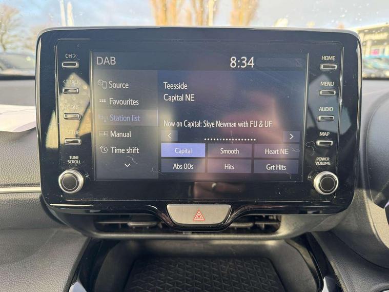 Tyre repair kit, Keyless smart entry with push button start, 6 speakers, DAB Digital radio, USB connection, 3x3 point rear seat belts, ABS+EBD+Brake assist, Driver and passenger central airbags, Driver and passenger front airbags, Driver and passenger side airbags, Electronic parking brake, Emergency brake light system (EBS), Pre-collision system with pedestrian and cyclist detection, Rear door child safety locks, Rear passenger side airbags, Supplemental Restraint System (SRS) 8 airbags: Driver & passenger's airbags, dual side curtain airbags, side impact airbags, front centre airbag, Traction control, Tyre pressure warning system, 3rd brake light, Acoustic windscreen glass, Aluminium roof rails, Auto high beam [AHB] with on/off switch, Auto windscreen wipers, Automatic headlights, Black Shark-fin antenna, Black upper front grille, Body colour door handles, Body colour rear bumper, Electric adjustable heated door mirrors, Follow me home headlights, Front and rear electric windows with auto up/down function, Front auto power windows with anti jam protection, LED daytime running lights guide, LED front fog lights, LED front light guide, LED projector headlights, LED rear light guide, Manually retractable door mirrors, Privacy glass, Rain sensor, Rear auto power windows with anti jam protection, Rear LED lights with sequential indicators, Rear side wing doors, Rear wiper, 12v power outlet - front, 2x Rear coat hooks, 3 seat bench in 2nd row, 3 spoke leather steering wheel, 40:20:40 split folding rear bench seat, Auto air conditioning, Black roof lining, Centre console in light blue ambent lighting, Fabric upholstery, Footwell in light blue ambient lighting, Front console box, Front cup holders, Front head restraints, Glovebox, Height adjustable driver's seat, Height adjustable front passenger seat, Hooks for luggage holding belts, Leather gearshift, Light blue ambient lighting on front doors, Manual telescopic and tilting steering wheel, Mirror on driver and passenger sun visor, Rear cup holders, Rear head restraints, Single front passenger seat, Soft tonneau cover, 7" Multi information display screen, 8.2" multimedia system with Smartphone integration with Apple CarPlay and Android auto, Bluetooth connectivity, Driver attention alert system, eCall emergency system, Electric power steering, Full range intelligent adaptive cruise control, Lane trace assist, Multimedia, audio, telephone and voice recognition switches on steering wheel, My T Connected services, Pre-collision system enhanced with emergency steering assist, Reversing camera, Road sign assist - RSA, Vehicle Stability Control (VSC),