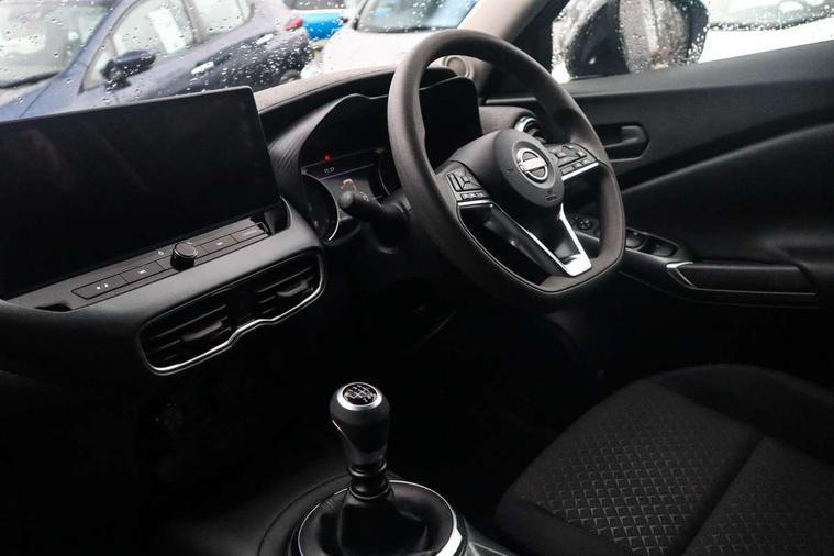 7" full colour TFT screen combimeter, Cruise control + speed limiter, Emergency and breakdown call, Idle start/stop system, Intelligent driver alert system, Intelligent lane intervention, Lane departure warning system, Nissan connect 12.3" touch screen entertainment system, Outside temperature sensor, Power Steering, Rear view camera, Traffic sign recognition, Trip computer, Voice recognition, WiFi connectivity, Wireless Apple CarPlay and Google Android auto, 2 X Rear console USB port, 4 speakers, Bluetooth system, USB, Aux-in and 12V socket, DAB Digital radio, Automatic hazard signal with emergency stop signal, Body colour door handles, Electrically adjustable door mirrors with integrated indicators, Follow me home headlights, Front and rear electric window with one touch driver window, High beam assist, LED 3rd brake light, LED daytime running lights, LED headlamps, LED rear fog lamp, LED rear lamps, Manual dimming framed interior rear view mirror, Pearl black door mirrors, Rear side wing doors, Rear wiper, Roof spoiler, Shark fin roof antenna in solid Black, Three blink turn signal, 3 height adjustable rear headrests, 3 seat bench in 2nd row, 60/40 split folding rear seat, Cloth upholstery, Driver/passenger sunvisors and vanity mirrors, Front and rear cabin lights, Front armrest, Front door pockets with bottle holders, Front head restraints, Height adjustable driver's seat, Luggage space lighting, Monoform sporty seats, Multifunction steering wheel, Rear door bottle holders, Single front passenger seat, Smooth synthetic leather steering wheel, Telescopic steering wheel adjustment, Two cupholders in front centre console, Two rear isofix child seat anchorage points with top tether, Welcome light and console tray ambient lighting, ABS with EBD and brake assist, Active ride control, Active Trace Control, Driver and passenger airbags, Driver and passenger side airbags, Electric handbrake with auto hold function, Electronic Stability Programme (ESP), Front and rear curtain airbags, Height adjustable seatbelts, Hill start assist, Intelligent emergency braking with pedestrian and cyclist recognition, Rear door child safety locks, Seatbelt reminder for driver/front passenger and rear seats, Three 3 point rear seatbelts, Traction control, Tyre pressure monitoring system, VDC Dynamic Vehicle Control, Alarm, Immobiliser, Remote central locking, 17" Sakura Flex wheels, Tyre puncture repair kit,