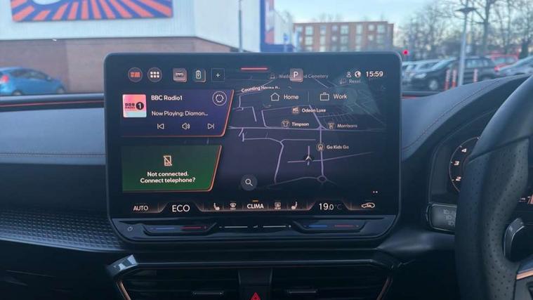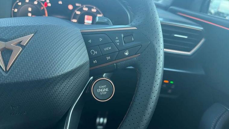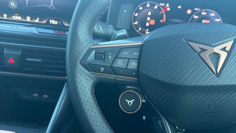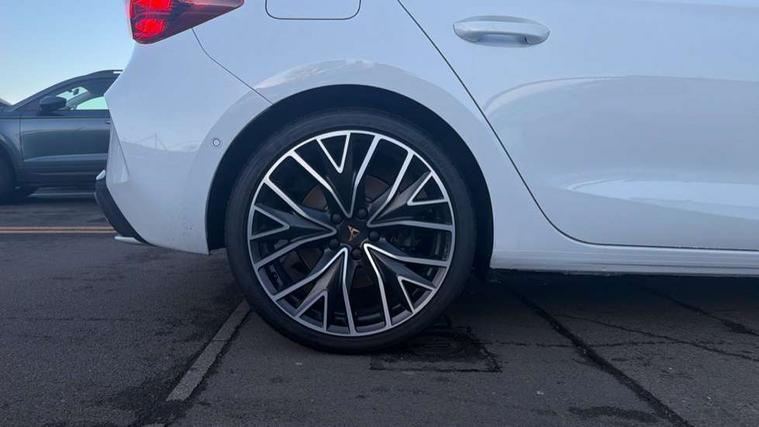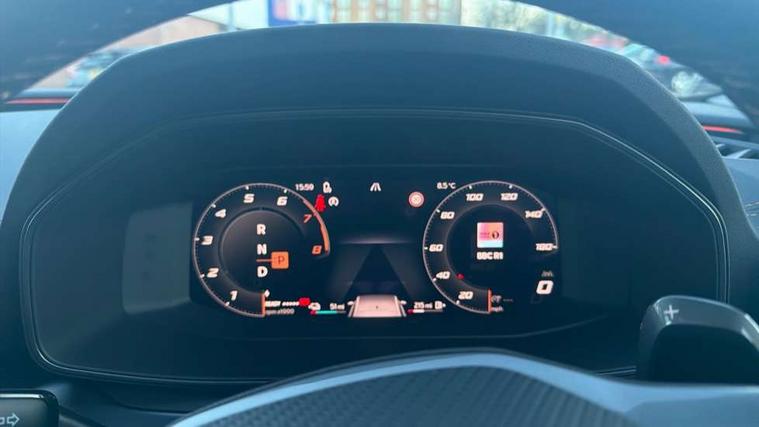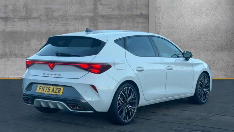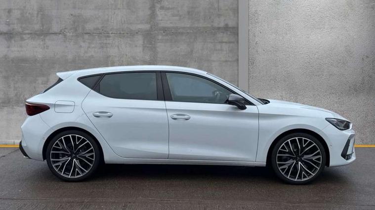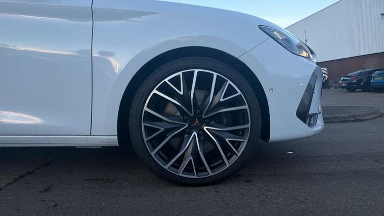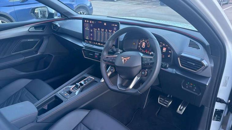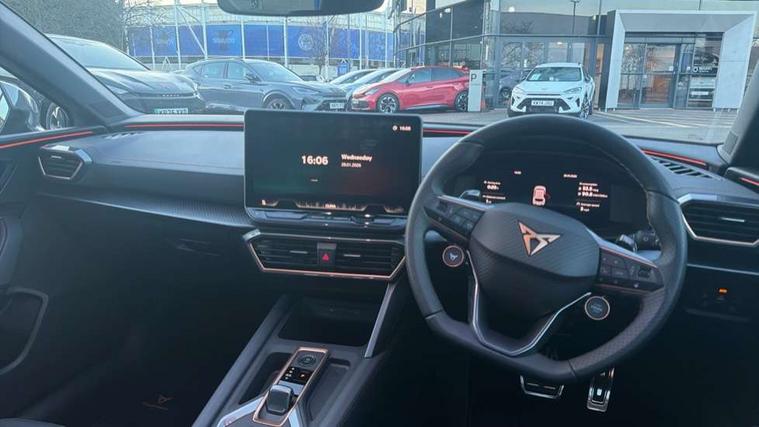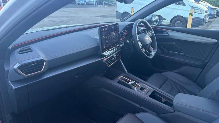 Adaptive cruise control with follow-to-stop and speed limiter, CUPRA mode drive profile selection with throttle response and gearshift mode, Digital cockpit, Driver alert system, Dynamic road sign display, E-call, Front and rear parking sensors, Front assist with forward collision warning braking reaction to vehicles, pedestrians and cyclists, Front cross traffic assist, Full link smartphone integration with Mirror Link, wireless Apple CarPlay and wired Google Android Auto, Lane change assist with emergency assist, Lockable tailgate, Rear view camera, RPM, trip computer, outside temp gauge, instrument light brightness, low fuel warning light, lights on reminder, gearshift indicator, Service interval indicator, Start/stop system with regenerative braking, Wireless phone charger, 10 amp mode 2 charging cable, 32 amp mode 2 charging cable, Auxiliary input socket, Auto dimming rear view mirror, Body colour door handles, Body coloured bumpers, Cupra matrix LED ultra headlight with variable light distribution, high definition LED w/signature w/ceremony, Cupra sports bumpers, Dark tinted rear windows, Electric front/rear windows, Electrically adjustable, heated and folding door mirrors, High beam assist, High-resolution matrix beam plus digital projection, LED 3rd brake light, LED front fog lamps with cornering function, LED rear fog lamp, Rain sensing wipers, Rear diffuser with copper simulated exhaust pipes, Rear side wing doors, Rear wash/wipe, Separate daytime running light with automatic headlight control and coming home feature, Welcome light with logo projector in door mirrors, 12v power supply in centre console, 3 seat bench in 2nd row, 5 headrests, 60/40 split rear bench seat with armrest, Ambient lighting (glovebox, footwell, ambient lighting multicoloured), Black headlining, Cupra sports pedals, CUPRA Supersports, heated steering wheel with satellite buttons, Folding boot cover, Four x USB Type C ports (2 in front and 2 in rear), Front and rear reading lights X 4, Front centre armrest, Heated front seats, Height/reach adjust steering wheel, Illuminated interior front door sills, Interior wraparound lighting, ISOFIX points in outer rear seats with top tether anchorage points, Single front passenger seat, Storage pockets on rear of front seats, Sunvisors with illuminated mirror, Three zone climate control, Dynamic and comfort pack - Leon Cupra, Intelligent drive pack - Leon Cupra DSG transmission, Leather pack with memory function for front seats - Leon, Media system plus with 12.9" display + navigation pack - Leon Cupra, 3 point seatbelts on all rear seats, ABS, Brake control system - ESC and brake booster, Child proof door locks, Disc brakes in front, Driver and front passenger airbags with front passenger airbag de-activation, front side and curtain airbags, Electronic parking brake, Hill hold control, Rear disc brakes, Seat belt reminder for front and rear seats, Tiredness recognition system, Tyre pressure monitoring system, Anti theft alarm system with interior monitoring in cab, backup horn and towing protection, KESSY Advanced - Keyless start, keyless entry with SAFELOCK, Locking wheel bolts, Warranty - 5 years/90, 000 miles, Chrome and copper interior detailing, Breakdown kit, Tool kit,