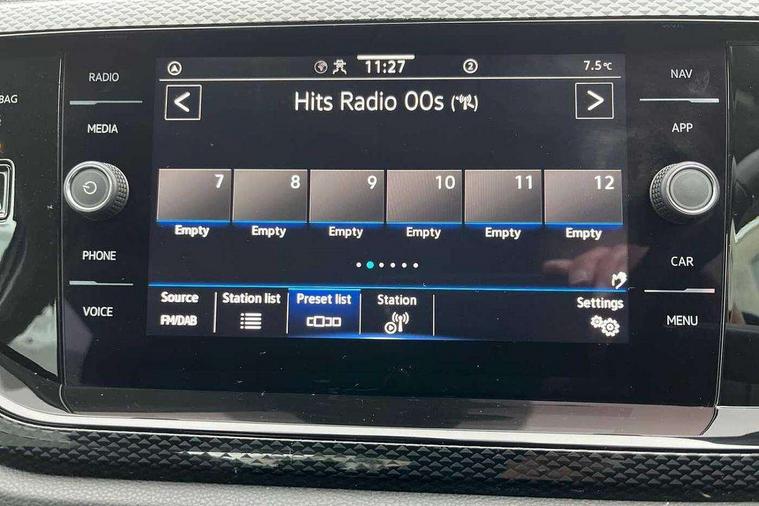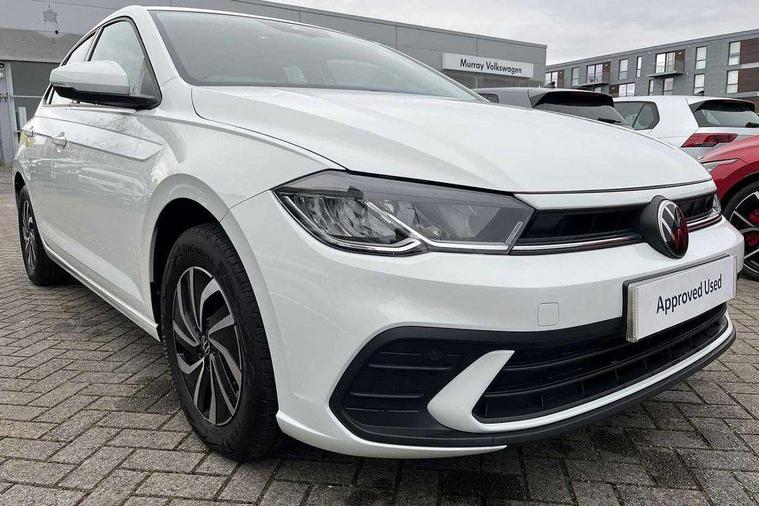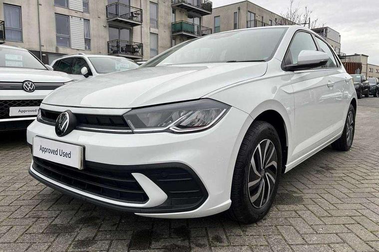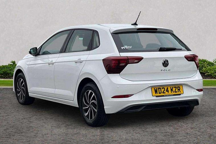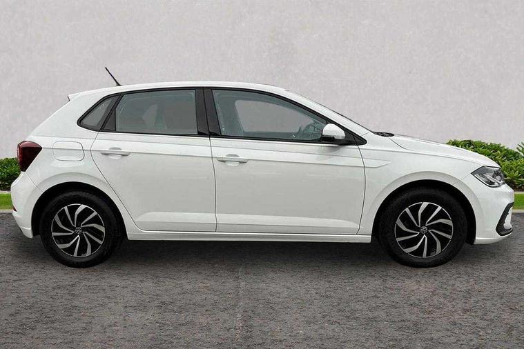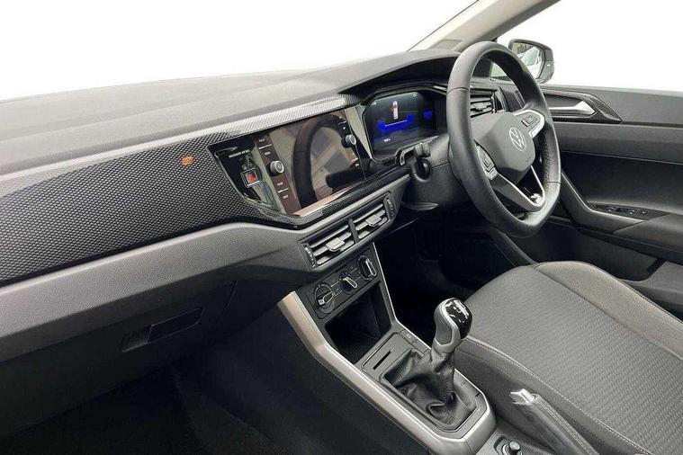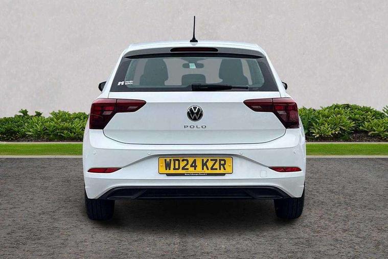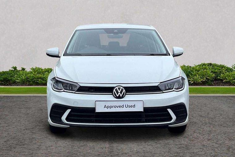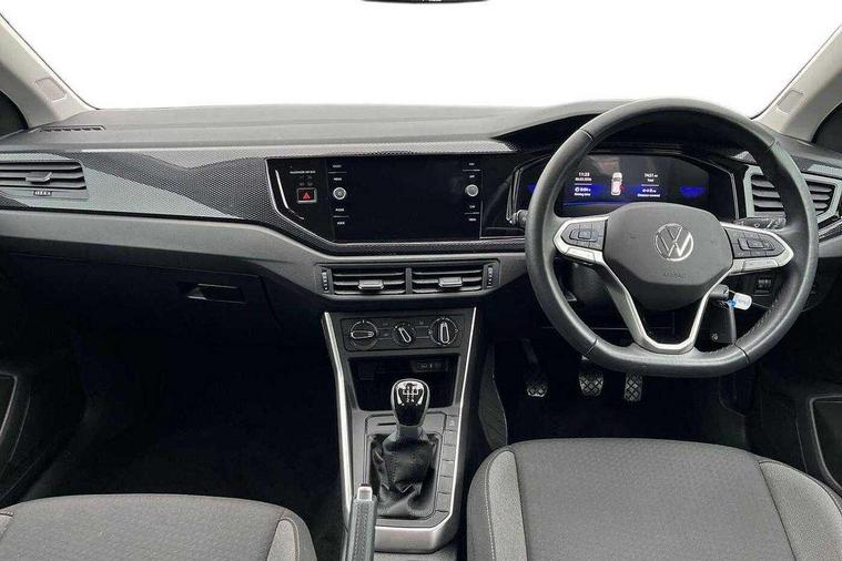 Adaptive cruise control without follow-to-stop and speed limiter, Advanced driver attention and drowsiness monitor, Bluetooth mobile phone interface, Dynamic road sign display, Emergency call service, Power assisted speed sensitive steering, Preparation for navigation system with media and internet package, Preparation for We connect and We connect plus, Speedo and rev counter, electronic odometer, trip, service interval display and exterior temperature gauge, Standard rear axle, Travel Assist - Lane keeping system and traffic jam assist, Travel assist including emergency assist, Trip computer, Warning signal and warning light for front and rear seatbelts not fastened, Washer fluid level indicator, Wireless app connect, Front wheel drive, Rear shock absorpion, Start-stop system with battery regeneration (recuperation - energy recovery during braking), DAB Digital radio, Diversity antenna for FM reception, Automatic dimming interior rear view mirror, Automatic headlight control with LED separate daytime running lights with coming/leaving home function, Body colour bumpers with chrome inserts, Body colour door handles, Body colour door mirrors, Electric front windows, Engine badge deletion, Headlight range adjustment, Heat insulating and laminated safety glass windshield, Heat insulating darkened glass in side and rear windows, Heat insulating glass windscreen, LED Headlights, LED rear combination lamps, Power folding adjustable/heated exterior mirrors and front passenger exterior mirror lowering function, Rain sensor, Rear electric windows, Rear fog light, Rear side wing doors, Rear windscreen washer and wiper with interval delay, Third brake light, 12V power socket in centre console, 2 front and 2 rear reading lights with switch off delay and dimmer, 2 USB-C ports in the front, 2 USB-C charging sockets on the center console in the rear, 3 rear head restraints, 60/40 split folding rear seat and rear seat bench not split, Ceramique roof lining, Chrome plated radiator grille inserts, air vent surrounds and light switch surrounds, Door and side trim panel, Driver and front passenger seat height adjustment, Driver/passenger sunvisors with illuminated vanity mirrors, Front centre armrest, Front seat backrest storage pockets, Front standard seats, Handbrake lever handle in leather, Hartley/Thomas cloth upholstery, Headliner in recycled material, Isofix child seat preparation easy-fit (for two outer rear seats, and front passenger seat) compatible with I-size, Leather trimmed gear knob, Luggage compartment cover, Luggage compartment lighting, Removable luggage compartment floor, Single front passenger seat, Standard climatic zones, Standard pedal cluster, Three spoke leather wrapped multifunction steering wheel, Light and vision pack - Polo, 3 point height adj front seatbelts + pretensioners, 3x3 point rear seatbelts, ABS, Driver and front passenger airbag with front passenger airbag deactivation, Drivers and front passengers safety optimised head restraints, ESC (Electronic stability control) + EDL (Electronic Differntial lock) and ASR (Traction control), Extended and predictive pedestrian/ cyclist protection, Front assist with autonomous emergency braking (for Adaptive Cruise Control ACC up to 130 mph), Front curtain and side airbags with center airbag, Front disc brakes, Hill hold control, Manual child lock in rear doors, Rear drum brakes, Single tone horn, Tyre pressure loss indicator, Alarm with interior protection, Anti-theft alarm system with interior monitoring, backup horn, and towing protection, Anti-theft wheel bolts, Electronic engine immobiliser, Lava stone black gloss/matt decorative inserts in dash and front door panels, Low rolling resistance tyres,