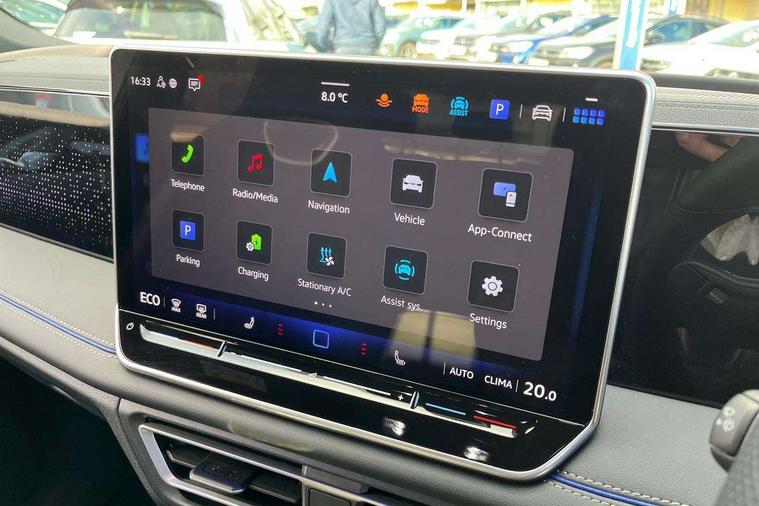Adaptive cruise control (ACC), Advanced driver attention and drowsiness monitor, Bluetooth mobile phone interface, Digital Cockpit Pro - 10.25" high resolution dash display screen with customisable menus and information, Driving profile selection, Dynamic road sign display, E-Sim card for online connectivity, Easy Open and Close Electric tailgate with virtual pedal activation, eCall emergency call service, Extended safety system (proactive passenger protection system), Front Assist - Autonomous emergency braking with pedestrian and cyclist monitoring, IDA voice assistance with ChatGPT, Inductive smartphone charging without external antenna connection, Lane change system, Side assist, Rear traffic alert and Exit warning system, Multifunction front facing camera, Navigation system, Oncoming vehicle braking when turning including swerve support, Park assist plus with park distance control, Power assisted steering with speed sensitive, Progressive steering, Start/stop system with regenerative braking, Tailgate/trunk lid unlocking from outside, Warning signal and warning light for front and rear seatbelts not fastened, Wireless App-Connect, Adaptive chassis control DCC pro includes driving mode selection, Charging cable Mode 2 Type 2 / G (10A), Charging cable Mode 3 Type 2 / 3 (32A), Front shock absorption G08, Front wheel drive, Rear shock absorption, 12.9" infotainment display, Digital radio reception (DAB), Diversity antenna for FM reception, 3D rear combination light special signal pattern, Ambient lighting with logo projection, Auto dimming interior rear view mirror, Automatic headlight control system, Body coloured door handles, Chrome moldings on the side windows, Coming/leaving home lighting function, Dynamic headlight range control with dynamic cornering light, Exterior mirrors convex on the left and aspherical on the right, Heat insulating glass in side and rear windows, Heat insulating windshield, High Beam Assist, automatic sensing for switching between dipped and main beam, High level 3rd brake light, Highway light, Illuminated door handle recesses, Illuminated lightline between headlamps, Illuminated logo front and rear, Laminated safety glass windshield, LED headlamps, LED separate signature day time running light, Poor weather light, Rain sensor windscreen wipers, Rear fog light on one side, reversing light on both sides, Rear side wing doors, Rear wiper, Remote electrically foldable door mirrors, puddle lights and reverse activated passenger's door mirror, 12V outlet in center console rear and in luggage compartment, 12V socket in centre console, 2 USB-C ports in the front, 2 USB-C charging sockets on the centre console in rear, charging capacity up to 45 W, 3 bench rear seats in 2nd row, Air care climatronic 3 zone air conditioning system with rear air conditioning control panel, Black roof lining, Brushed stainless steel pedals, Carpet mats, front and rear, Centre console with illuminated storage compartment with sliding cover and two drinks holders, Chrome elements on the mirror switch and power window switches and door pulls, Door and side trim panel insert in Art velour, Drivers seat with manual adjustment of seat travel and height and backrest angle with thigh support longitudinally sliding, Front centre armrest, Front integrated head restraints, Front massage seats, Front scuff plates in aluminium, Front seats with manual height adjustment, Greyson sports cloth upholstery with inner side bolsters in artvelours, Interior ambient lighting with 30 colour options, ISOFIX anchors for child seats on outer rear seats and front passenger seat compatible with i-Size, Leather wrapped heated multifunction steering wheel with touch control and paddle shift, Mechanical rear seat release, Power adjustable lumbar support in front, Rear bench seat, split folding, longitudinally movable and folding with load-through hatch and centre armrest, Safety optimised front head restraints, Single front passenger seat, Sports comfort seats in front, Sun visors with illuminated vanity mirrors, Three rear head restraints, 3 point seat belt for centre rear seats, 3 Point seat belts in front with pretensioners, 3 point seatbelts in outer rear with ECE label, Driver and front passenger airbag with front passenger airbag deactivation, Electronic parking brake with auto hold, First aid kit with warning triangle and safety vest, Front and rear curtain airbags, Front centre airbag, Front disc brakes, Hill start assist, Manual child proof rear door locks, Rear disc brakes, Rear side airbags, Two tone horn, Tyre pressure monitoring system, Alarm with interior protection, Central locking system keyless entry, Interior door handle in matte chrome, Soul instrument panel, Tyre mobility kit including compressor and sealing foam,