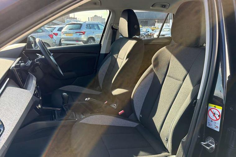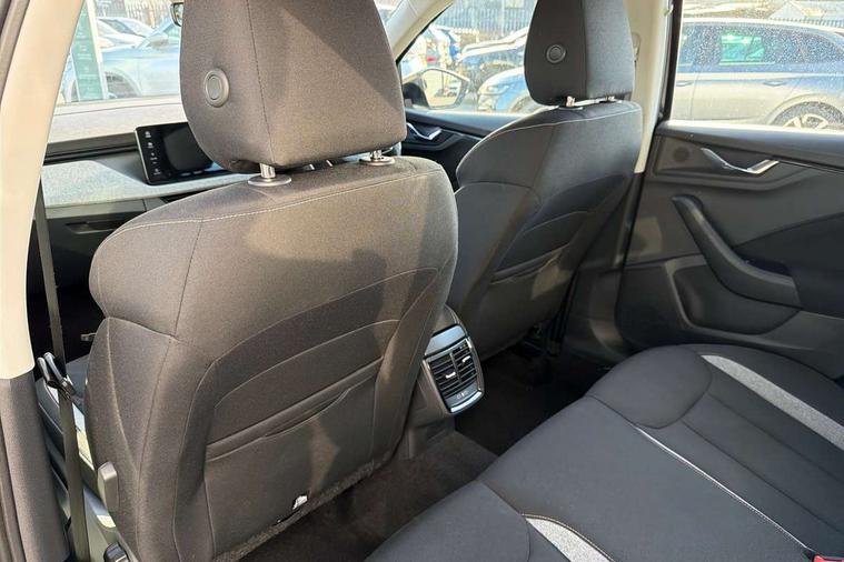 Advanced driver attention and drowsiness monitor, Bluetooth system, E-call, Front assist system, PAS, Rear parking sensors, Rear view camera, Service indicator, Speed limiter, Traffic sign recognition, Virtual cockpit with 10.25" display, Wireless smartlink, 4 USB C ports, 8 Speakers, 9.2" Skoda navigation display, DAB Digital radio, Auto dimming rear view mirror, Automatic headlight control with coming home and leaving home feature, Black roof rails, Body colour bumpers, Body colour door mirrors and handles, Chrome grille surround, Front and rear electric windows, Full LED headlights, Heated rear window, LED brake lights, LED daytime running lights, LED front turning lights, LED high beam, LED low beam, LED third brake light, Rear LED fog light, Rear side wing doors, Rear wiper, Ticket holder inside windscreen, 12V socket in luggage compartment, 3 seat bench in 2nd row, Black hotstamping, Cargo elements, Chrome inner door handles, Driver and passenger sun visors with vanity mirror, Dual zone climate control, Front and rear roof lights, Front centre armrest, Front head restraints, Glove compartment with illumination, Height adjustable driver seat, Height adjustable front passenger seat, Ice scraper, Inner circulation control with pollen filter, ISOFIX on front passenger seat, Isofix preparation for back seats, Krepp recycled decor inserts, Leather gearknob and handbrake lever, Loft cloth upholstery, Manual lumbar support for front seats, Net package and top tether hooks in boot space, Net under rear shelf, Overhead glasses storage compartment, Pocket on the back of both front seats include mobile phone pockets, Rake/reach adjustable steering wheel, Reading lights, Satin black door inserts, Single front passenger seat, Textile floor mats, Third rear headrest, Top tether for front passenger seat, Umbrella in driver's door, 3x3 point rear seatbelts, Airbags - driver and front passenger, Disc brakes, ESP, Extended and predictive pedestrian/cyclist protection, Front passenger airbag deactivation switch, Front side airbags with curtain airbags, Hill hold control, Manual leather parking brake, Manual rear child locks, One tone horn, Seatbelt reminder for driver an co-driver, Traction control, Tyre pressure monitor, Anti-theft alarm system with interior monitoring, backup horn, towing protection and remote central locking with SAFE system, Anti-theft wheel bolts, Electronic engine immobilizer,