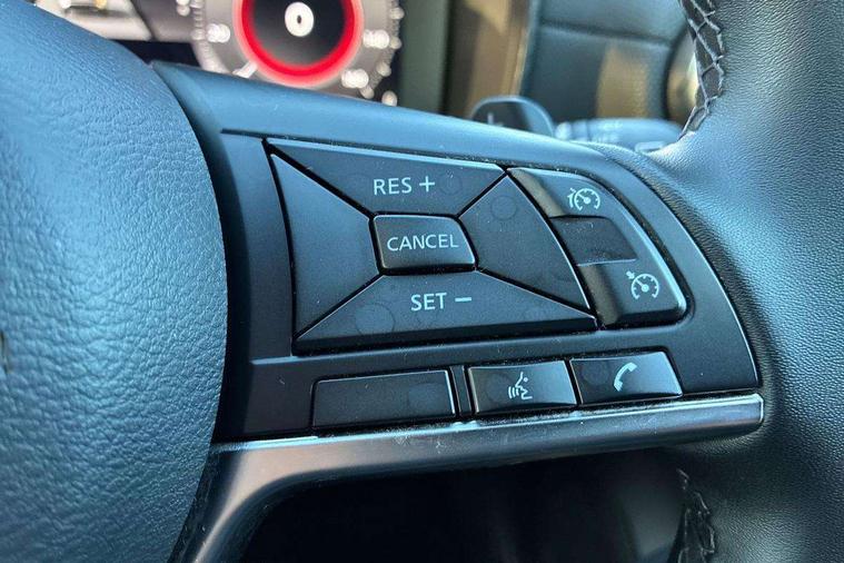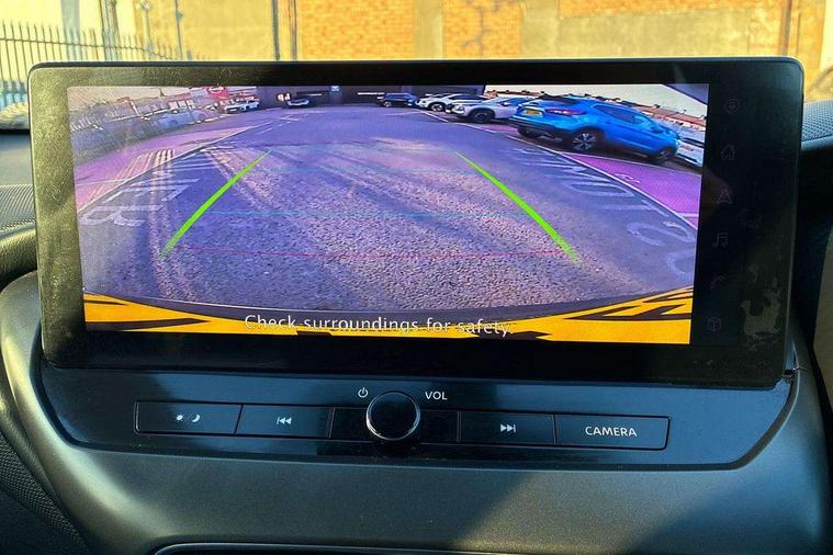 12.3" full colour TFT screen combimeter, Drive modes select (Eco, normal and sport), Emergency and breakdown call, Front parking sensor, Idle start/stop system, Intelligent driver alert system, Intelligent lane intervention, Lane departure warning system, Nissan connect 12.3" touch screen entertainment system, Nissan connect nav with TomTom traffic, Nissan connect services, Outside temperature sensor, Power Steering, Rear parking sensor, Stop/start button, Traffic sign recognition, Trip computer, Voice recognition, WiFi connectivity, Wireless Apple CarPlay and Google Android auto, Wireless Smartphone charger, 2 X Rear console USB port, 6 speakers, Bluetooth system, USB, Aux-in and 12V socket, DAB Digital radio, Auto dimming frameless rear view mirror, Automatic hazard signal with emergency stop signal, Body colour door handles, Electrically adjustable door mirrors with integrated indicators, Follow me home headlights, Front and rear electric window with one touch driver window, Heated and auto folding door mirrors, High beam assist, LED 3rd brake light, LED daytime running lights, LED headlamps, LED rear fog lamp, LED rear lamps, One touch passenger window, Rain sensor windscreen wipers, Rear privacy glass, Rear side wing doors, Rear wiper, Roof spoiler, Shark fin roof antenna in solid Black, Three blink turn signal, 3 height adjustable rear headrests, 3 seat bench in 2nd row, 60/40 split folding rear seat, Automatic climate control, Card holder on driver sunvisor, Cloth/Synthetic leather with melange fabric inserts, Driver side rear coat hanger, Driver/passenger sunvisors and vanity mirrors, Front and rear cabin lights, Front armrest, Front door pockets with bottle holders, Front head restraints, Front/rear passenger grab handles, Height adjustable driver's seat, Internal chrome door handles, Leather gearshift knob, Luggage board, Luggage space lighting, Monoform sporty seats, Multifunction steering wheel, Rear door bottle holders, Single front passenger seat, Smooth synthetic leather steering wheel, Steering wheel mounted gearshift paddles, Synthetic leather kneepad, Telescopic steering wheel adjustment, Two cupholders in front centre console, Two rear isofix child seat anchorage points with top tether, Welcome light and console tray ambient lighting, ABS with EBD and brake assist, Active ride control, Active Trace Control, Driver and passenger airbags, Driver and passenger side airbags, Electric handbrake with auto hold function, Electronic Stability Programme (ESP), Front and rear curtain airbags, Height adjustable seatbelts, Hill start assist, Intelligent emergency braking with pedestrian and cyclist recognition, Rear door child safety locks, Seatbelt reminder for driver/front passenger and rear seats, Three 3 point rear seatbelts, Traction control, Tyre pressure monitoring system, VDC Dynamic Vehicle Control, Alarm, Immobiliser, Intelligent key and start push button with walk away lock and approach unlock functions, Remote central locking, 17" Alloy wheels, Tyre puncture repair kit,