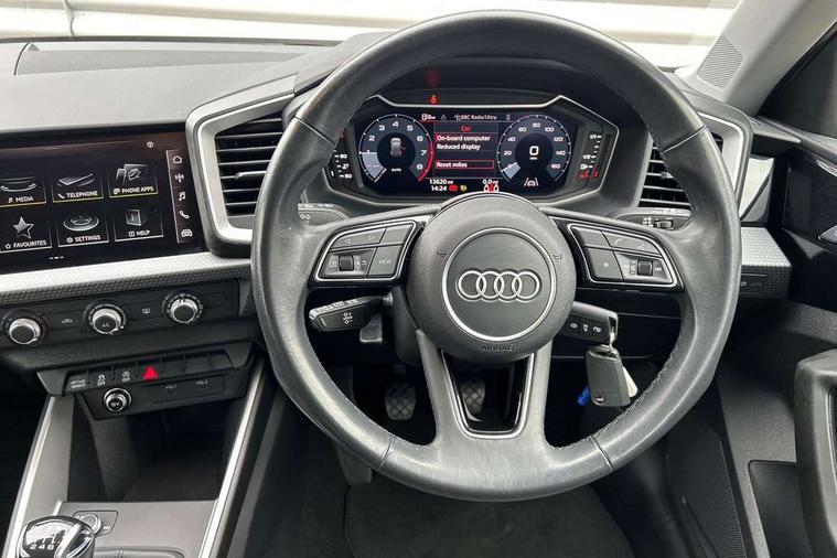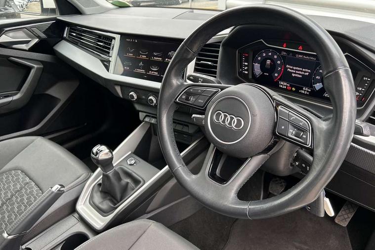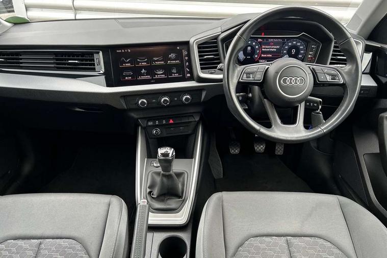 10.25" Digital instrument cluster display classis style instrument dials + speed, odometer, time, outside temperature, telephone menu + fuel level warning, Audi drive select - power steering assistance + engine, Audi smartphone interface with connect compatible smartphone via USB directly MMI display + Nav, music, third party apps controlled via MMI controller, Automatic start/stop system, Bluetooth interface, Cruise control, Driver's information system, Electromechanical power steering, Emergency e-call, Lane departure warning system, Rear parking sensor, Service interval indicator, Speed limiter, Voice control system, Washer fluid level indicator, Dynamic suspension, 2 x USB type C connection points, 6 passive loudspeakers, DAB Digital radio, MMI radio plus with 10.1" colour MMI display screen and MMI touch, Auto dimming rear view mirror, Body coloured bumpers, Body coloured door mirrors, Electric front and rear windows, Electrically adjustable, heated, folding door mirrors with integrated LED side indicator, Front side air inlets in grained matt black and C frame in anthracite black, Heat insulating glass windscreen and side windows, Heated rear windscreen, High level LED brake light, LED headlights with LED rear lights + dynamic rear indicators + headlight adjustment and high beam, turning light + LED daytime running lights, Radiator grille and rear diffuser in matt anthracite black, Radiator protective grille frame in matt aluminium silver, Rain and light sensors, Rear fog lights, Rear side wing doors, Rear wiper, Side front spoiler lips in grained matt black, 12V socket in centre console with two cup holders, 3 rear seats with headrests, 3 seat bench in 2nd row, 3 spoke leather multifunction plus steering wheel, 40:60 Split folding rear seat or folded fully, Black front and rear floor mats, Door sill trims with aluminium inlay, Driver and passenger seat with manual height adjust with forward and backwards adjustment, Front head restraints, Front passenger seat, Grey cloth headlining, Height and reach adjustable steering wheel, ISOFIX child seat mounting for front passenger and outer rear seats including top tether attachment point of outer rear seats, Leather gear knob with aluminium trim, Leatherette handbrake grip, Luggage compartment light with front and rear reading lights, Manual air conditioning, Manually adjustable lumbar support in front seats, Novum cloth upholstery with front sport seats, Luggage compartment pack - A1, 3x3 point rear seatbelts, Audi pre-sense front with pedestrain and cyclist recognition, Brake assist function, Driver and front passenger airbag with front side and head airbags, Electronic Stability Control including ABS, EBD, ASR and EDL, Front passenger airbag deactivation switch, Hill hold assist, Manual rear child locks, Seatbelt height adjustment for front seats, Seatbelt monitoring, Tyre pressure warning light, Warning triangle and first aid kit, Anti theft alarm, Anti theft wheel bolts and loose wheel warning, Immobiliser, Remote central locking with 2 foldaway keys, Aluminium trim for control switches, air vents and digital instrument cluster, Black dashboard, Silver grey accent areas including air vents, door handle recesses and centre console in diamond paint finish, Slate grey inlays polygon structure in fine paint finish,