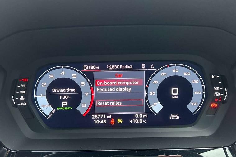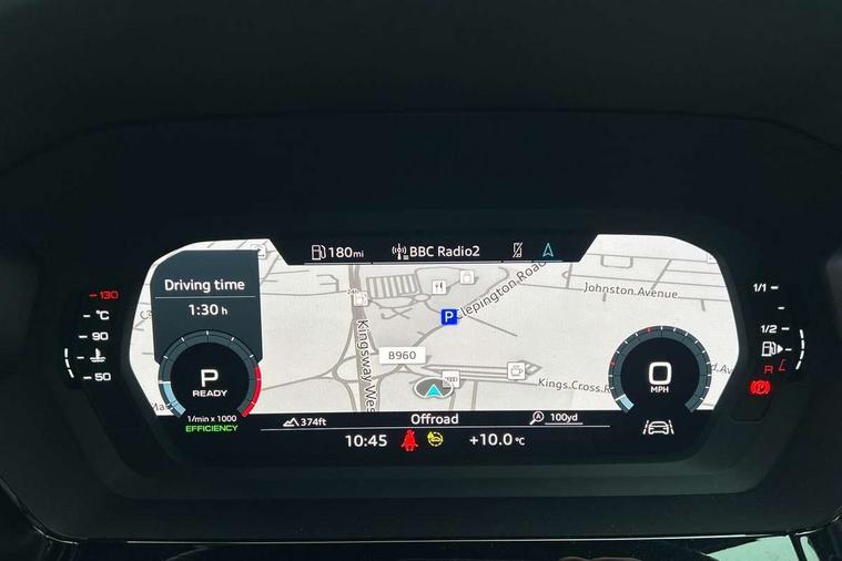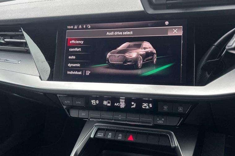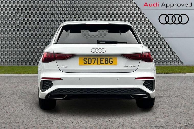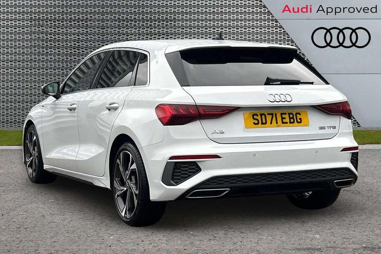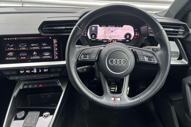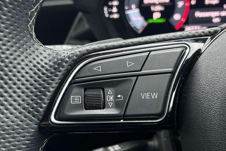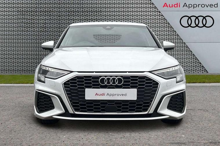 Audi connect emergency call and service, Audi drive select (Auto, Comfort, Dynamic, Efficiency and Individual), Audi smartphone interface, Audi Virtual Cockpit - 10.25" digital and colour instrument cluster, Automatic start/stop system with recuperation, Bluetooth interface, Collision avoidance assistant, Electromechanical power speed sensitive steering, Lane departure warning system, MMI Navigation Plus with high resolution 10.1" colour touch screen display, Service indicator, Trip computer, Voice control system with natural language interaction, 2xUSB-C connection with data and charging functions, 6 passive loudspeakers, DAB Digital radio, 3rd brake light, Acoustic glass windscreen, Aluminium window trim, Auto dimming frameless rear view mirror, Electrically adjustable/heated/folding/dimming door mirrors with kerb view includes integrated LED indications + kerb view function for passenger side, Front electric windows, Illuminated aluminium inserts front door sills with S logo, LED daytime running lights, LED headlights with LED rear lights and dynamic rear indicators, Light and rain sensors, Privacy glass - dark tinted rear window, rear door and side windows, Rear electric windows, Rear side air outlets in grained matt black, Rear wiper, S line bumpers, S roof spoiler, 12V socket and storage compartment in front centre console, 40/20/40 split folding rear seat bench with cupholder, Black cloth headlining, Dual zone electronic climate control, Front and rear centre armrest in leather, Front and rear headrests, Front/rear floor mats, Height and reach adjustable steering wheel, Interior lighting - glove compartment light and right hand side, Luggage compartment floor covering, Manual boot compartment lid, Manually adjustable front seats, Seat side bolsters, Stainless steel pedals and front footrest, Twin leather upholstery with front sports seats S embossed logo, Aluminium interior elements pack - A3 Sportback, S line styling pack - A3 Sportback, 3x3 point rear seat belts, Driver and front passenger airbag with passenger airbag deactivation, Electronic Stabilisation Control (ESC) including ABS, ASR and EDL, First aid kit with warning triangle and 2 safety vests, Front side airbags with head airbags and interaction airbag, Hill hold assist, Pre-sense front with pedestrian and cyclist detection, Seatbelt monitoring, Tyre pressure loss indicator, Anti theft alarm, Anti-theft wheel bolts, Electronically operated child lock, Immobiliser, Remote control central locking, Accent surfaces in the dashboard and centre console in platinum grey silk effect paint finish, Dark spectrum aluminium inlays,