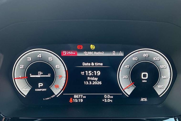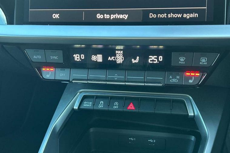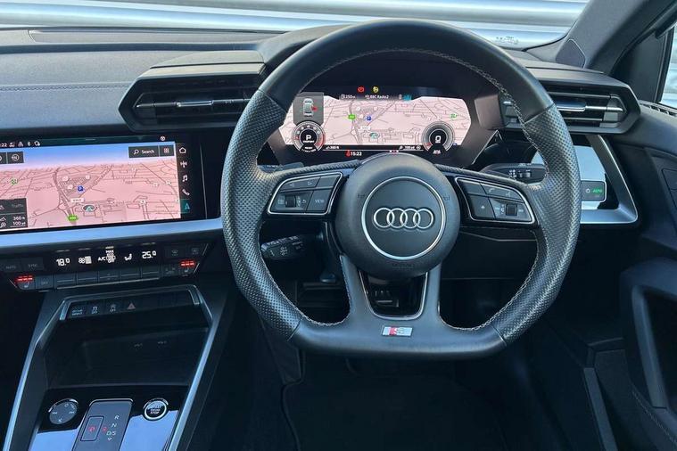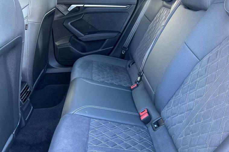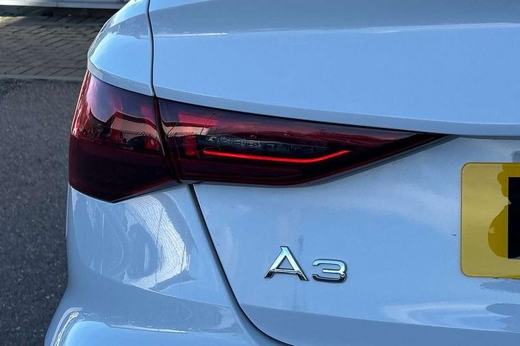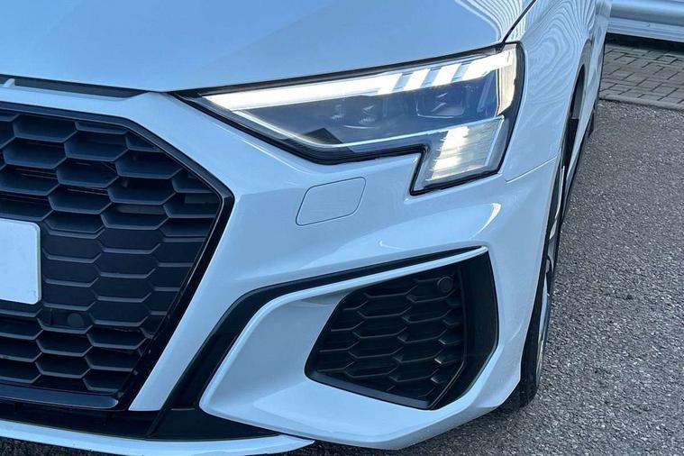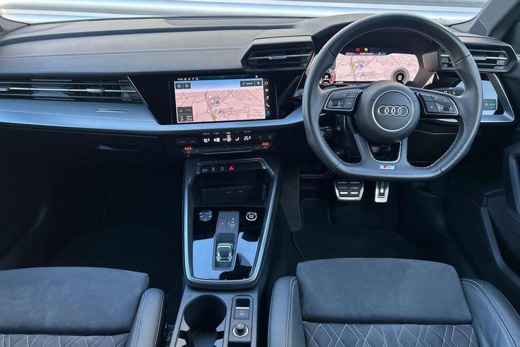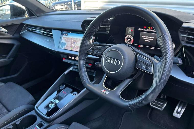Audi connect emergency call and service, Audi drive select (Auto, Comfort, Dynamic, Efficiency and Individual), Audi smartphone interface, Audi virtual cockpit plus - 12.3" dynamic digital instrument cluster, Automatic start/stop system with recuperation, Bluetooth interface, Collision avoidance assistant, Electromechanical power speed sensitive steering, Lane departure warning system, MMI Navigation Plus with high resolution 10.1" colour touch screen display, Service indicator, Voice control system with natural language interaction, Sports suspension, 2x USB Type C ports (for charging and data transfer), 6 passive loudspeakers, CD player, DAB Digital radio, 3rd brake light, Acoustic glass windscreen, Audi matrix LED headlights, LED rear lights, dynamic front and rear indicators and headlight cleaning system, Auto dimming frameless rear view mirror, Electrically adj heated/folding + automatically dimming exterior mirrors + automatic kerb side function for passenger side exterior mirror, Front electric windows, Illuminated door sills with aluminium inserts at the front with S logo, Integrated LED indicators in door mirrors, LED daytime running lights, Light and rain sensors, Model and engine designation badges at rear, Privacy glass - dark tinted rear window, rear door and side windows, Rear boot, Rear electric windows, Rear side wing doors, S roof spoiler, 12V socket and storage compartment in front centre console, 3 seat bench in 2nd row, 4 way electrically adjustable lumbar support for driver and front passenger, 40/20/40 split folding rear seat bench with cupholder, Black cloth headlining, Dual zone electronic climate control, Electrically adjustable front seats, Front and rear centre armrest in leather, Front and rear headrests, Front/rear floor mats, Heated front seats, Height and reach adjustable steering wheel, Illuminated vanity mirror, Interior lighting - glove compartment light and right hand side, Luggage compartment floor covering, Single front passenger seat, Stainless steel pedals and front footrest in black, Aluminium interior elements pack - A3 Saloon, Dinamica microfibre/mono.pur 550 artificial leather pack - A3 Saloon, Extended ambient lighting pack - A3/S3 Saloon, LED interior lighting pack - A3 Saloon, 3x3 point rear seat belts, Driver and front passenger airbag with passenger airbag deactivation, Electronic Stabilisation Control (ESC) including ABS, ASR and EDL, First aid kit with warning triangle and 2 safety vests, Front side airbags with head airbags and interaction airbag, Hill hold assist, Pre-sense front with pedestrian and cyclist detection, Seatbelt monitoring, Tyre pressure loss indicator, Anti theft alarm, Anti-theft wheel bolts, Electronically operated child locks, Immobiliser, Remote control central locking, Aluminium air vent surrounds, Aluminium trim elements, Dark spectrum aluminium inlays, accent surfaces in the dashboard and centre console in platinum grey silk effect paint finish, 19" 5 arm trapezoid design alloy wheels in titanium matt grey with diamond cut finish,