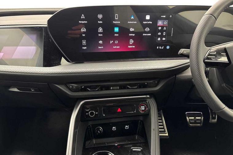 Adaptive cruise assist plus with steering intervention, Advanced driver attention alert, Audi application store, Audi connect emergency call and service, Audi digital key, Audi drive select, Audi smartphone interface, Audi virtual cockpit plus with 11.9" OLED colour display, Camera based traffic sign recognition, Fatigue monitor, Front cross traffic intersection assist, Garage door opener, Lane change assistant with exit warning system, rear cross traffic alert and rear turn assist, Lane departure warning with emergency assist, MMI 10.9" front passenger touch display, MMI navigation plus with high resolution 14.5" OLED touchscreen colour display, Park assist plus, Parking system plus with 360 display, PAS, Reversing camera, Swerve assist and turn assist, Top view camera, Traffic sign based speed limiter, Adaptive air suspension, 2 USB-C ports in both the front and rear, DAB Digital radio, Smartphone compartment with wireless charging, Acoustic glass for front door windows, Active digital light signatures - Six additional combinations of active daytime running light signature, Aluminium roof rails, Auto dimming rear view mirror, Body coloured door mirrors, Coming/leaving home lighting function, Digital OLED tail lights including communication light, Electrically adjustable heated and folding + automatically dimming exterior mirrors, Front and rear electric windows, Front door sill trims with aluminium inlays, illuminated with 'S' logo, Grill frame, inlay and front air inlets in matt anthracite chrome, Headlight cleaning system, Heated rear window, High beam assist, High gloss window surrounds, Logo projection light in exterior mirrors, Matrix LED headlights, Privacy glass, Projection third brake light for rear window in LED, Radiator grille in phantom black, Rear and side windows with heat insulating glass, Rear honeycombe grille in matt black with inlay in matt anthracite chrome, Rear side wing doors, Rear wash/wipe, S Line badge on the front wings, S line bumpers in contrasting Volcano grey metallic paint finish, Towbar preparation, Windscreen with acoustic glazing, 3 rear head restraints, 3 seat bench in 2nd row, 3 spoke leather steering wheel with multi-function buttons with touch control, flattened on top and bottom, with S badging and contrast stitching, 4 way electric lumbar support for driver and front passenger, 40:20:40 split folding rear seat bench with centre armrest and cup holders, Comfort centre armrest front, Deluxe 3 zone electronic climate control, Electric steering wheel adjustment, Electrically adjustable front seats with memory function for driver's side, Front and rear floor mats, Front sport seats with integrated head restraints, Headlining in black cloth, Heated front seats, Heated outer rear seats, Heated steering wheel, i-Size child seat mounting on the front passenger side and outer rear seats, i-Size and top tether on the outer rear seats, Interior trim in aluminium look, Luggage compartment lid, electrically opening and closing, Single front passenger seat, Softwrap in leatherette, Stainless steel pedals and footrest, Steering wheel grips in perforated leather and shift paddles, Twin leather upholstery, Ambient lighting package plus - Q5, Sound and Vision pack - Q5, Storage and luggage compartment pack - Q5, Vanadium pack - Q5, 3x3 point rear seatbelts, ABS, Acoustic vehicle alerting system, Convenience key with safelock, Driver and front passenger airbag with passenger airbag deactivation, Electric child safety locks, First aid kit with warning triangle and high visibility vests, Front emergency brake assist, Front side airbags with head airbag system and front interaction airbag, Hill hold assist, Occupant detection in rear seat area, Proactive passenger protection system for front, sides and rear, Side airbags in front and rear with head airbag system and front interaction airbag, Tyre pressure loss indicator, Anti theft alarm, Anti-theft wheel bolts, Remote control key with SAFELOCK and keyless go, Anthracite matt brushed aluminium inlays with linear embossing, Black dashboard with contrast stitching, Steel grey seat stitching, Upper and lower interior elements in artificial leather, 20" 5 twin spoke black metallic, gloss turned finish Audi Sport alloy wheels, Tyre repair kit,