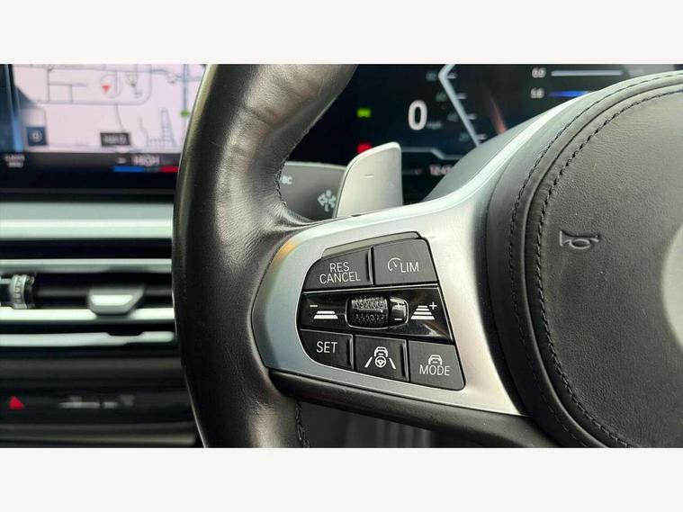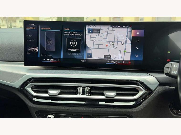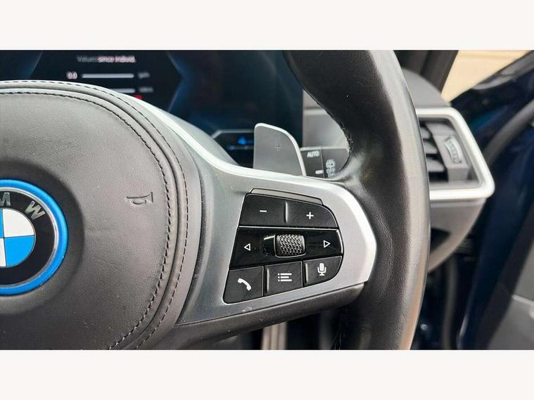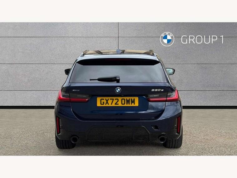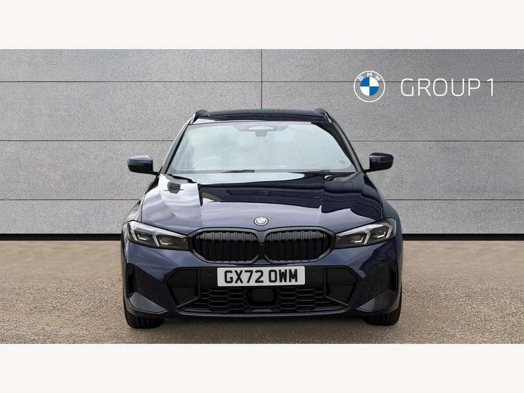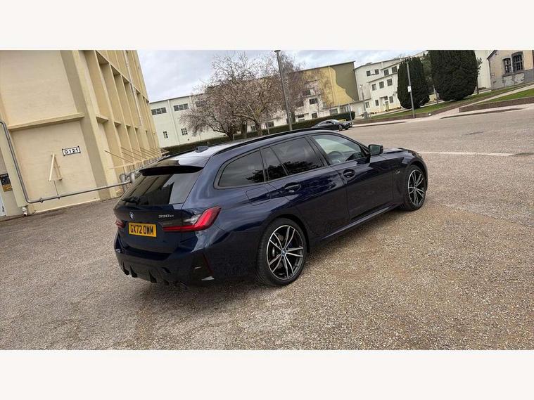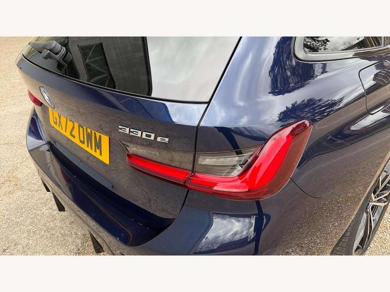 Active guard plus, Attentiveness assist, Automatic Start/stop button, BMW iDrive, BMW Teleservices, Condition based service, ConnectedDrive Services, Driving experience switch, Live cockpit plus with Navigation + 12.3" instrument display + 14.9" display, Intelligent voice assist, 2 USB, 4G LTE connect, Oil sensor for level and grade, PAS, Preparation for driver assistance, Shifting point display, Double joint spring strut front axle, Electronic differential lock control (EDLC), Fast charging cable - Mode 3, Flexible charger (Mode 2), Fuel tank breather system, Sport automatic transmission with steering-wheel mounted gearshift paddles and launch control, Standard suspension, DAB tuner, "Electrified by i" exterior badging on charging flap, 3rd brake light, Acoustic glazing, Automatic headlight beam throw control with load dependent regulating reaction, dynamic compensation of braking dive and acceleration squat, BMW emblem, engine compartment lid and tailgate, Body colour roof fin, Door sill strips, Electric windows - front and rear, with open/close fingertip control, anti-trap facility and comfort closing, Follow me home headlight function, Front and rear bumper system with replaceable deformation elements, Front apron plastic in body colour, Fuel filler flap - right rear in body colour, Heated washer jets, High gloss shadow line exterior trim, High gloss shadow line roof rails, Illuminated bow type door handles in body colour drivers side with door lock, Interior rear view electrochromatic mirror with automatic anti dazzle function, LED rear lights, Licence plate panel integrated into front bumper and tailgate, Matt black B-pillar finsher, Matt black window recess cover, Model designation on right side of tailgate, One piece front bumper cover including towing eye cover in body colour, Rain sensor with automatic headlight activation, Rear side wing doors, Rear wiper, Reversing lights, Side frame decorative moulding black matt, Visible exhaust tailpipe finisher, Welcome lights in interior and door handle area, 12V power socket in front storage compartment, 2 front cupholder in centre console with clamping elements and matt black inlay, 3 seat bench in 2nd row, 3 zone automatic air conditioning, 40:20:40 split folding rear seat with loading system, Ambient inside door handle light, Ambient light design projected onto the left and right entering and exiting area, Ambient lighting front and rear with 9 selectable colours, Ambient storage compartment lighting in the centre console, Anthracite headlining, Armrest integrated in front and rear door trim + front centre console armrest, Battery in luggage compartment, BMW ID, Contour lighting in instrument panel and door trim panel, Cruise control operation in steering wheel, Driver backrest width adjustment, Folding rear centre armrest with 2 cupholders, Front and rear ambient footwell lighting, Front and rear door exit lighting (left / right), Front and rear headrests, Front and rear reading lights, Front and rear velour floor mats, Front sport seats, Heated front seats, Height adjustable mechanically and infinitely variable steering column, Illuminated armrest storage compartment, Illuminated glove compartment, Illuminated luggage compartment, Lashing eyelets in luggage compartment, M Sport multifunction leather steering wheel, Make-up mirror lights, Single front passenger seat, Standard seat for driver and passenger with manual adjustment, Sunvisors with vanity mirrors and ticket pocket, Toolkit located in luggage compartment, Connected pack professional - 3 Series Saloon/Touring, Interior and exterior mirror pack - 3 Series Touring/Saloon, M Aerodynamics package - 3 Series Saloon/Touring, M sport exterior styling pack - 3 Series Saloon/Touring, Storage compartment pack - 3 Series Saloon/Touring, 3x3 point rear seatbelts, BMW emergency call, Child locks on rear doors, Crash sensor activating of airbags, Unlocking doors, hazard warning lights, interior light, safety battery terminal, Driver and front passenger with seat occupancy detection for driver's and passenger side, Driver and passenger side airbags, body protection at side and airbags deploy from seat backrests, Dynamic brake control, Dynamic stability control + (DSC+) - Anti-lock Braking System (ABS) with brake assist and cornering brake control + Automatic Stability Control (ASC), Dynamic Traction Control - DTC, Electric parking brake including automatic hold function and automatic release of the parking brake when driving off, Head airbags in 1st and 2nd row, head protection at side, curtain airbags open from headliner above 1st and 2nd row, Plastic fuel tank, Side impact protection, Tyre pressure monitoring with three level warning strategy, Ventilated front and rear disc brakes, Warning triangle and first aid kit, Alarm system, Centre lock switch, Closing system with central locking, Electronic vehicle immobiliser,