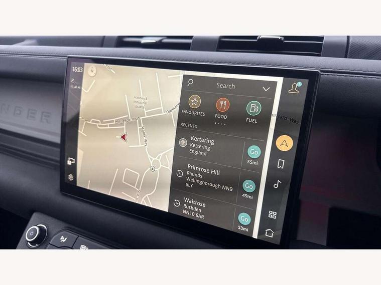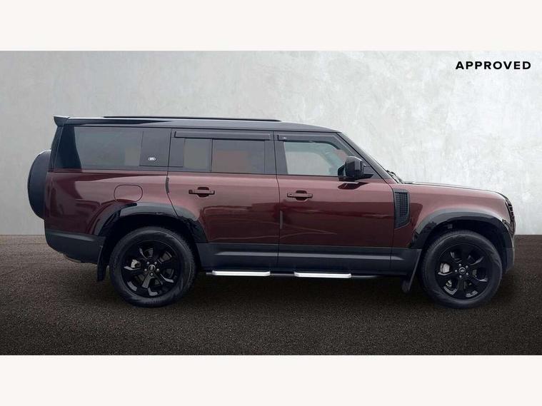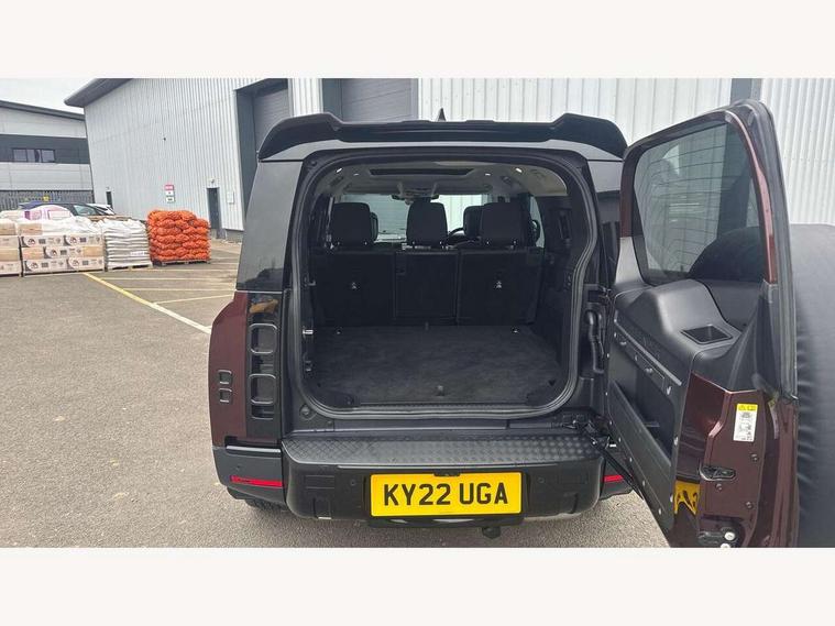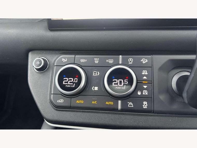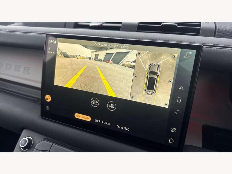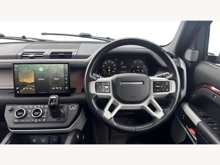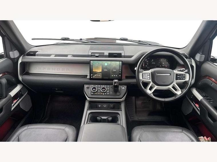 11.4" touchscreen, 360 degree parking aid, 3D Surround Camera with 360 View, 180 Rear View, Front Traffic Detection, Forward Vehicle Guidance, Tow Hitch Assist and clear sight Ground View, Adaptive cruise control, Android Auto, Apple CarPlay, Assisted tailgate with soft close, Blind spot assist, Bluetooth system, Brake pad wear indicator, Clear exit monitor, Connected navigation pro, Driver condition monitor, Electric power assisted steering (EPAS), Lane keep assist, Push button start, Rear collision monitor, Rear traffic monitor, Traffic sign recognition with adaptive speed limiter, Trip computer, Wade Sensing, 8 speed automatic transmission, Adaptive dynamics, All wheel drive system, Electronic air suspension, Twin speed transfer box, DAB Radio (Digital Audio Broadcasting), Pivi pro connected, Automatic headlight levelling, Automatic headlights, Black roof rails, Centre high mounted stop light, Electric heated/power fold door mirrors with approach lights and auto dimming driver side, Electric windows with one touch open/close and anti-trap, Follow me home lighting, Front fog lights, Heated rear window with timer, Heated windscreen, LED tail lights, Puddle lights, Rain sensing windscreen wipers, Rear fog lights, Rear side wing doors, Rear wiper, Side hinged tailgate, Sliding panoramic roof, Standard tread plates, Trailer stability assist, 12V power socket in loadspace, 14 way heated and cooled electric adjustable memory front seats with 4 way manual headrests, 3 seat bench in 2nd row, Air quality sensor, Alpine lights, Cabin Air Purification plus, Durable rubber cabin flooring, Durable rubber loadspace flooring, Electric cabin pre conditioning, Electric reach + rake adjustable steering column, Extended leather upgrade, Footwell lights, Front passenger isofix child seat attachment, Heated steering wheel, Loadspace cover, Loadspace Hook, Multifunction steering wheel, Overhead stowage for sunglasses, Premium cabin lighting, Rear headrests, Rear ISOFIX, Rear reading lights, Single front passenger seat, Standard seat configuration, Storage glovebox, Sunvisors with illuminated vanity mirrors, Twin front cupholders with cover, Non-smoker package, Online pack with data plan - Defender, 5 x 3 point seatbelts, ABS, Brake hold function, Cornering brake control (CBC), Customer configurable autolock, DSC - Dynamic Stability Control, EBD - Electronic brakeforce distribution, Electric parking brake (EPB), Emergency brake assist, Emergency braking, ESP + traction control, Front airbags with passenger seat occupant detector, HDC - Hill descent control, Hill launch assist, Low traction launch, Power operated child locks, Remote for (e-Call, Optimised assistance call, InControl app, Climate, beep and flash and door), RSC - Roll stability control, Seat belt reminder, TPMS (Tyre pressure monitoring system), Alarm, Immobiliser, Intrusion sensor, Keyless entry, Locking wheel nuts, All season tyres, Body coloured spare wheel cover,