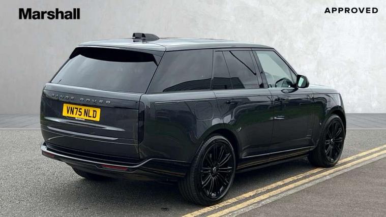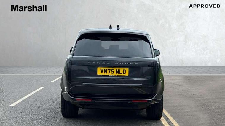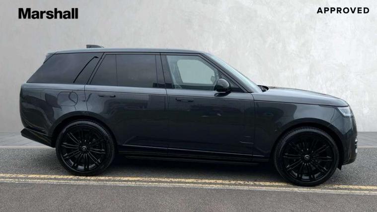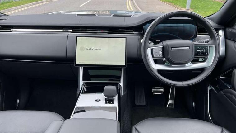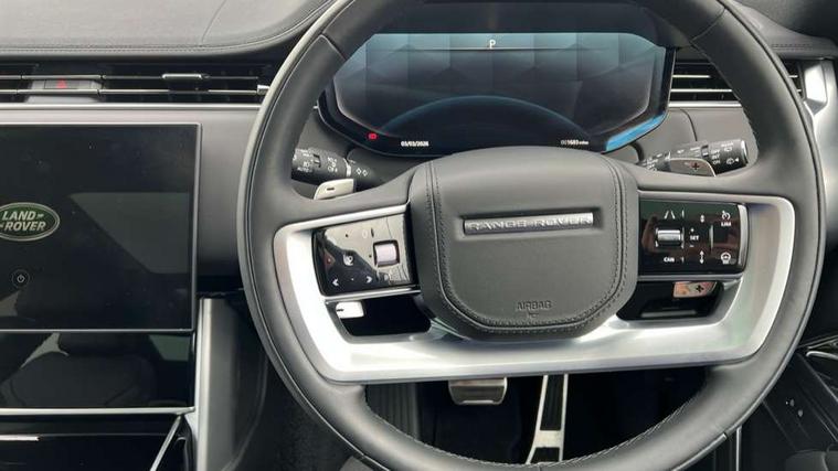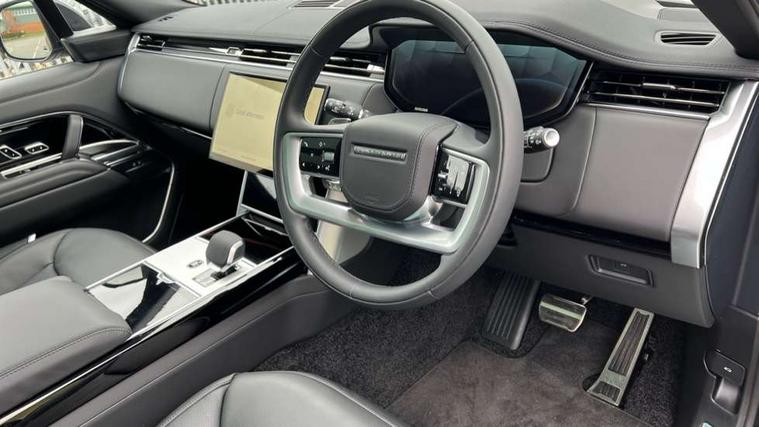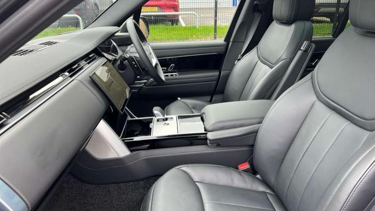 13.1" Touchscreen, 3D surround camera inc frwd traffic detection, vehicle clearance guidance, 3D view, clearsight ground view, manoevure light, 360 parking aid, wade sensing, Adaptive cruise control with steering assist, All Terrain Info Centre, All wheel steering, Blind spot assist, Bluetooth connectivity streaming, Driver monitoring and response with driver facing camera & driver distraction monitor, Eco mode, Electric power assisted steering (EPAS), Emergency call service, Front and rear parking aid, Head up Display, Interactive driver display, Lane keep assist, Park assist, Powered gesture tailgate/boot lid, Rear collision monitor, Rear traffic monitor, Remote, Traffic sign recognition with adaptive speed limiter, Wi-Fi Enabled with data plan, Wireless Apple CarPlay/Android Auto, Wireless device charging, 8 speed automatic transmission, Active damper technology system, Adaptive dynamics, Adaptive off-road cruise control, All Wheel Drive (AWD), Automatic access height, Terrain Response 2 Auto, Twin speed transfer box, Digital Audio Broadcast radio-DAB, Pivi pro including smart settings, Connected navigation pro, nuance speech, USB socket, Acoustic laminated windscreen, Animated directional indicators, Automatic headlights, Automatic levelling headlights, Centre high mounted stop light, Electric windows with one touch open/close and anti trap, Engine cover, Flush deployable exterior door handles, Front and rear recovery eyes, Front fog lights including cornering lamp, Headlamp power wash, Heated rear window, Heated washer jets, Illuminated aluminum treadplates with Range Rover script, LED tail lights, No badges, Power fold, auto-dimming, heated door mirrors with approach lights, Rain sensing windscreen wipers, Rear boot, Rear fog lights, Rear side wing doors, Side repeater indicators in mirror, Standard bonnet, Winter wiper park position, 3 seat bench in 2nd row, 30 Colours configurable cabin lighting with 4 lighting zones, Air quality sensor, Auto folding loadspace cover, Bright metal pedals, Cabin air purification pro, Customer configurable single point entry, Driver and passenger front seat armrests, Easy boot loading, Ebony Carpet, Front and rear cupholders, Front and rear grab handles, Front head restraints, Heated steering wheel, Hook in load space, Loadspace light, Luggage tie down in loadspace, Multifunction steering wheel, Rear centre armrest, Rear head restraints, Rear ISOFIX, Satin chrome gearshift paddles, Single front passenger seat, Soft close doors, Upper and lower glovebox, Online pack with data plan - Range Rover, 3x3 point rear seat belts, Anti-lock braking system (ABS), Brake hold function, Cornering brake control (CBC), Customer configurable autolock, DSC - Dynamic Stability Control, Electronic brake force distribution, Electronic parking brake, Electronic traction control, Emergency braking, Front airbags with passenger seat occupant detector, Front side airbags, Hill descent control, Hill launch assist, Low traction launch, Occupant protection assist, Power operated child locks, Roll stability control, Tyre pressure monitoring system (TPMS), Immobiliser, Intrusion sensor and alarm, Keyless entry, Locking wheel nuts, Remote central locking, Noble chrome controls,