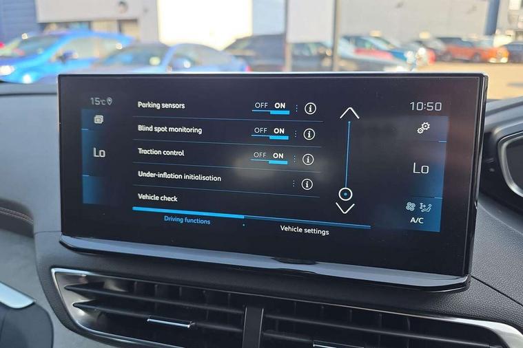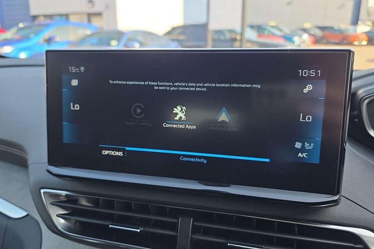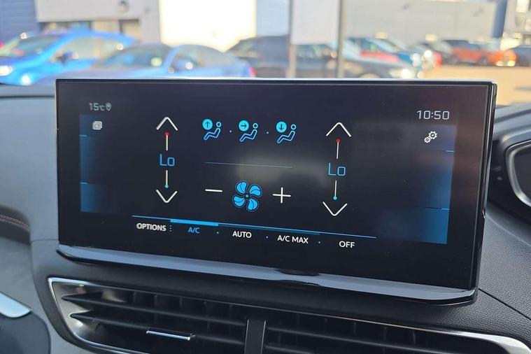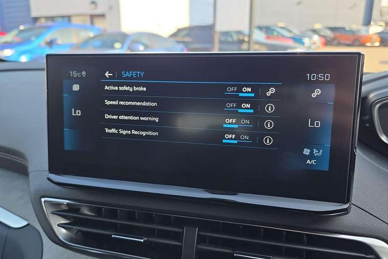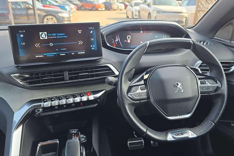 10" High Definition Capacitive Touchscreen, 3D connected navigation + voice control, Bluetooth telephone connection, Drive mode selector (Eco, Normal and Power), Driving timer alert system, Emergency services call system, Extended traffic sign recognition, Exterior temperature indicator with ice warning, Lane departure warning system, Mirror screen with Apple CarPlay and Android auto, Multi function trip computer, Passive blind spot monitoring without Steering correction, Peugeot i-cockpit with configurable 12.3" headup digital instrumental panel and compact sports steering wheel, PEUGEOT SOS and assistance, Rear passenger USB charging sockets (x2) (type A), Speed limit recognition and recommendation, Sports button, Voice recognition for radio and telephone, Dynamic stability control and electronic anti-skid system, Bi Tuner radio including DAB, Focal premium HiFi sound system, USB socket, Auto self levelling headlights, Automatic activation of hazard warning lights, Black diamond roof and nera black door mirror shells, Body colour door handles, Body coloured rear spoiler, Body protectors in black, Chrome side window trim, Dark tinted rear side and tailgate windows, Door mirrors with auto dipping function in reverse gear, Dynamic frameless design in front radiator grille, Electric folding door mirrors with exterior courtesy LED lighting, Electrically heated door mirrors, FOCAL tweeter speaker grilles in 'belem bronze metal effect finish, Frameless electrochrome rear view mirror, Front windscreen wiper with magic wash cleaning system, Full LED headlights with fog mode, Gloss black B and C pillar and aerodynamic deflector trim, Gloss black rear cluster connecting strip, GT emblem (front wings and tailgate), Headlights left on audible warning, Heated rear windscreen with integrated antenna, LED daytime running lights in fang style, LED front indicator, LED rear lights including reversing lights, scrolling indicators and PEUGEOT '3Claw Effect' light signature (with daylight function), LED rear number plate lighting, LED side indicator lights integrated into door mirrors, LED third brake light, One touch electric front/rear windows with pinch protection, Rear side wing doors, Rear windscreen wiper with auto activation when reversing, Silver front lower bumper, Twin exhaust effect trim, 2 cupholders in front centre console, 2 separate seats in 3rd row, 3 bench rear seats in 2nd row, 3 x 12V power sockets, 4 Grab handles retractable and damped, Aikinite stitching in armrest, gear lever and dashboard facia, Aluminium pedals, Automatic and dual zone diffusion air conditioning system, Blue ambient lighting for connecting zone, Blue ambient lighting to front door panels, central storage and cupholders, Blue ambient lighting to head up instrument panel, Brumeo fabric trimmed door armrests, Central front armrest with butterfly wing opening, Tramontane double stitching and illuminated storage compartment, Electric power steering with reach and rake adjustable steering column, Flocked front door pocket interior with blue ambient lighting, Flocked glovebox interior, Fold flat front passenger seat with picnic table, Footwell lighting, Front ambient lighting, Front interior light with reading spotlights (x2), row 2 interior light with reading spotlights (x2), Front passenger seat manual adjustment (longitudinal and back rest angle), Gear shift indicator, Height adjustable driver seat, Height adjustable passenger seat, Illuminated glovebox, Illuminated vanity mirror, Isofix child seat fittings x 3 in the second row, LED interior lighting, Map pocket on front seat backs, Mistral floor mats with Aikinite contrast stitching, Mistral full grain perforated leather steering wheel with aikinite stitch detail and satin chrome 'GT' emblem, Rear ventilation system, Retractable parcel shelf, Roof lining and windscreen pillars in Mistral black, Satin chrome digital instrument panel and touchscreen trim, Satin chrome front door panel recess trim, Satin chrome interior door handles, Satin chrome scorpion's tail and toggle switch trim, Seatbelt not fastened audible and visual alert for front seats, Seatbelt unfastened on the move audible and visual alert for front and rear seats, Single front passenger seat, Third row seats (can be stored under bootfloor or removed completely), Twin rear coat hooks, Children's pack - 5008, Drive Assist Plus Pack - 5008, Driver sport pack - 5008, Visibility pack - 5008, Visio Park 2 pack - 5008, ABS + EBD + EBA, Adaptive driver and front passenger airbags including passenger airbag deactivation function, Electronic parking brake, ESP and ASR traction control with deactivation switch, Five 3 point rear safety belts, Front and rear curtain airbags, Front optimised safety headrests and rear retractable headrests (x3), height adjustable, Front side airbags, Front three point retractable seatbelts height adjustable with pre tensioners and force limiters, Front ventilated disc brakes, Hill start assist, Manual child lock in rear doors, Rear disc brakes, Rear three-point retractable seatbelts (x3) with pre-tensioners and force limiters in the outer rear seats, Two tone horn, Automatic door locking when moving off, Child lock control of rear doors and windows, Electronic code immobiliser, key operated exterior door lock from the left hand door, Keyless start, Perimetric and volumetric alarm with lift and tilt sensor, Peugeot Open and Go System, Remote control central locking with two plip keys, Satin chrome dash trim, Puncture repair kit including compressor, sealant cartridge and towing eye,
