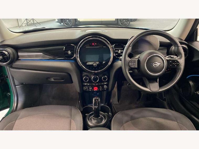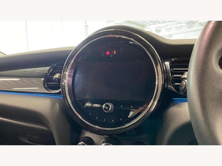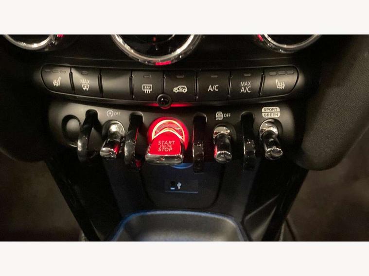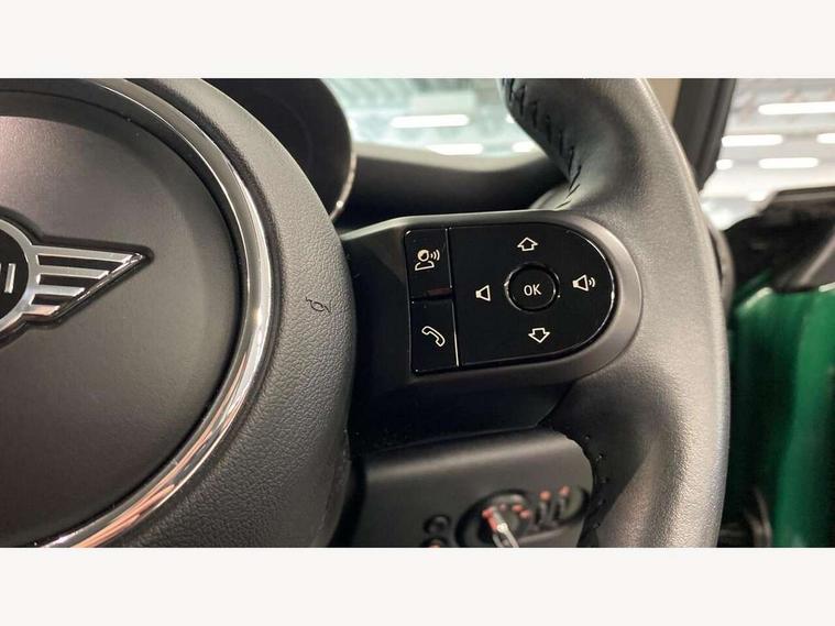 Apple CarPlay, Automatic start/stop function with brake energy recuperation, Compatible mobile phone bluetooth with audio streaming, Cruise control with brake assist, Electro-mechanical speed dependant steering assistance, Flexible car sharing preparation, Instrument cluster, Mini E-call, MINI TeleServices, On board computer, Service interval indicator, Double Vanos system, Fully variable valve control, High precision injection, Performance Control, Steptronic transmission with double clutch, 8.8" touchscreen with LED ring, FM tuner and DAB digital radio, 3rd brake light, Automatic headlight activation switch, Body colour fuel filler cap, Chrome border high gloss black slats radiator grille, Dynamic brake lights, Electric front windows, Exhaust tailpipe on left with chrome finisher, Heated rear window, Heated windscreen washer jets, LED headlight with closed ring and daytime driving lights, Metal door sill strips with MINI imprint, Model logo Cooper on right of tailgate, Rain sensor window wipers, Rear fog lights, Rear LED lights with union jack design, Rear window wiper, Side scuttle panel with integrated indicator, Sun/heat protection glass, White indicator lenses, 12V Accessory socket in centre console, 2 seat bench in 2nd row, 4 lashing eyes in luggage compartment, 60/40 split folding rear seat, Ambient lighting, Carbon black colour line - Knee roll and door armrest, Chrome interior highlights, Cupholders, Front and rear head restraints, Front and rear isofix with front passenger airbag deactivation, Front floor mats in velour, Glove compartment, Height and length steering column adjustment, Interior lighting with 12 different colours across the dashboard, underneath door bezel with illuminated laser-engraved design on central display, Leatherette gearshift lever and handbrake gaiters, LED reading lights, vanity mirror lights, front foot well light and spotlight on front seats, Manual air conditioning, Mechanical seat adjustment - forward/back & backrest for front seats and driver seat height adjust, Multifunction steering wheel, Passenger seat height adjuster, Satellite grey headlining including grab handles and clothes hooks, Single front passenger seat, Sport leather steering wheel with speed limiter and audio/communication controls, Storage compartments in doors, Sunvisors with vanity mirrors, 3 point seatbelts on all four seats, 6 Airbags - front, side, head and seat belt tensioners, Anti-lock braking system (ABS), DSC - Dynamic Stability Control, Front and rear disc brakes, Single tone fanfare horn, Tyre pressure monitoring system, Alarm system with tilt sensor, monitoring doors, bonnet interior and tailgate, Electronic vehicle immobiliser, Start/stop toggle with keyless go, Piano black interior trim, Tool kit, Tyre repair kit,