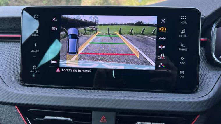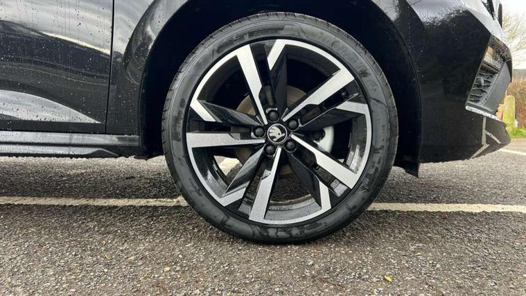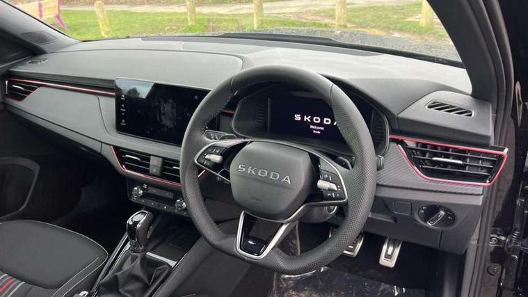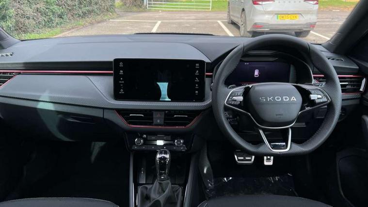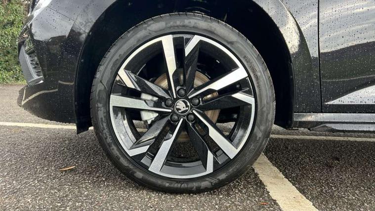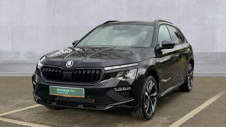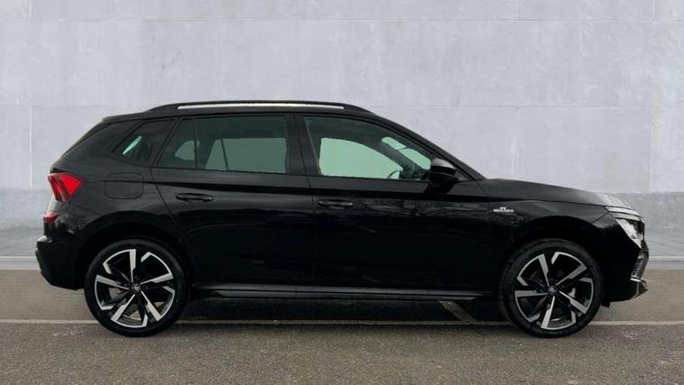 Advanced driver attention and drowsiness monitor, Bluetooth system, E-call, Front assist system, PAS, Rear parking sensors, Rear view camera, Service indicator, Speed limiter, Traffic sign recognition, Virtual cockpit with 10.25" display, Voice control system, Wireless smartlink, 4 USB C ports, 8 Speakers, 9.2" Skoda navigation display, DAB Digital radio, Auto dimming rear view mirror, Automatic headlight control with coming home and leaving home feature, Black radiator grille, Black rear diffuser, Black roof spoiler, Body colour bumpers, Body colour door handles, Boot lettering in black, Extended tailgate glass, Fixed panoramic sunroof with black roof rails, Front and rear electric windows, Heated rear window, LED daytime running lights, LED high beam, LED low beam, LED third brake light, Light sensors, Monte carlo plaque, Privacy glass, Rear side wing doors, Rear wiper, Ticket holder inside windscreen, 12V socket in luggage compartment, 3 seat bench in 2nd row, Aluminium pedals, Ambient lighting in white/red, Art leather carbon decor inserts, Art leather carbon door inserts, Black roof lining, Cargo elements, Chrome inner door handles, Driver and passenger sun visors with vanity mirror, Dual zone climate control, Front and rear roof lights, Front centre armrest, Front head restraints, Glove compartment with illumination, Height adjustable driver seat, Height adjustable front passenger seat, Ice scraper, Inner circulation control with pollen filter, ISOFIX on front passenger seat, Isofix preparation for back seats, Leather gearknob and handbrake lever, Manual lumbar support for front seats, Monte Carlo cloth upholstery, Net package and top tether hooks in boot space, Net under rear shelf, Pocket on the back of both front seats include mobile phone pockets, Rake/reach adjustable steering wheel, Reading lights, Rear centre armrests, Red hotstamping, Single front passenger seat, Sports seats, Textile floor mats, Third rear headrest, Top tether for front passenger seat, Umbrella in driver's door, Light and view plus package - Kamiq, 3x3 point rear seatbelts, Airbags - driver and front passenger, Disc brakes, ESP, Extended and predictive pedestrian/cyclist protection, Front passenger airbag deactivation switch, Front side airbags with curtain airbags, Hill hold control, Manual leather parking brake, Manual rear child locks, One tone horn, Seatbelt reminder for driver an co-driver, Traction control, Tyre pressure monitor, Anti-theft alarm system with interior monitoring, backup horn, towing protection and remote central locking with SAFE system, Anti-theft wheel bolts, Electronic engine immobilizer, 18" Ursa black diamond cut alloy wheels,