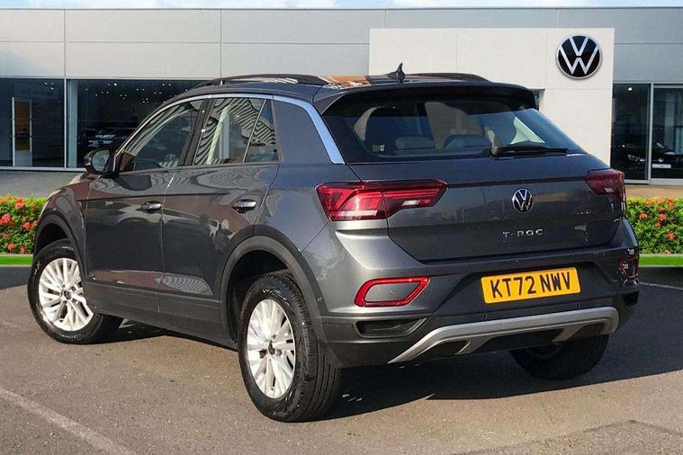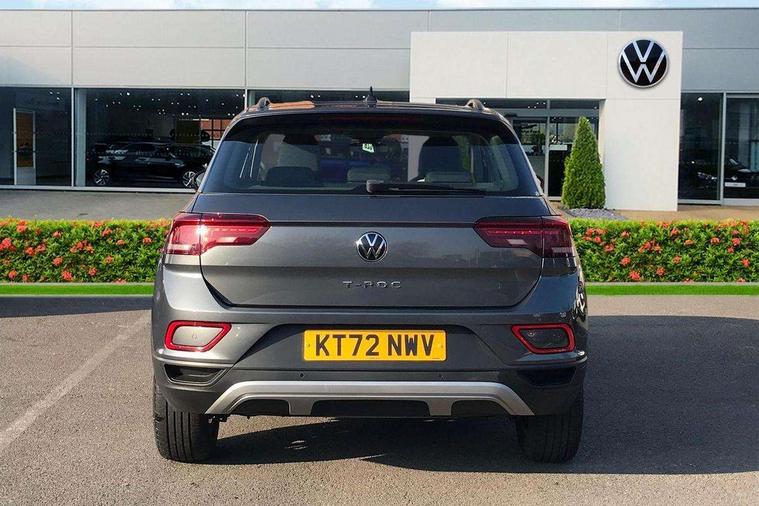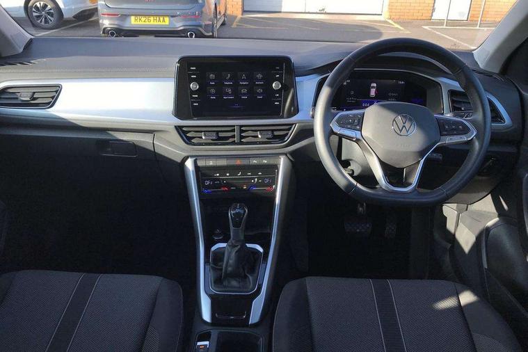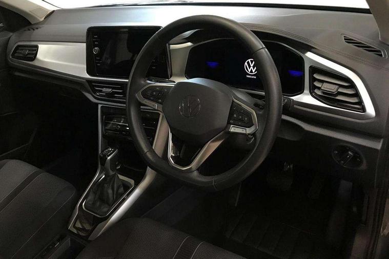 Bluetooth mobile phone interface, Driver alert system with fatigue detection, Driver tips and journey analysis, Emergency call service, Lane keeping system Lane Assist, Modified key software - reduce switch off time for key status change to Long no motion, Online services, Park assist including front and rear parking sensors, Power assisted speed sensitive steering, Service interval indicator, Tailgate/trunk lid release from outside, Think blue trainer driver tips and journey analysis, Warning sound and light for front seatbelts unfastened, Wireless app connect, Battery regeneration during braking, Front shock absorption, Rear shock absorption chassis with increased ride height, Start/stop function with battery regeneration, DAB Digital radio, Diversity antenna for FM reception, Front and rear 6 speakers, Music playback - MP3, WMA and AAC files, Premium USB cable in choice of either Apple or Android smartphone compatibility, SD card slot, Simultaneous pairing of 2 compatible mobile devices, Title and cover art display, We Connect and We Connect Plus functionality, 3rd brake light, Auto dimming interior rear view mirror, Automatic hazard lights activation under emergency braking, Automatic headlight control with LED separate daytime running lights with coming/leaving home function, Black roof rails, Body coloured bumpers and radiator grille with chrome trim and front fog lamps with chrome bezel, Body coloured exterior mirror housings and door handles, Extended roof spoiler, Exterior mirrors aspherical on driver side, convex on front passenger side, External USB type C socket and charging sockets, Front windscreen wiper with intermittent wipe and 4 position delay, Heated rear window, LED Headlights, LED rear combination lamps, LED rear number plate lights, LED tail lamp rear comination lamps, Power windows with comfort operation and circuit breaker, Rain sensor, Rear exhaust tailpipe, Rear fog light on one side and reversing lights on both sides, Rear side wing doors, Rear wash/wipe with intermittent wipe setting, Remote electrically foldable door mirrors, puddle lights and reverse activated passenger's door mirror, 12V power socket in centre console, 3 rear head restraints, 3 seat bench in 2nd row, 4 load lashing points in luggage compartment, Air care climatronic air conditoning system with active combination filter and 2-zone temperature control, Ambient lighting with mirror logo projection, Cloth upholstery, Door and side trim panel in cloth, Drawer under drivers seat, Driver/front passenger seat height adjustment, Front centre armrest, Front comfort sports seats, Front cupholders x 2, Front reading light, Instrument lighting, white adjustable panel illumination, Interior light delay, Isofix child seat preparation, Leather gearshift handle, Load-through provision with cup holder when folded down ('Unsplit rear seat bench, split folding backrest, with centre armrest), Luggage compartment lighting, Lumbar support for driver's and front passengers seat, Non-folding front passenger seat backrest, Single front passenger seat, Storage compartment in left and right luggage area, Storage compartment in rear doors, Storage compartments in driver and front passenger doors, Sunvisors with illuminated vanity mirrors, Variable boot floor, height adjustable and removable, Driver assistance pack without proactive passenger protection - T-Roc, 3 point height adj front seatbelts + pretensioners, 3 point seatbelts in outer rear with ECE label, ABS, Child locks on rear doors, Driver and front passenger airbag with front passenger airbag deactivation, Driver and front passenger safety-optimised head restraints, Drivers seatbelt reminder, Electronic parking brake, Electronic Stability Control (ESC) inc EDL (Electronic Differential Lock) and ASR (Traction Control), Front and rear passengers curtain airbag system including front side airbags, Front assist with city emergency braking and pedestrian monitoring, Front disc brakes, Front seat side impact airbags, Hill start assist, Predictive pedestrian protection, Rear disc brakes, Single tone horn, Tyre pressure loss indicator, Volkswagen roadside assistance, Alarm with interior protection, Anti-theft alarm system with interior monitoring, backup horn, and towing protection, Remote central locking with SAFELOCK, radio remote control with 2 remote control folding keys, Pewter matt decorative inserts for intrument panel, centre console and door panels at the front, Trims for alloy wheels,