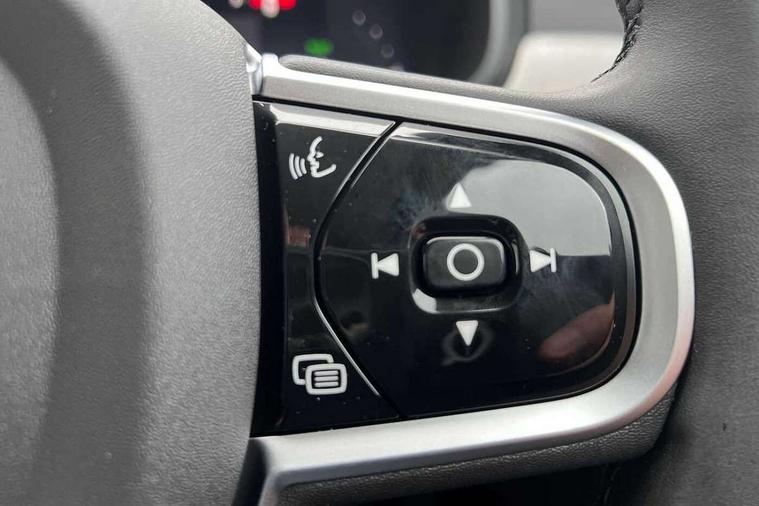 12.3" Progressive Driver Display, 360 degree surround view parking camera with side proximity sensors, 9" centre console touch screen, Adjustable steering wheel force, Apple CarPlay and Android Auto, Bluetooth handsfree system, Drive mode settings, Driver alert control with lane keeping aid, Driver assistance (pilot assist and adaptive cruise control), Driver awareness - Blind spot system + steer assist, cross traffic alert with autobrake, rear collision warning and mitigation, E-call, Emergency assist, Front and rear park assist, Google automotive services - Enabled entertainment apps, navigation with google maps, voice recognition with google assistant, Handsfree bootlid opening/closing, Intelligent speed assistance, Oncoming Lane Mitigation, Power operated tailgate/boot lid, Speed sensitive steering, Volvo on call app, 6m 3 phase 16amp Type 2 / mode 3 charge cable, 8 speed automatic transmission with start/stop + manual change functions, Dynamic chassis, Electric rear axle drive, Lithium-Ion Battery 18.8kWh, On board charger - 6.4 kW 2 phase/3.7kW single phase, Recharging port located in nearside front wing, DAB Radio (Digital Audio Broadcasting), Low speed exterior sound speaker, Premium Sound by Harman Kardon, dirac unison, dolby pro logic II surround sound, 13 speakers/600W output and fresh air subwoofer, Steering wheel remote infotainment controls, Adaptive brake lights with high level LED brake lights, Auto dimming interior + exterior mirrors, Automatic headlight levelling system, Automatic LED Headlights + Active high beam incorporating daytime running lights, Front and rear power windows, Heated windscreen, High gloss black door mirrors and window surround, High gloss black front and rear bumper decoratives, High gloss black mesh front grille and surround, Home safe and approach lighting, Integrated roof rails in high gloss black, Power heated autofolding door mirrors, Puddle lights, Rain sensor with automatic windscreen wiper activation, Rear LED lights with sequential indicators, Rear side wing doors, Rear wiper, Roof antenna, Roof spoiler, Variable front intermittent wipers, Visible VIN plate, 2 zone electronic climate control with Clean zone air quality system + pollen filter, 3 seat bench in 2nd row, 3 Spoke tailored steering wheel with chrome trim, Air purifier particulate matter (PM) 2.5 filter, Ambient door and instrument panel lighting, B Pillar ventilation, Boot lid/tailgate illumination, Bright metal luggage scuff plate, Cargo divider with grocery bag holder, Centre console cupholder and storage, Charcoal carpets and floor mats, Driver and front passenger seat power height adjustment, Extended front seat cushions, Front 12V socket tunnel console and cargo area, Front and rear cabin courtesy light, Front and rear door pocket lights, Front and rear footwell and side step illumination, Front and rear reading lights and centre armrest Storage Illumination, Front headrests, Glovebox compartment with illumination, Heated front seats, Heated rear seats outer positions, Heated steering wheel, Height/reach adjustable steering column, Illuminated luggage compartment, Illuminated recharge aluminium tread plates, Illuminated vanity mirrors + ticket holder, Illumination front tunnel storage, Inner door release handle illumination, Integrated sun curtains in rear doors, ISOFIX attachment on outer rear seats, Leather upholstery, Load cover, Load protection net, Luggage compartment load hooks, Memory function for drivers seat and exterior mirrors, Multi directional lumbar support, Power folding rear headrests, Rear armrest with cupholder, Single front passenger seat, Underfloor cargo storage, Versatile split folding rear seat - 60/40, 3x3 point rear seatbelts, Active bonnet, City safety with steering support with Pedestrian + cyclist + front collision warning with full auto brake and rear auto brake, Driver and front passenger airbags, Drivers knee airbag, Front seats SIPS airbags, Hill start assist, IC (Inflatable Curtains) - Full Length, Passenger airbag cut-off switch, Power child locks on rear doors, Power parking brake with auto hold function, Road sign information display, Run off Road Mitigation, Run off Road Protection, Seatbelt reminder and pretensioners for all seats, SIPS (Side Impact Protection System), Slippery road and hazard light alert, Stability and Traction Control with Spin control, Engine Drag Control and Corner Traction Control, Tyre pressure monitoring system, Vehicle deceleration control with Anti-lock Brake System, Electronic Brake Distribution and Emergency Brake Assist, Warning triangle and first aid kit, WHIPS whiplash protection system - front, 2x Key integrated remote control central locking + fuel flap with deadlocking system and auto open/close power windows, Anti-theft alarm including immobiliser/volume sensor + level sensor, Care key with user defined top speed, Keyless drive includes keyless entry and keyless start, Locking wheel nuts, Private locking for tailgate, Tailored Instrument Panel and Door Tops with Contrast Stitching, 19'' 8 spoke diamond cut black alloy wheels, Tyre sealant kit and compressor,