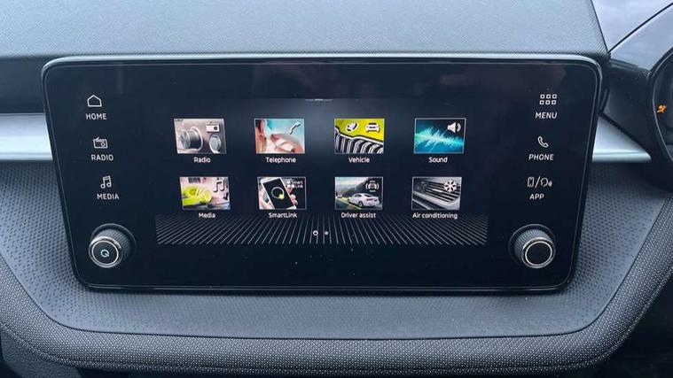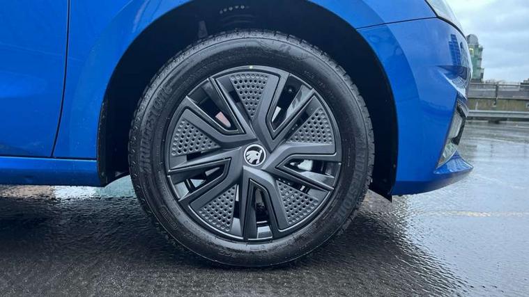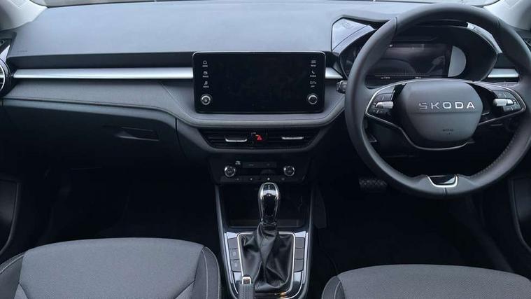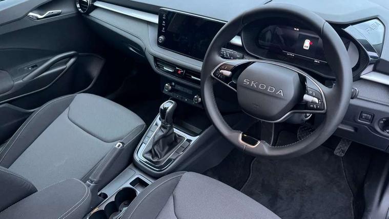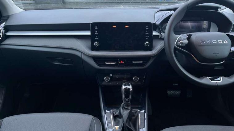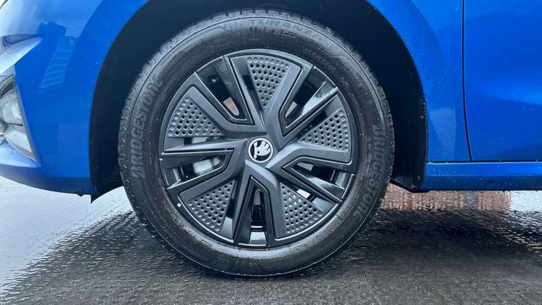 Advanced driver attention and drowsiness monitor, Bluetooth connection, Driver alert system, Electromechanical power steering, Exterior temperature gauge, Service interval indicator, Traffic sign recognition, Virtual cockpit with 10.25" colour display, Wireless SmartLink for Apple CarPlay and Android Auto, 6 Speakers (4 in front and 2 in rear), Auxiliary socket for external MP3 player, DAB digital radio reception, Auto dimming rear view mirror, Body coloured bumpers, Door mirror integrated indicators, Front and rear electric windows, Front window wiper intermittent control, Headlight range control - Automatic, Ice scraper in fuel cap, LED 3rd brake light, LED daytime running lights with coming and leaving home feature, LED rear lights, Privacy glass, Rear LED fog light, Rear side wing doors, Rear window wiper with washing nozzles, Roof mounted spoiler, SKODA tailgate lettering in chrome, Unique dark chrome design logo on alloy wheels, 2 reading lights in front and 2 reading lights in rear, 3 rear headrests, Backrest split and folding, Central console with removable cup holder and storage box, Chrome handbrake release button, Dual zone air conditioning with climatronic electronic control, Fabric upholstery, Front centre armrest, Gearshift knob/handle in leather, Grain satin black interior door handles, Hand brake lever handle in leather, Height adjustable front headrests, Height adjustable front seats, Height adjustable steering wheel, ISOFIX and TopTether anchorage points to the outer rear seats, ISOFIX and TopTether on the front passenger seat, Luggage compartment lighting, Manually adjustable lumbar support in front seats, Pollen filter, Rear seat bench unsplit, Single front passenger seat, Skoda lettering on steering wheel, Storm grey headlining, Sun visors with mirror and airbag label on passenger side, Textile floor mats, Ticket holder, Ambient lighting pack - Fabia Hatchback, 3-point height adjustable front seats belts with pretensioner and force limiter, Automatic warning lights in case of crash, Driver and passengers airbag with switch off function, e-Call+, ESC including ABS, MSR, ASR, EDS, HBA and XDS, Front and rear seat belt warning, FRONT ASSIST (AEB City and AEB Inter Urban), Front side airbags, Head airbags, Hill hold control, One tone horn, Pedestrian protection, Three rear 3-points safety seat belts with pretensioner and force limiter including stop function for outer rear seat belts, Tyre pressure monitoring system, Anti-theft alarm system including immobiliser, interior monitoring, backup horn, and towing protection, Central locking with radio remote control, interior controls, SAFE function and 2 foldable keys, Colour Edition air vents, Grain satin black central console cover, Metallic grey upper decorative trim, Satin black door and side trim panel in front, Textile Kota grey lower decorative inserts, Anti-theft wheel bolts protection, Super-low rolling resistance tyres,