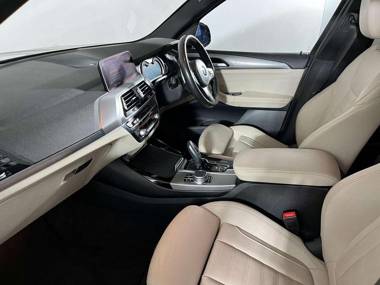 Active Guard incl speed limiting and lane departure functions with auto steering, and front collision warning with brake intervention, Attentiveness assist, Automatic tailgate operation, BMW Live Cockpit Professional sat nav system including 10.25" high resolution display and Intelligent Voice Assistant, BMW Online services, BMW Teleservices, Brake pad wear indicator in front and rear, Check Control warning system for monitoring of lights and door/luggage compartment open warning, Control display - 6.5" colour display screen, Electric Power Steering (EPS) with Servotronic, Front/rear Parking distance control, iDrive Controller with 8 favourite buttons, Lights on warning by audio warning signal when ignition is switched off, Navigation system - BMW Professional multimedia with Hard disc drive (HDD) and 10.25" touch display, Oil sensor for level and grade, warning by check control system, On board computer - average speed+fuel consumption, service interval, clock/date, odometer/trip meter, outside temperature display and ice warning, Optimum shift indicator, Personal Profile - automatic lock when driving away selectable, Real time traffic information, Semi digital instrument cluster, Stop/start system, Automatic transmission with gearshift paddles, Diesel particulate filter, Incorrect fuelling protection, Larger capacity fuel tank, Multi-link rear suspension, Performance Control, Auxiliary socket for external MP3 player, BMW professional radio/CD/MP3, DAB Digital radio, Acoustic glazing, Black finish on B pillars, Body colour door handles, Body colour electric adjust heated aspherical door mirrors, Body colour roof mouldings, Body coloured bumpers, Chrome kidney grille with high gloss black vertical slats, Direction indicator, side repeaters, integrated in exterior mirrors, Dual chrome exhaust, Dynamic brake lights, Exterior mirrors - electrically folding with anti-dazzle, Fingertip control / anti-trap function on electric window, Follow me home headlights, Front and rear bumper system with replaceable deformation elements, Front and rear electric windows, Green tinted heat insulating glass, Heated windscreen washer jets, Height adjustable headlamps, High gloss black door sill finishers, High gloss black shadow line roof rails, High gloss shadowline exterior trim in decorative moulding side frame/recess cover/guide rail/B, C pillars/mirror frame and triangle with mirror base, High level 3rd brake light incorporating LED Technology, Interior rear view electrochromatic mirror with automatic anti dazzle function, LED front fog lights, LED tail lights, Lightweight engineering, M aerodynamic bodystyling, Model designation, Rain sensor including auto headlights activation, Rear wiper, Shark fin antenna, Visible VIN plate, Welcome lighting, Windscreen wipers with adjustable interval, 12V socket in centre console and luggage area, 3 rear headrests, 3 zone automatic air conditioning, 4 lashing points to secure luggage, Ambient lighting, Anthracite headlining, Anthracite Velour floor mats, Driver/passenger sunvisors with ticket holders + illuminated vanity mirrors, Foldable boot floor with storage compartment, Four grab handles integrated in roof lining, Front and rear bottle holders integrated into door trim storage compartments, Front and rear side armrests integrated into door trim, Front centre armrest with storage compartment, Front footwell lights, Front sports seats, Front/rear courtesy lights with soft on/off dimming, Front/rear reading lights, Height adjustable front/rear head restraints, Isofix rear child seat preparation, Leather gear knob, Luggage area underfloor compartment, Luggage compartment lighting, M Sport multifunction leather steering wheel, Parcel shelf removeable and storable under boot floor, Reach and rake adjustable steering column, Rear centre armrest with 2 cupholders, Rear seat centre armrest with two cupholders, Removable / retractable luggage cover, Slope adjustable rear seats, Storage compartment in rear centre console and front/rear door trims, Through loading system with 40/20/40 split folding rear seat, Toolkit located in luggage compartment, Two front cupholders with removable oddments tray/lid, Vernasca leather upholstery, Connected pack professional - X3, ABS/EBD, ADB - Automatic Differential Brake, Automatic Stability Control (ASC), Battery safety cut-off, BMW emergency call, Brake assist, Brake assist function, Brake drying, Brake energy regeneration, Braking pre-tensioning, Child locks on rear doors, Cornering brake control (CBC), Crash Sensor - activation of central locking release, hazard warning light and interior lighting, Deactivation of fuel pump in the event of a crash, Driver and front passenger front and side airbags with passenger deactivation and ITS front and rear head airbags, DSC+, Dynamic brake control, Dynamic Traction Control - DTC, Electromechanical parking brake, Front seat belts warning, Hill descent control, Hill start assist, Seatbelt security check for front seats, Side impact protection, Three point seatbelts to all seats with front and outer rear pyrotechnic belt tensioners and seat belt force limiters, Two tone horn, Tyre pressure monitoring system, Ventilated front and rear disc brakes, Warning triangle and first aid kit, Central locking switch for all doors, fuel filler cap and luggage compartment, Electronic engine immobiliser, Locking wheel nuts, Remote control including two integrated key - one button for open/close all lockable content, windows and separate button for open luggage compartment, Remote control Thatcham category 1 alarm, Start/stop button with Comfort Go keyless engine start and auto Start/stop deactivation button, Low rolling resistance tyres,