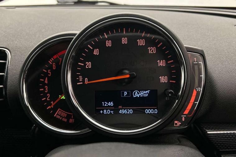 Brake pad wear indicator warning light, DTC - Dynamic traction control, Exterior temperature gauge, Intelligent emergency call, Mini Ecall, MINI TeleServices, Navigation system, On board computer, Personal Profile, Service interval indicator, Servotronic speed sensitive power steering, Electronic differential lock, Performance Control, Auxiliary input socket, DAB digital radio module, MINI Connected, MP3 compatible radio/single CD player, Radio visual boost, Anti dazzle rear view mirror, Body colour scoop integrated into engine- compartment lid, Body coloured bumpers, Chrome door handles, Chrome headlight surround, Electric front windows + one touch + anti-pinch, Electrically adjustable door mirrors, Follow me home headlights, Front intermittent wipers, Heated door mirrors/heated windscreen washers, Heated rear window with timer, Honeycomb radiator grille, Metal look door sill finishers, MINI ALL4 exterior styling, Rain sensor including auto headlights activation, Rear wiper, Roof spoiler, Twin chromed exhaust pipes, White indicator lights, 12V power point front, 4 lashing points to secure luggage, 60/40 split folding rear seat, Centre console storage box, Chrome interior door handles, Driver/passenger sunvisors, Easy entry seats, Front and rear cupholders, Front and rear Isofix child seat preparation, Front and rear velour floor mats, Front centre armrest with storage compartment, Front headrests, Front interior light, Front passenger grab handle, Front seat backrest storage nets, Heater with recirculation function, Height/reach adjust steering wheel, Luggage compartment lighting, Multifunction steering wheel, Outer passenger rear headrests, Rear armrest with storage, Rear grab handles, Sport front seats, Storage compartments in doors, Toolkit in luggage compartment, Interior lights pack - Mini Clubman, 3 point automatic seatbelts, 3 point seatbelts on all rear seats, ABS, Automatic Stability Control (ASC), Cornering brake control (CBC), Crash Sensor - activates hazard/interior lighting + unlocks doors, Driver and passenger airbags, Driver and passenger side airbags, DSC - Dynamic Stability Control, Electronic brake force distribution, Electronic parking brake, Front curtain airbags, Front passenger airbag deactivation, Fuel cut off safety device, Hill start assist, Pyrotechnically pre-tensioned front seatbelts, Traction control, Twin horns, Tyre pressure warning, Drive away door locking, Keyless start, Locking wheel bolts, RF remote control central locking, Second remote key, Thatcham category 1 alarm + immobiliser,