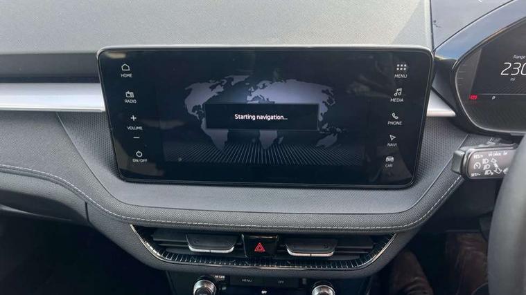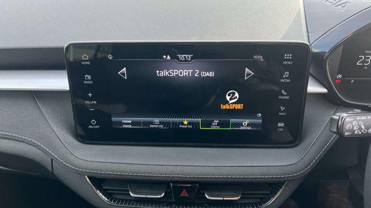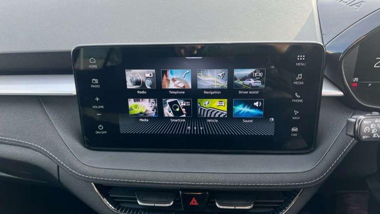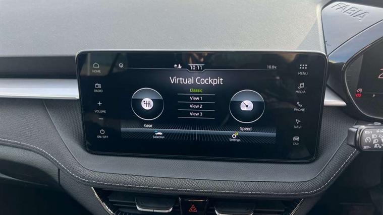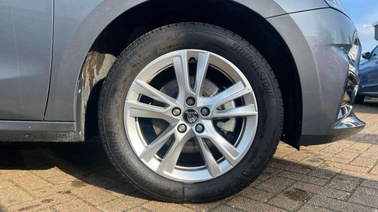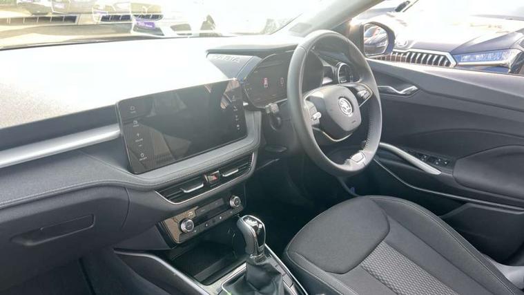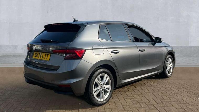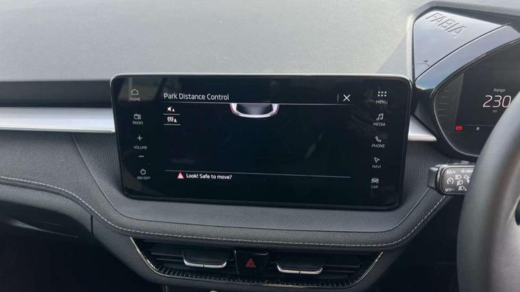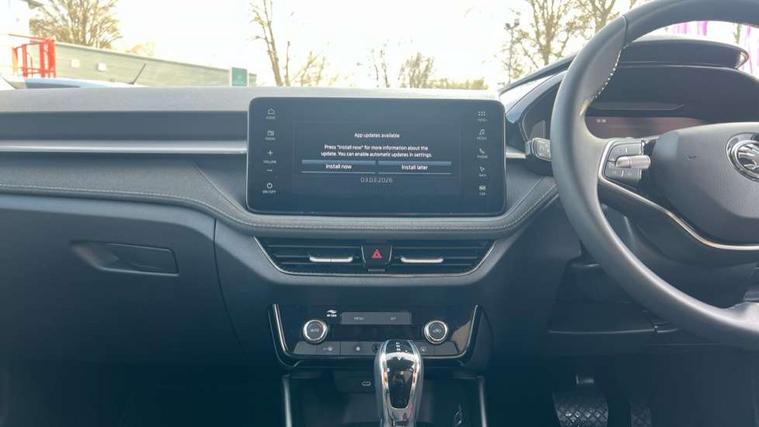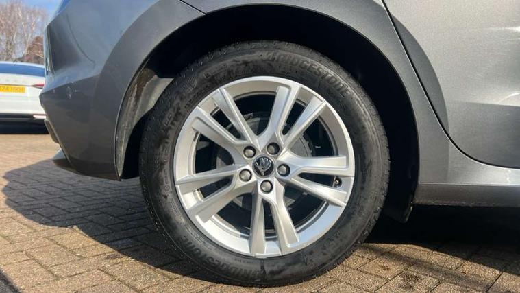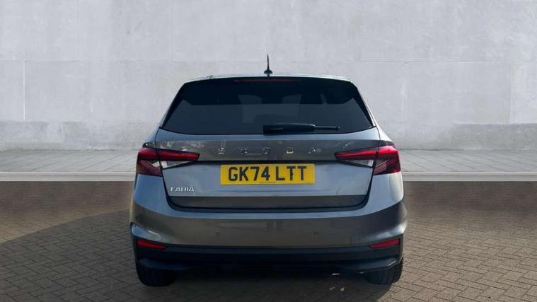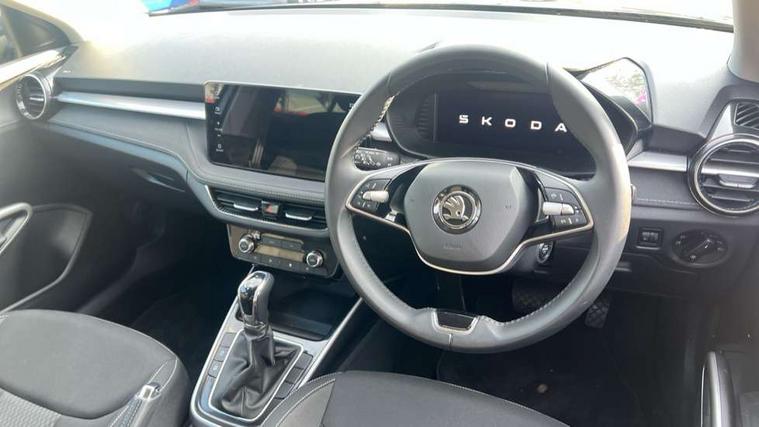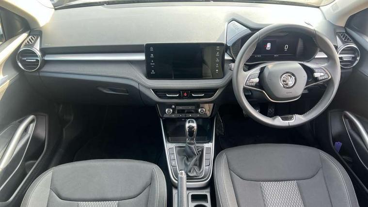 Advanced driver attention and drowsiness monitor, Bluetooth connection, Electromechanical power steering, Exterior temperature gauge, Service interval indicator, Traffic sign recognition, Virtual cockpit with 10.25" colour display, Wireless SmartLink for Apple CarPlay and Android Auto, 6 Speakers (4 in front and 2 in rear), 9.2" colour display skoda navigation system with voice control and web radio, Auxiliary socket for external MP3 player, DAB digital radio reception, Auto dimming rear view mirror, Body colour door mirrors, Body coloured bumpers, Chrome window surround, Door mirror integrated indicators, Front and rear electric windows, Front window wiper intermittent control, Headlight range control - Automatic, Ice scraper in fuel cap, LED daytime running lights with coming and leaving home feature, LED rear lights, Privacy glass, Rear LED fog light, Rear side wing doors, Rear window wiper with washing nozzles, Roof mounted spoiler, SKODA tailgate lettering in chrome, Third brake light, 2 reading lights in front and 2 reading lights in rear, 3 rear headrests, Backrest split and folding, Central console with removable cup holder and storage box, Chrome handbrake release button, Comfort seats, Door sills with fabia badging, Dual zone air conditioning with climatronic electronic control, Fabric upholstery, Front centre armrest, Gearshift knob/handle in leather, Hand brake lever handle in leather, Height adjustable front headrests, Height adjustable front seats, Height adjustable steering wheel, ISOFIX and TopTether anchorage points to the outer rear seats, ISOFIX and TopTether on the front passenger seat, Luggage compartment lighting, Manually adjustable lumbar support in front seats, Metallic grey interior door handles, Pollen filter, Rear seat bench unsplit, Single front passenger seat, Storm grey headlining, Sun visors with mirror and airbag label on passenger side, Textile floor mats, Ticket holder, Umbrella in drivers door, 3-point height adjustable front seats belts with pretensioner and force limiter, Automatic warning lights in case of crash, Driver and passengers airbag with switch off function, e-Call+, ESC including ABS, MSR, ASR, EDS, HBA and XDS, Front and rear seat belt warning, FRONT ASSIST (AEB City and AEB Inter Urban), Front side airbags, Head airbags, Hill hold control, One tone horn, Pedestrian protection, Three rear 3-points safety seat belts with pretensioner and force limiter including stop function for outer rear seat belts, Tyre pressure monitoring system, Anti-theft alarm system including immobiliser, interior monitoring, backup horn, and towing protection, Central locking with radio remote control, interior controls, SAFE function and 2 foldable keys, Chrome edged air vents, Metallic grey central console cover, Metallic grey upper decorative trim, Satin black door and side trim panel in front, Textile microsuede grey lower decorative trim with art grey stitching, Anti-theft wheel bolts protection, Super-low rolling resistance tyres,