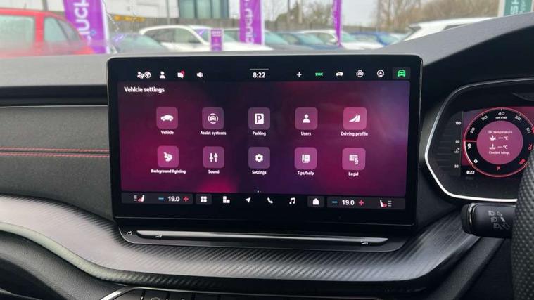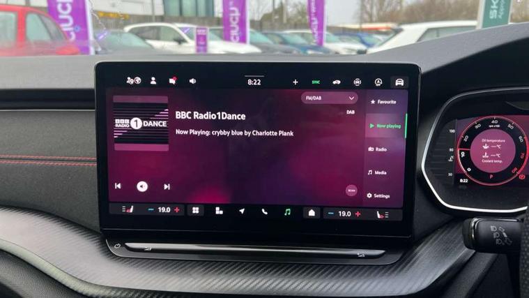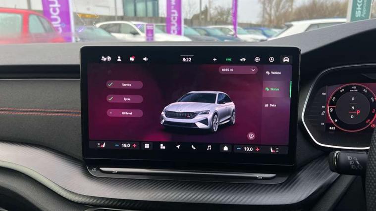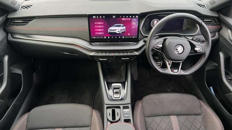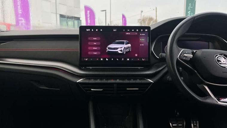 1x USB Typc C port in rear view mirror, 4x USB Type C ports - 2x in front centre console and 2x in rear (45W), Blind spot detection, Drive mode selection, Driver fatigue sensor, eCall emergency system, Electrically operated boot with virtual pedal, Front and rear parking sensors with manoeuvre assist, Front assist system, Predictive adaptive cruise control with traffic jam assist, Progressive dynamic steering, Traffic sign recognition, Turn Assist, Virtual Cockpit - 10.25" digital display, Voice control system, Wireless charging (15W) with cooling function, Wireless SmartLink for Apple CarPlay and Android Auto, Electronically controlled limited slip differential, vRS suspension, 13" touchscreen display with navigation, DAB Digital radio, Aero front windscreen wipers with intermittent function, Auto dimming rear view mirror, Black sport exhaust pipes, Body colour bumpers, Body colour door handles, Electric front and rear windows, Exterior gloss black sports styling including front grille, window surrounds, door mirrors and badging, Gloss black diffuser, Gloss black roof rails, Gloss black spoiler, Heated rear windscreen, High beam control, High level third brake light, Ice scraper in fuel cap, LED daytime running lights, Logo projection in front doors, Rain and light sensors, Rear fog light on one side, Rear privacy glass, Rear side wing doors, Rear window wiper, Unique vRS bumpers and exterior styling, 12 volt socket in boot, 3 rear headrests, 3 seat bench in 2nd row, 4 foldable roof handles, Aluminium pedals, Front head restraints, Front sport seats, Heated front seats, Illuminated glovebox, Interior door handles in dark chrome, Jumbo Box storage, Luggage compartment lighting x2 lights, Mechanical rear seat release from boot, Single front passenger seat, Steering wheel in black leather with black stitching, Storage compartments in left and right of boot, Sun visors with mirrors, Sunglasses storage, Ticket holder, Umbrella in door panel, Unsplit rear bench seat, split folding backrest with centre armrest with cupholder, Waste bin in door panel, Comfort package - Octavia Estate, Family package - Octavia, Light and view package plus - Octavia, vRS Design Selection pack - Octavia, 3x3 point rear seat belts, Alarm with interior monitoring, tilt sensor and back up horn, Curtain airbags and front side airbags, Driver and front passenger airbags, Drivers knee airbag, Electronic parking brake, ESC including ABS, EBV, MSR, ASR, EDS, HBA, DSR, Front central airbag, Hill hold assist, ISOFIX on front passenger seat and outer rear seats, Passenger airbag deactivate switch, Red brake calipers, Three point seat belts in front and rear, Two tone horn, Tyre pressure monitor, Visual and acoustic seat belt reminder, Warning reflectors in front door, Anti-theft wheel bolts, Keyless start/stop, Remote central locking, Gloss black air vent surrounds, 19" Elias anthracite alloy wheels,