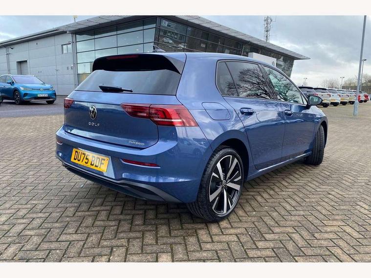 Activated carbon canister, Adaptive cruise control (ACC), Advanced driver attention and drowsiness monitor, Dynamic road sign display, E-Sim card for online connectivity, eCall emergency call system, Multi-color Digital cockpit pro, selection of different info profile possible, Multifunction front facing camera for distance control, Navigation system, Oncoming vehicle braking when turning including swerve support, Speed limiter, Speedo, rev counter, electronic odometer, trip, service interval display, exterior temperature and fuel gauge, Traffic jam assist, Voice enhancer and voice control, Warning signal and warning light for front and rear seatbelts not fastened, We connect plus preparation, We connect preparation, Wireless app connect, Charging cable Mode 2 Type 2 (10A), Charging cable mode 3, type 2 32 A, Electric motor (hybrid electric vehicle) total system output 200kw, unit OEK A, Hybrid propulsion system, Petrol Particulate Filter, Start-stop system with battery regeneration (recuperation - energy recovery during braking), XDS electronic differential lock for improved traction and handling, 2 USB C ports in front, 2 USB charging sockets on the centre console in the rear charging capacity upto 45W, 6 Speakers - 4 in front and 2 in rear with central speaker, Digital radio reception (DAB), Diversity antenna for FM reception, Gaming platform via car app, Infotainment system with 12.9" display, Mobile phone interface with inductive charging feature, 3rd brake light, Automatic headlamp activation with Coming home and Leaving home feature, Body colour door handles, Body colour door mirrors, Exterior mirrors convex on the left and aspherical on the right, Front and rear electric windows, Heat insulating windshield made of laminated glass, LED separate daytime running light, Rear exhaust tailpipe, Rear fog light on one side and reversing lights on both sides, Rear side wing doors, Rear tinted glass 65% light absorbing from B pillar backwards, Rear windscreen washer and wiper with interval delay, Remote electrically foldable door mirrors, puddle lights and reverse activated passenger's door mirror, Standard bumpers, Welcome light with surround lighting, 12V socket in front centre console, 12V socket in luggage compartment, 3 rear head restraints, 3 seat bench in 2nd row, Air care climatronic 3 Zone automatic climate control with rear air conditioning control panel, Chrome plated radiator grille inserts, air vent surrounds and light switch surrounds, Front + rear black carpet mats, Front centre armrest, Front head restraints, Front seat lumbar support adjuster, ISOFIX anchors for child seats on outer rear bench seats and on front passanger seat compatible for i-Size, Luggage compartment lighting, Manual height adjustable front passenger seat, Manually height adjustable driver seat, Plastic gear knob, Rear cupholder and loadthough, Single front passenger seat, Soul black instrument panel, Split folding backrest with centre armrest and unsplit rear seat bench, Standard pedal cluster, Storm grey roof lining, Sun visors with illuminated vanity mirrors, Technology park and comfort pro package - Golf Hatchback, 3 point height adj front seatbelts + pretensioners, 3 rear three point seatbelts, ABS, Autonomous emergency braking front assist with pedestrian and cyclist monitoring, Child locks on rear doors, Driver and front passenger airbag with front passenger airbag deactivation, Electronic parking brake with auto hold, ESC (Electronic Stability Control), Extended pedestrian protection measures, Hill start assist, Rear disc brakes, Two tone horn, Tyre pressure loss indicator, Volkswagen roadside assistance, Anti theft wheel bolts, Preparation for alcohol interlock, Nature cross brushed decorative inserts for dashboard and front door panels, Tool kit for tyre mobility set, Tyre mobility kit Includes 12V compressor and tyre sealant,