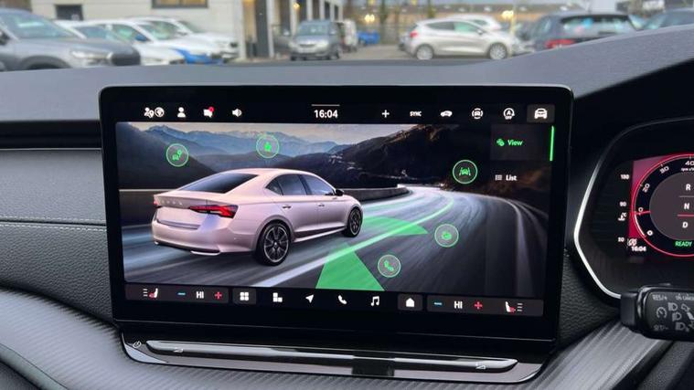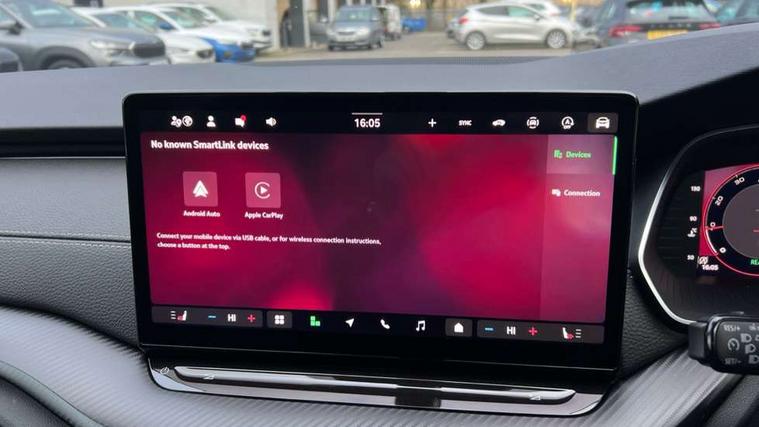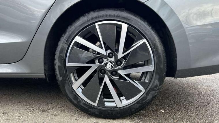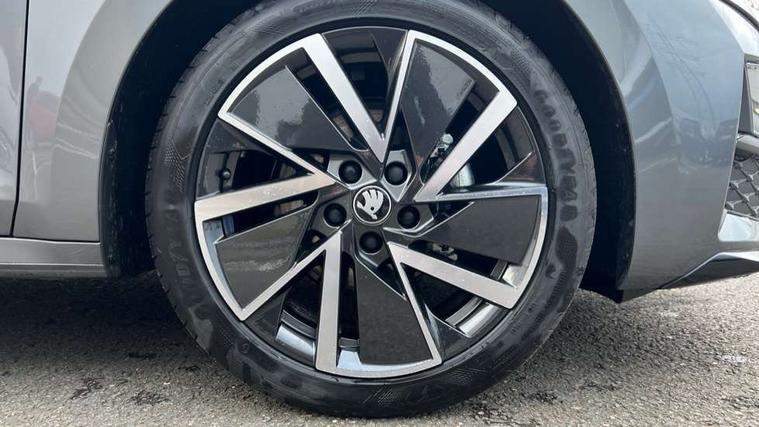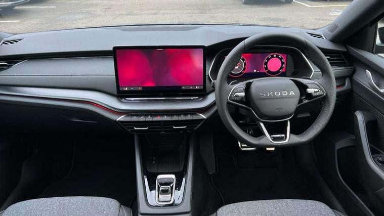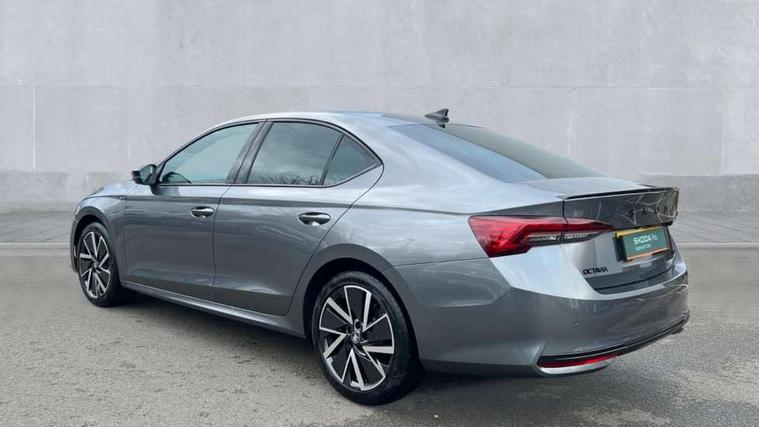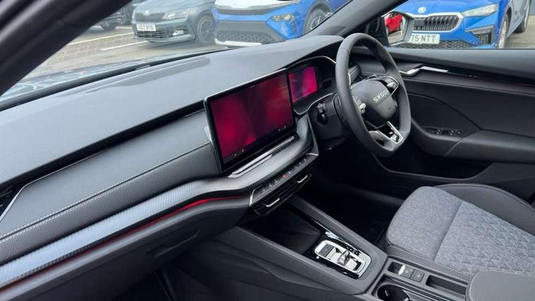 1x USB Typc C port in rear view mirror, 4x USB Type C ports - 2x in front centre console and 2x in rear (45W), Drive mode selection, Driver fatigue sensor, eCall emergency system, Front assist system, Progressive dynamic steering, Traffic sign recognition, Turn Assist, Virtual Cockpit - 10.25" digital display, Voice control system, Wireless charging (15W) with cooling function, Wireless SmartLink for Apple CarPlay and Android Auto, Sports suspension with 15mm lower, 13" touchscreen display with navigation, DAB Digital radio, Aero front windscreen wipers with intermittent function, Auto dimming rear view mirror, Body colour bumpers, Body colour door handles, Chrome strip in lower front bumper, Electric front and rear windows, Exterior gloss black sports styling including front grille, window surrounds, door mirrors and badging, Gloss black diffuser, Gloss black spoiler, Heated rear windscreen, High beam control, High level third brake light, Ice scraper in fuel cap, LED daytime running lights, Logo projection in front doors, Rain and light sensors, Rear fog light on one side and reversing lights on both sides, Rear privacy glass, Rear side wing doors, 12 volt socket in boot, 3 rear headrests, 3 seat bench in 2nd row, 4 foldable roof handles, Aluminium pedals, Boot net programme, Front head restraints, Front sport seats, Heated front seats, Illuminated glovebox, Interior door handles in dark chrome, Jumbo Box storage, Luggage compartment lighting x2 lights, Mechanical rear seat release from boot, Parcel shelf - folding, Single front passenger seat, Steering wheel in black leather with black stitching, Storage compartments in left and right of boot, Sun visors with mirrors, Sunglasses storage, Three spoke leather sports multifunction steering wheel with paddles, Ticket holder, Umbrella in door panel, Unsplit rear bench seat, split folding backrest with centre armrest with cupholder, SportLine Design Selection pack - Octavia, 3x3 point rear seat belts, Alarm with interior monitoring, tilt sensor and back up horn, Curtain airbags and front side airbags, Driver and front passenger airbags, Drivers knee airbag, Electronic parking brake, ESC including ABS, EBV, MSR, ASR, EDS, HBA, DSR, Front central airbag, Hill hold assist, ISOFIX on front passenger seat and outer rear seats, Passenger airbag deactivate switch, Three point seat belts in front and rear, Two tone horn, Tyre pressure monitor, Visual and acoustic seat belt reminder, Warning reflectors in front door, Anti-theft wheel bolts, Keyless entry and start/stop, Remote central locking, Gloss black air vent surrounds,