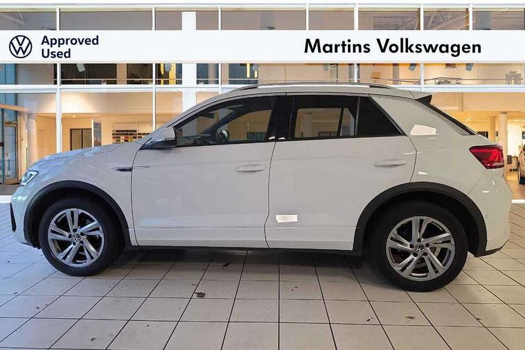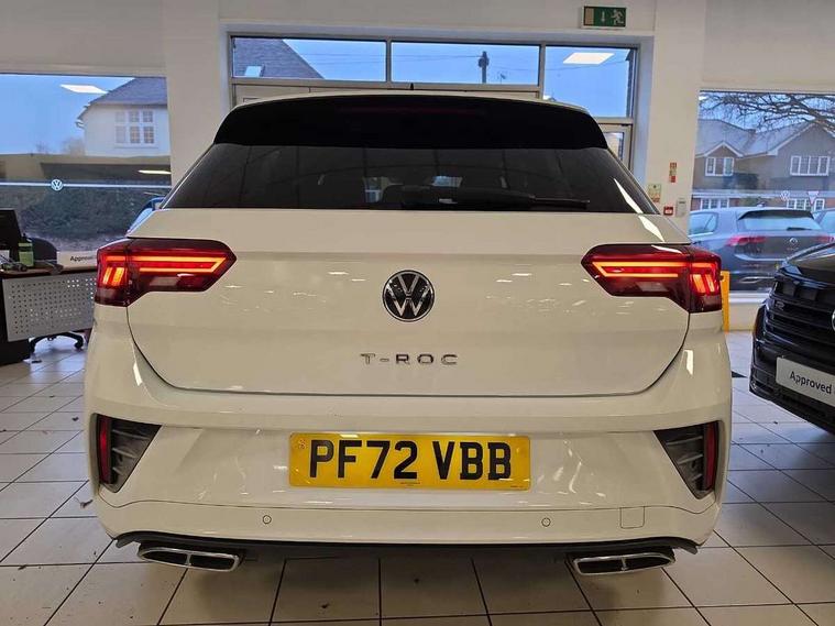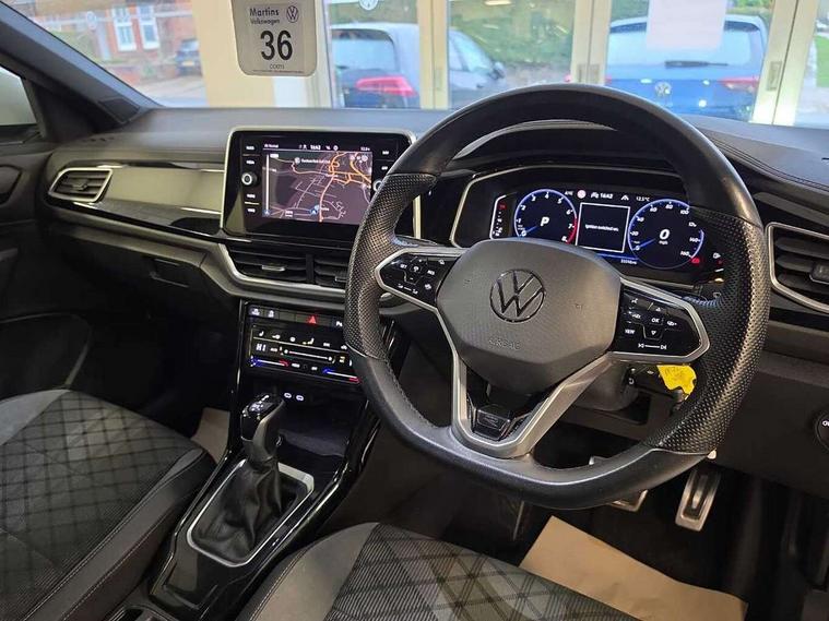 10.25" Digital cockpit pro, Bluetooth mobile phone interface, Driver alert system with fatigue detection, Driver tips and journey analysis, Emergency call service, Lane keeping system Lane Assist, Modified key software - reduce switch off time for key status change to Long no motion, Online services, Park assist including front and rear parking sensors, Service interval indicator, Tailgate/trunk lid release from outside, Think blue trainer driver tips and journey analysis, Warning sound and light for front seatbelts unfastened, Wireless app connect, Battery regeneration during braking, Start/stop function with battery regeneration, Diversity antenna for FM reception, Front and rear 6 speakers, Music playback - MP3, WMA and AAC files, Premium USB cable in choice of either Apple or Android smartphone compatibility, SD card slot, Simultaneous pairing of 2 compatible mobile devices, Title and cover art display, We Connect and We Connect Plus functionality, 3rd brake light, Auto dimming interior rear view mirror, Automatic hazard lights activation under emergency braking, Automatic headlight control with LED separate daytime running lights with coming/leaving home function, Extended roof spoiler, Exterior mirrors aspherical on driver side, convex on front passenger side, External USB type C socket and charging sockets, Front windscreen wiper with intermittent wipe and 4 position delay, Heated rear window, LED Plus headlamps, LED rear combination lamps, LED rear number plate lights, LED tail lamp rear comination lamps, Power windows with comfort operation and circuit breaker, R-Line design body coloured bumpers, Rain sensor, Rear exhaust tailpipe, Rear fog light on one side and reversing lights on both sides, Rear side wing doors, Rear wash/wipe with intermittent wipe setting, Remote electrically foldable door mirrors, puddle lights and reverse activated passenger's door mirror, 12V power socket in centre console, 3 rear head restraints, 3 seat bench in 2nd row, 4 load lashing points in luggage compartment, Air care climatronic air conditoning system with active combination filter and 2-zone temperature control, Black roof lining, Chrome plated radiator grille inserts, air vent surrounds and light switch surrounds, Door and side trim panel with leatherette insert, Drawer under drivers seat, Front + rear carpet mats, Front centre armrest, Front cupholders x 2, Front footwell illumination, Front reading light, Front scuff plates with R logo, Instrument lighting, white adjustable panel illumination, Interior ambient lighting and surround lighting, Interior light delay, Isofix child seat preparation, Leather gearshift handle, Load-through provision with cup holder when folded down ('Unsplit rear seat bench, split folding backrest, with centre armrest), Luggage compartment lighting, Single front passenger seat, Stainless steel pedals, Storage compartment in left and right luggage area, Storage compartment in rear doors, Storage compartments in driver and front passenger doors, Sunvisors with illuminated vanity mirrors, Variable boot floor, height adjustable and removable, Driver assistance pack without proactive passenger protection - T-Roc, 3 point height adj front seatbelts + pretensioners, 3 point seatbelts in outer rear with ECE label, ABS, Child locks on rear doors, Driver and front passenger airbag with front passenger airbag deactivation, Driver and front passenger safety-optimised head restraints, Drivers seatbelt reminder, Electronic parking brake, Electronic Stability Control (ESC) inc EDL (Electronic Differential Lock) and ASR (Traction Control), Front and rear passengers curtain airbag system including front side airbags, Front assist with city emergency braking and pedestrian monitoring, Front seat side impact airbags, Hill start assist, Predictive pedestrian protection, Rear disc brakes, Single tone horn, Tyre pressure loss indicator, Volkswagen roadside assistance, Alarm with interior protection, Anti-theft alarm system with interior monitoring, backup horn, and towing protection, Remote central locking with SAFELOCK, radio remote control with 2 remote control folding keys, Trims for alloy wheels,