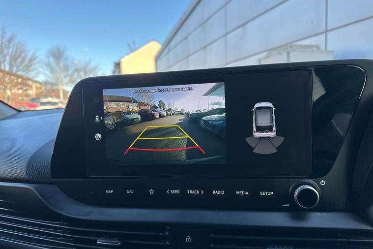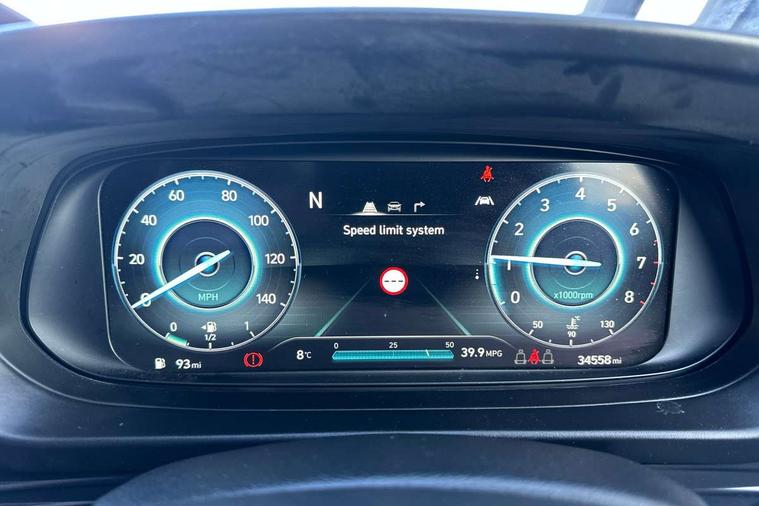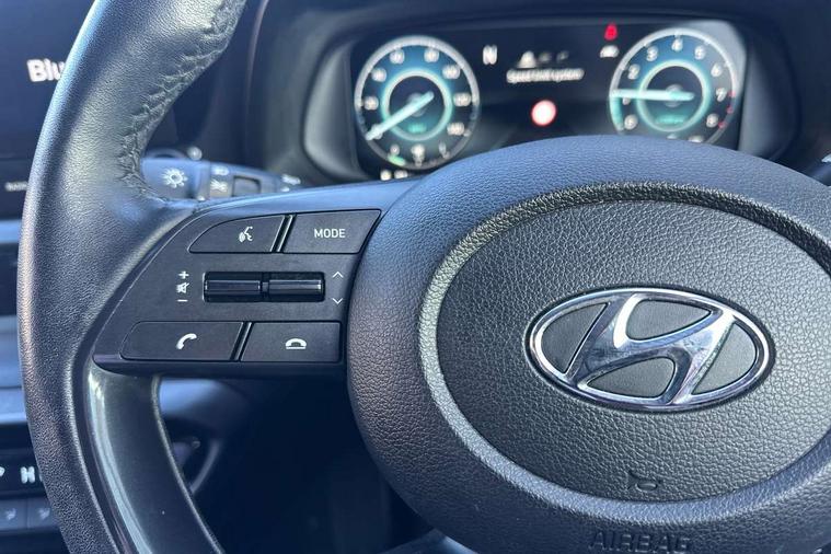 10.25" digital supervision cluster, 10.25" touchscreen centre console display satellite navigation including traffic messaging channel, map care and live services, Bluelink telematics, Bluetooth connectivity with voice recognition, Cruise control with speed limiter, Drive mode selector, Driver attention alert system, eCall emergency call system, Electric power steering, Emergency stop signalling system, Forward collision assist with pedestrian monitoring and cycle detection, Lane departure warning system with lane keep assist - LKAS, Phone connection with apple carPlay and android auto, Rear parking sensors, Rear view camera, Trip computer, Wireless charging pad, 2 front and 2 rear speakers with 2 tweeters, DAB radio, Steering wheel mounted audio/phone controls, USB and aux connection in front, Adjustable intermittent front windscreen wipers with aero wiper blade, Auto dimming rear view mirror, Automatic headlights with dusk sensor, Automatic windscreen wipers with rain sensor, Body colour bumpers, Body colour door handles, Body colour door mirrors with integrated indicators, Chrome finish window surround, Electric adjustable/heated/folding door mirrors, Electric front/rear windows with drivers one touch/anti-trap, Gloss black radiator grille, High beam assist, LED daytime running lights, LED headlamps, LED rear combination lights, Privacy glass - Rear windows and tailgate, Rear side wing doors, Rear spoiler with integrated LED brake light, Rear wash/wipe with intermittent wipe setting, Roof rails, Shark fin antenna, Static Cornering lights, Tinted windshield, 12V power outlet in front console, 3 rear seats, 60/40 split folding rear seat, Adjustable head restraints, Automatic climate control with defog system for front windscreen, Blue interior mood lighting, Cabin and luggage compartment interior lighting, Cloth seat trim, Driver's seat manual height adjustment, Front armrest/storage, Heated front seats, Heated steering wheel, Height/reach adjustable steering column, Illuminated driver/passenger vanity mirror, Interior front map reading light, Leather wrapped gear shift knob, Leather wrapped steering wheel, Luggage board, Satin chrome interior door handles, Single front passenger seat, 3 point front seatbelts with pre-tensioners, 3 point rear seatbelts, Airbags - front, front side and curtain airbags, Anti-lock braking system (ABS), Autonomous emergency braking, Childproof rear door locks, Electronic Stability Programme (ESP), Front and rear seatbelt reminder, Front passenger airbag deactivation switch, Height adjustable front seatbelts, Hill start assist control (HAC), Impact sensing auto door unlocking, Isofix child seat anchorage points - rear, Tyre pressure monitoring system, Vehicle stability management, Deadlocks, Immobiliser, Locking wheel nuts, Perimeter alarm, Remote control central locking, Speed sensitive automatic door locking, Black mono interior trim, 17" alloy wheels, Michelin Tyre brand, Tyre repair kit,