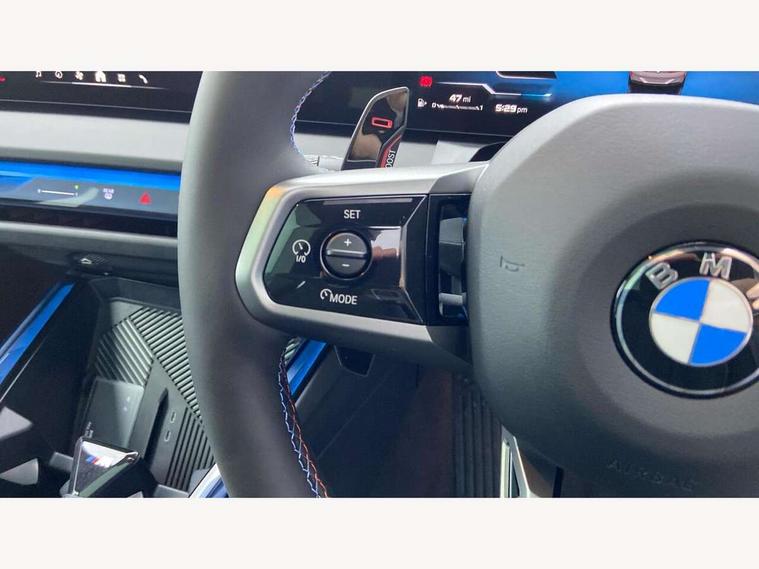 Active Guard, Attentiveness assist, Automatic operation of tailgate, BMW ConnectedDrive online services, BMW iDrive, BMW Teleservices, Brake pad wear indicator, Condition based service, Drive off assistant, Language version English, My Mode - Personal, Efficient, Sport, Relax, Expressive, Servotronic system, Variable sport steering, Dynamic stability control, Multiple control arm rear axle, Steptronic transmission with gearshift paddles, Two-joint strut-type front axle with tension strut, DAB tuner, Personal eSim, Adaptive LED Headlights, B-pillar trim panel in black high-gloss, BMW badge on front and rear, BMW M-specific front/rear bumpers and side sills, BMW radiator grille, Body colour mirror caps, Door handles flush to the surface with lock barrel on driver's side is illuminated and in vehicle colour, Driver's door mirror memory, Dynamic brake lights, Electric adjustable and heated door mirrors, Electric window trap release and convenient opening/closing feature, Headlight beam throw control, Heated rear window, Heated windscreen washer jets, High beam assistant, Invisible tailpipe trims, LED 3rd brake light, LED daytime running lights, LED rear lights, LED turning indicators, Locking of the doors, M high-gloss shadowline, Mirror base and mirror blade in black high-gloss, Mirror triangle in black high-gloss, Rain sensor with automatic headlight activation, Rear side wing doors, Rear wiper, Reversing light, Side window frame in black high-gloss, Sun protection glass, Windscreen wipers, 12v power socket in front centre console and luggage compartment, 2 x USB Type C ports for charging and data transmission (front centre console) and 2 x USB Type C ports for charging (rear centre console), 3 rear headrests, 3 seat bench in 2nd row, 3 zone automatic air conditioning, 40:20:40 split folding rear seats, Ambient lighting, Anthracite floor mats, Anthracite headlining, Electric adjustable seats with memory function, Floor mats in velour, Footrest and pedals in black plastic, Four grab handles integrated in roof lining, Front armrest with integrated control panel, Front centre console trim in black high-gloss, Front head restraints, Front sports seats, Glove compartment, i-Size / ISOFIX attachment points on both outer rear seats, with covers in black, Interior door handles in dark chrome, Luggage compartment separating net, M sport leather steering wheel, Multifunction steering wheel, Rear side armrests integrated into door trim, Selector lever with toggle operation, Single front passenger seat, Steering column adjustment, Sun visors with illuminated vanity mirrors, Three upper retaining strap clips integrated into the rear panels of the seat backrests, Through loading system, Two front cupholders and two in the rear center armrest, Wireless charging tray, Connected pro package - X3, Driving assistant package - X3, Interior and exterior mirror package - X3, M Sport pro pack - X3, 3 point seatbelts, Airbag deployment is controlled with respect to the intensity and scope, Anti-lock braking system (ABS), Automatic hold function, BMW emergency call, Brake assist, Brake drying, Brake energy regeneration, Braking readiness, Central airbag, Child locks on rear doors, Cornering brake control (CBC), Crash Sensor - activation of central locking release, hazard warning light and interior lighting, Driver and front passenger front and side airbags, Dynamic brake control, Electromechanical parking brake, First aid kit, Front and rear disc brakes, Head airbags, Integrated braking system, Post Crash Collision Warning with braking function, Trailer stability control, Tyre pressure sensor, Warning triangle, Alarm system, Closing system with central locking, Comfort access system with BMW digital key plus, Locking wheel bolts, Start/stop button with keyless motor start with acoustic drive, Seam vents in instrument panel, Tyre repair kit plus,