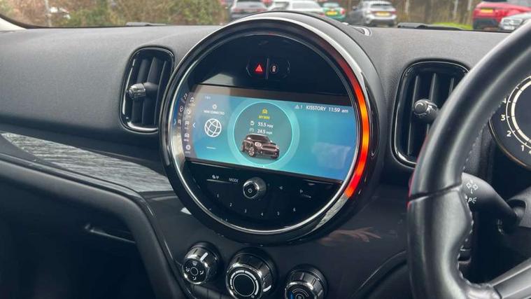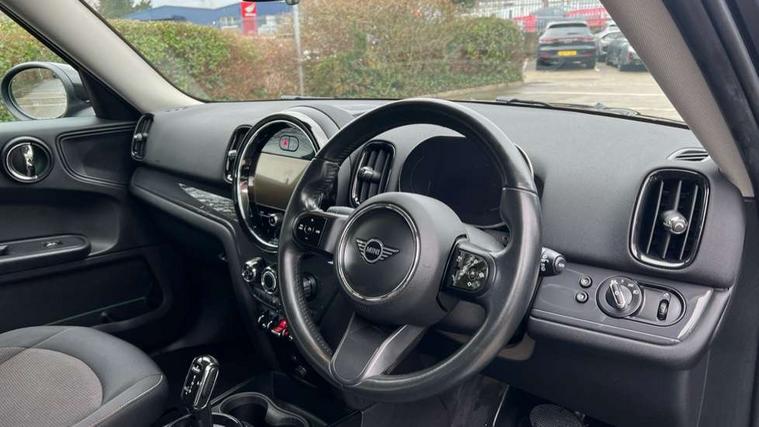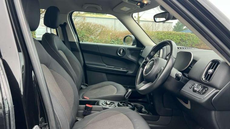 Active Guard incl speed limiting and lane departure functions with auto steering, and front collision warning with brake intervention, Automatic start/stop function with brake energy recuperation, Compatible mobile phone bluetooth with audio streaming, Cruise control with brake assist, Electro-mechanical speed dependant steering assistance, Instrument cluster, Mini E-call, On board computer, Rear parking distance control, 51 Litre fuel tank, Double Vanos system, Fully variable valve control, High precision injection, Performance Control, Steptronic transmission with double clutch, FM tuner and DAB digital radio, 3rd brake light, Body colour fuel filler cap, Day time driving lights, Door sill strips, Dynamic brake lights, Electric windows, Heated rear window, Heated windscreen washer jets, LED fog lights, LED Headlights, Left exhaust tailpipe with chrome finisher, Model logo, Model logo on Tailgate, Radiator grille, Rain sensor with auto headlights, Rear fog lights, Rear side wing doors, Rear window wiper, Side scuttle panel with integrated indicator, Split rear doors, Sun/heat protection glass, White indicator lenses, 12V socket in centre console, 3 seat bench in 2nd row, 3 spoke sport leather steering wheel + limiter function and audio controls, 360L luggage compartment capacity, 4 lashing eyes in luggage compartment, 40:20:40 split folding rear seats, Chrome interior highlights, Colour line - Carbon black, Cupholders, English handbook, Floor mats, Front headrests, Glove compartment, Headliner with grab handles and clothes hooks, Height and length steering column adjustment, Interior lighting with 12 basic colours selectable via toggle switch in roof, Isofix rear child seat preparation, Leather gearshift lever and handbrake gaiters, LED reading lights, vanity mirror lights, front foot well light and spotlight on front seats, Manual air conditioning, Mechanical seat adjustment, driver seat height adjust, forward/back and front seats backrest, Multifunction steering wheel, Passenger seat height adjuster, Rear headrests, Single front passenger seat, Storage compartments in doors, Sunvisors with vanity mirrors, Excitement pack - Countryman, Navigation pack - Countryman, 2 tone horn, 3 point seatbelts on all seats, 6 Airbags - front, side, head and seat belt tensioners, Anti-lock braking system (ABS), DSC - Dynamic Stability Control, Electronic handbrake, Front and rear disc brakes, Hill start assist, Manual rear child locks, Tyre pressure monitoring system, Alarm system with tilt sensor, monitoring doors, bonnet interior and tailgate, Auto drive away locking, Deadlocking function, Electronic vehicle immobiliser, Locking wheel bolts, Start/stop toggle with keyless go, Tool kit,