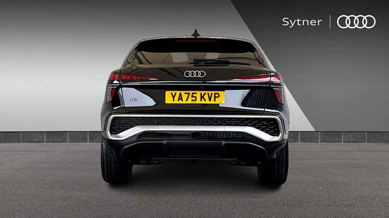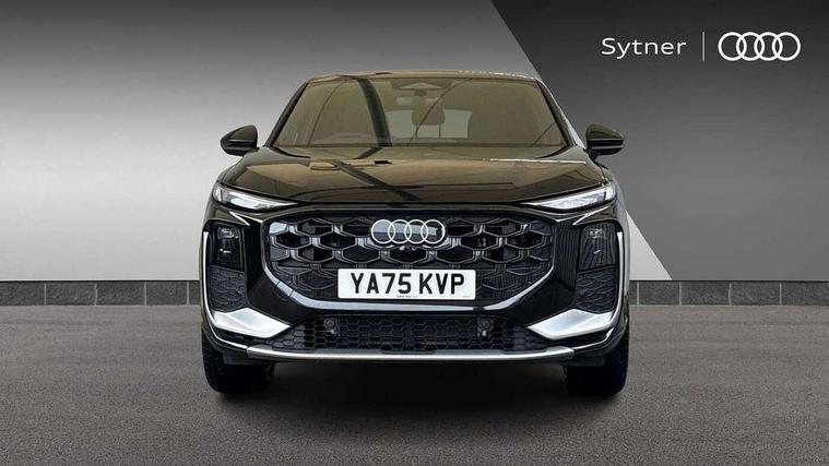 Adaptive cruise control, Audi connect emergency call and service, Audi connect remote and controls, Audi drive select (Balanced/Individual, effeciency, comfort and dynamic), Audi virtual cockpit plus - 11.9" display, Bluetooth interface, Camera based traffic sign recognition, Driver attention and fatigue monitor with driver monitoring, Front cross traffic assist, Lane departure warning with emergency assist, Panoramic curved display with 12.8" MMI navigation plus and MMI touch, Park assist plus with parking system and 360 display, Phonebox light with wireless charging, Reversing camera, Smartphone interface includes wireless Apple carplay/Android Auto, Start/stop system, Swerve assist and turn assist, Traffic sign based speed limiter, Voice control system with natural language interaction, 3 pin 10 amp domestic charging cable, Charging socket CCS type 2, Comfort suspension, Compact charging system, Industrial connector CEE 32A, 230V, Mode 3 charging cable for public charging, 22 KW (AC), Petrol Particulate Filter, 2 USB-C ports with charge and data functions, Audi sound system with 10 loudspeakers, subwoofer, 8 channel amplifier with 260 watts, DAB digital radio module, Acoustic glass for front door windows, Acoustic windscreen, Aluminium window trim, Audi Q3 sportback lettering on the B-pillars, Auto dimming door mirrors, Auto dimming rear view mirror, Body colour door mirrors, Contrasting finish in volcano grey, Electrically folding, adjustable and heated door mirrors with integrated LED side indicators and kerb view function for passenger side, Full paint finish, Illuminated door sills with aluminium inserts at the front with S logo, LED daytime running lights, LED headlights plus with LED rear lights pro with continous light strip, illuminated Audi rings, rear, LED third brake light, Loading sill protector in stainless steel, Privacy glass - dark tinted rear window, rear door and side windows, Projection light in the exterior mirrors - Projects a graphic element onto the ground, Q3 badging on the rear, Rain and light sensors, Rear side wing doors, Rear window, rear door windows and rear side windows in clear glass, Rear wiper, Sports bumpers, 3 seat bench in 2nd row, 3 spoke flat top and bottomed leather multi function sport steering wheel with gear shift paddles and "S" badging, 3-zone deluxe automatic air conditioning, 4 way lumbar support for the front seats - electric with horizontal and vertical adjustment in four directions, Black carpet mats, Black cloth headlining, Convenience auxiliary air conditioning, Front and rear floor mats, Front and rear headrests, Front centre armrest, Heated front seats, Height and reach adjustable steering wheel, Interior storage compartment, Leather/artificial leather upholstery combination with S emblem + front sports seats, Luggage compartment lid, electrically opening and closing, Manual front seats with height adjustment, Rear seat bench plus with split folded 40:20:40, Single front passenger seat, Stainless steel pedals, Steering wheel operating unit, gloss black, Storage compartment in front centre console, Ambient lighting package pro - Q3, S line exterior styling pack - Q3, 3x3 point rear seatbelts, Acoustic vehicle alerting system, Convenience key with safelock, Driver and front passenger airbag with passenger airbag deactivation, Electromechanical parking brake, Electronic stabilisation control including ABS, ASR and EDL, First aid kit with warning triangle and high visibility vests, Front emergency brake assist, Hill hold assist, i - Size child seat mounting on the front passenger side and i - Size and top tether on the outer rear seats, Power operated child locks, Seatbelt monitoring, Three point automatic belts with belt tensioner and height adjustment, Tyre pressure loss indicator, Anti theft wheel bolts, Remote central locking, Thatcham approved category 1 anti theft alarm, Dark aluminium divergence inlay, Interior elements in dinamica microfibre, Interior trims in aluminium look, Tool kit and Jack, Tyre repair kit,