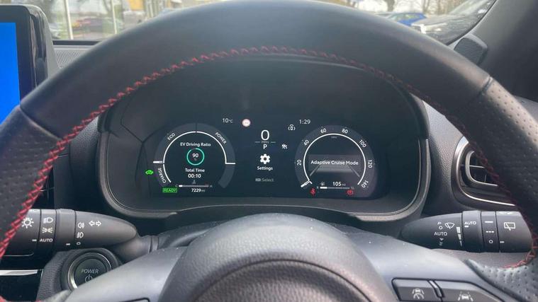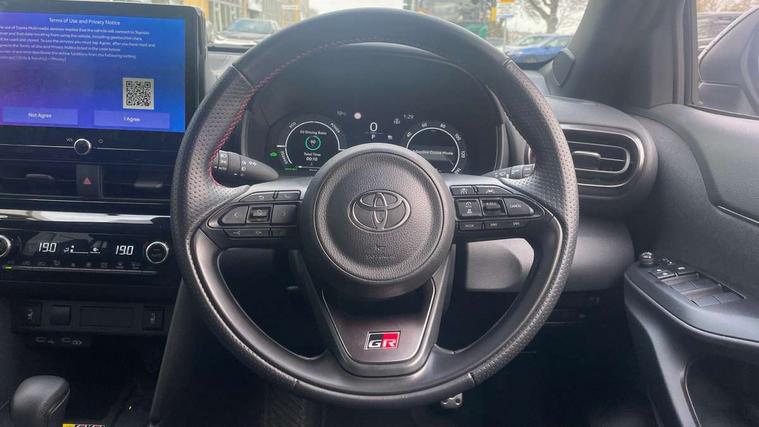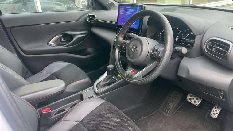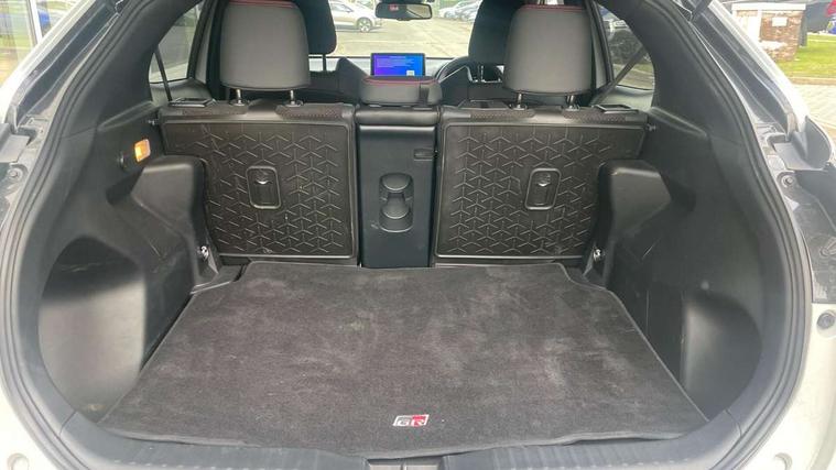 10.5" Multimedia display screen, 10.5" Toyota smart connect+ with navi multimedia system with wireless Smartphone integration incl Apple CarPlay, 12.3" Multi information display screen, Adaptive cruise control, multi info switches on steering wheel, Adjustable speed limiter, Bluetooth connectivity, Color multi-information display, Digital speedometer, Digital tachometer, Drive mode selector, Driver attention alert system, eCall emergency system, Electric power steering, Emergency driving stop system, Full range intelligent adaptive cruise control, Hybrid system indicator, Intersection turn assist, Key reminder warning, Lane trace assist, My T Connected services, Pre-collision system enhanced with emergency steering assist, Reversing camera, Road sign assist - RSA, Static guide lines on reversing camera, Tailgate, Telephone switch on steering wheel, Wireless Mobile Phone Charger, Steering assisted vehicle stability control, 6 speakers, DAB Digital radio, Front USB Type-C connector, Front USB-C device charger, Acoustic windscreen glass, Anti-jam protection on power windows, Auto dimming rear view mirror, Auto high beam [AHB] with on/off switch, Auto intermittent windscreen wipers, Automatic headlights, Automatic headlights cut-off, Black door moulding, Black lower front grille, Black protection moulding on side doors, Black rear bumper with diffuser, Black rear under run, Black roof rails, Black wheel arch mouldings, Body colour door handles, Body colour front bumper, Electric adjustable heated door mirrors, Follow me home headlights, Front and rear electric windows with auto up/down function, Gloss black upper front grille, GR Sport meshed lower front grille, GR Sport meshed upper front grille, GR sport scuff plates, Headlight cut off reminder, Indicators integrated on door mirrors, Intermittent rear wiper, LED 3rd brake light, LED daytime running lights guide, LED front fog lights, LED front light guide, LED Indicators, LED projector headlights, LED rear lights with sequential indicators, Manual headlight levelling, Noise reduction layer on windscreen, Pre wiring for towing hook, Privacy glass, Rain sensor, Rear roof spoiler, Rear side wing doors, Rear window defogger, Shark fin antenna, 12v power outlet - front, 12V power point in boot, 2x Rear coat hooks, 3 seat bench in 2nd row, 3 Spoke GR Sport leather steering wheel, 40/60 split deckboard, 40:20:40 split folding rear bench seat, Adjustable rear headrests, Adjustable speed limiter switch on steering wheel, Black roof lining, Boot light, Driver and front passenger personal lights, Driver and front passenger Whiplash injury Lesseing seats, Driver and passenger seatback pockets, Dual zone automatic air conditioning, Fabric door trim, Front console box, Front cup holders, Front door pockets, Front head restraints, Front sport seats, Front/rear assist grips, Gear shift indicator, GR sport floor mats, Heated driver and passenger seats, Height adjustable driver's seat, Height adjustable front passenger seat, Hooks for luggage holding belts, ISOFIX child restraint system, Lane departure alert switch on steering control, Leather gearshift, LED centre room light, Light on driver and passenger sun visor, Manual telescopic and tilting steering wheel, Mirror on driver and passenger sun visor, Nanoe-X air purifier, Pollen air filter, Power adjustable lumbar support on driver seat, Rear cup holders, Rear door pockets, Rear head restraints, Remote air-conditioning system, Single compartment glovebox, Single front passenger seat, Soft tonneau cover, Storage box under boot floor, Ultra suede cloth upholstery, Voice recognition switch on steering wheel, White ambient lighting in centre console, White ambient lighting in footwell, White ambient lighting on front doors, 3x3 point rear seat belts, ABS+EBD+Brake assist, Driver and passenger central airbags, Driver and passenger front airbags, Driver and passenger side airbags, Electronic parking brake, Emergency brake light system (EBS), Front seat belt reminder, Hill start assist control (HAC), Passenger airbag on/off switch, Pre-collision system with pedestrian and cyclist detection, Rear door child safety locks, Rear passenger side airbags, Rear seat belt reminder, Traction control, Tyre pressure warning system, Immobiliser, Intrusion alarm, Keyless smart entry with push button start, Power door locks, Power passenger window lock, Remote door lock, Tyre repair kit,
