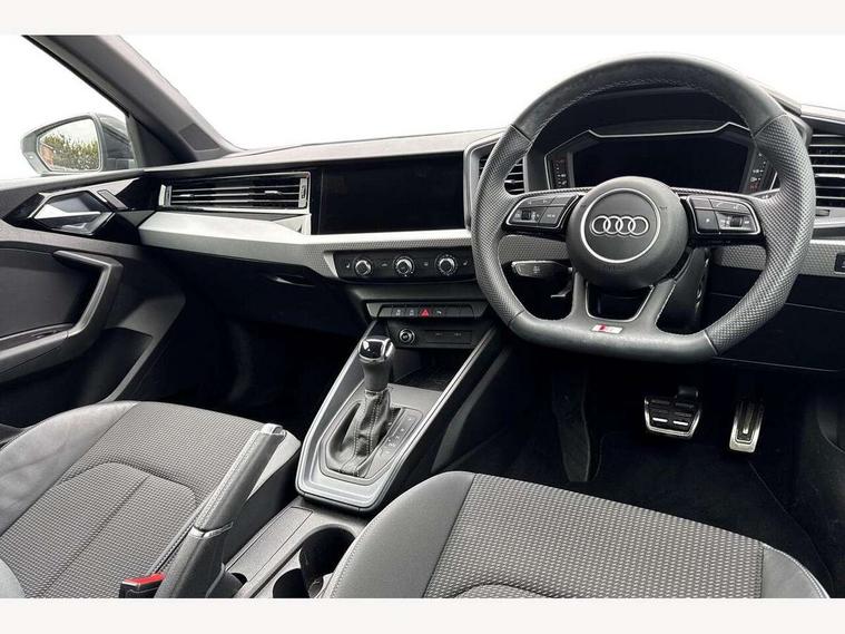 10.25" Digital instrument cluster display classis style instrument dials + speed, odometer, time, outside temperature, telephone menu + fuel level warning, Advanced driver attention and drowsiness monitor, Audi connect emergency call and service, Audi remote connect and control, Audi smartphone interface, Bluetooth interface, Camera based traffic sign recognition, Cruise control, Driver's information system, Electromechanical power steering, Lane departure warning system, Rear parking sensor, Service interval indicator, Speed limiter, Start stop system with recuperation, Voice control system, Washer fluid level indicator, Sports suspension, 2 x USB type C connection points, 6 loudspeakers, DAB Digital radio, MMI radio plus with 10.1" colour MMI display screen and MMI touch, Auto dimming rear view mirror, Black side skirts, Body coloured bumpers, Door sill trims with aluminium inlays and logo, Electric front and rear windows, Electrically adjustable, heated, folding door mirrors with integrated LED side indicator, Front side air inlets in grained matt black and C frame in anthracite black, Front wing badges, Headlight cleaning system, Heat insulating glass windscreen and side windows, Heated rear windscreen, High level LED brake light, LED daytime running lights, LED headlights with range control LED rear lights + dynamic rear indicators, Privacy glass, Radiator grille and rear diffuser in matt anthracite black, Radiator protective grille frame in matt aluminium silver, Rain and light sensors, Rear fog lights, Rear side wing doors, Rear wiper, Side front spoiler lips in grained matt black, 12V socket in centre console with two cup holders, 3 rear seats with headrests, 3 seat bench in 2nd row, 3 spoke flat bottomed multi-function plus leather steering wheel with S badging, grips in preforated leather, contrast stitching and paddle shift, 40:60 Split folding rear seat or fully collapsed, Black cloth headlining, Front and rear velour black floor mats with contrast stitching in fine silver, Front head restraints, Front passenger seat, Height and reach adjustable steering wheel, Interior lighting includes roof module, front and rear reading lights and right luggage compartment lighting, ISOFIX child seat mounting for front passenger and outer rear seats including top tether attachment point of outer rear seats, Leather gear knob with aluminium trim, Leather handbrake grip, Manual air conditioning, Manual height adjustable for driver and front passenger seat, Manually adjustable lumbar support in front seats, Stainless steel pedals, Ambient lighting package - A1, Black styling pack - A1 Sportback Black Edition, Luggage compartment pack - A1, 3x3 point rear seatbelts, Audi pre-sense front with pedestrain and cyclist recognition, Brake assist function, Driver and front passenger airbag with front side and head airbags, Electronic Stability Control including ABS, EBD, ASR and EDL, Front passenger airbag deactivation switch, Hill hold assist, Manual rear child locks, Seatbelt height adjustment for front seats, Seatbelt monitoring, Tyre pressure loss indicator, Warning triangle and first aid kit, Anti theft alarm, Anti theft wheel bolts, Immobiliser, Remote control key with safelock, Aluminium trim for control switches, air vents and digital instrument cluster, Black dashboard, Silver grey inlays polygon structure in diamond paint finish, Structured grey accent surfaces insert of air vents, interior door handle recesses and centre console in quartz paint finish,