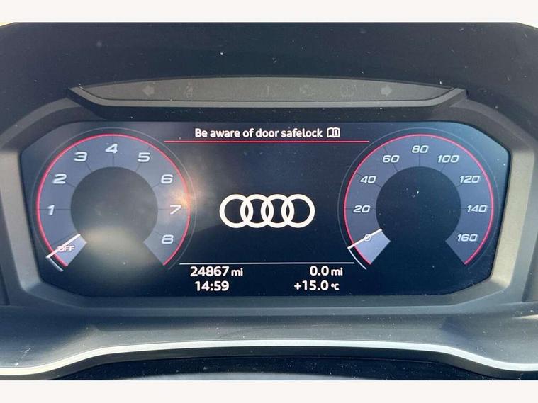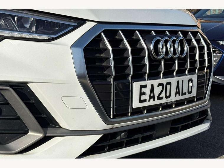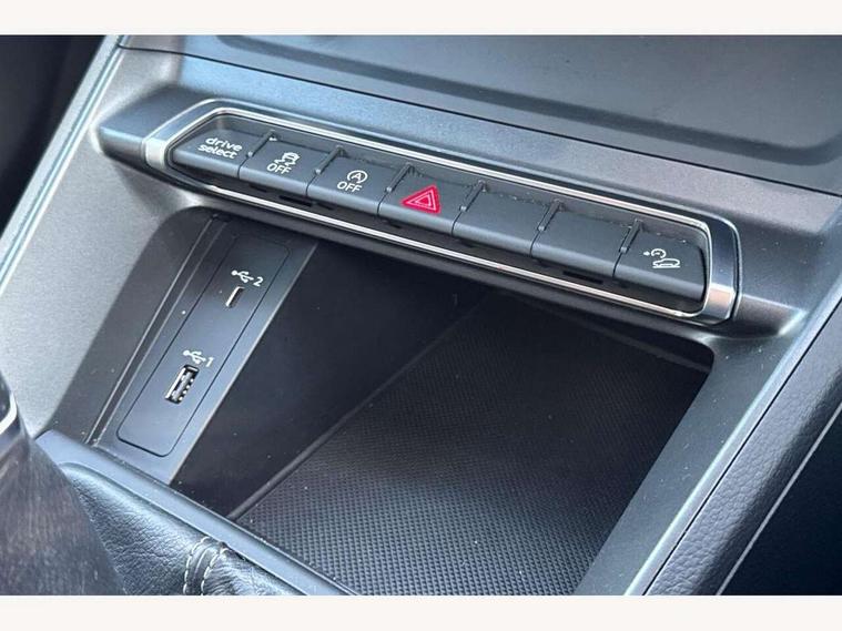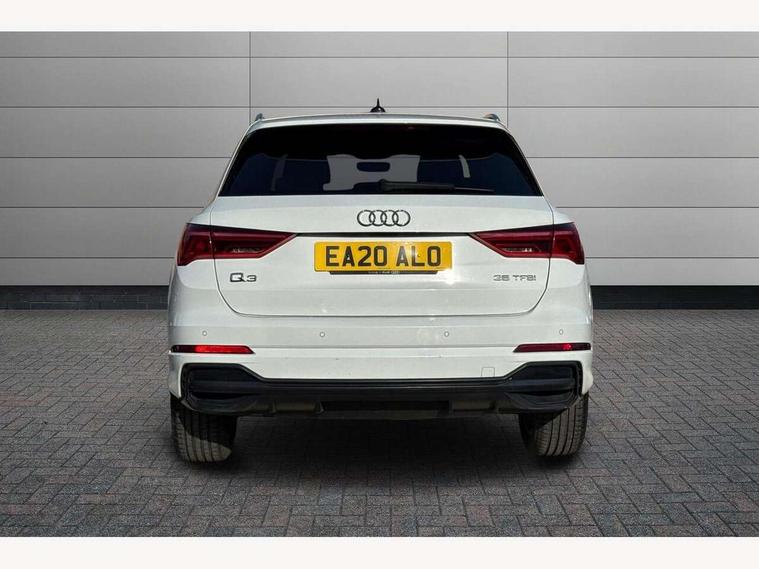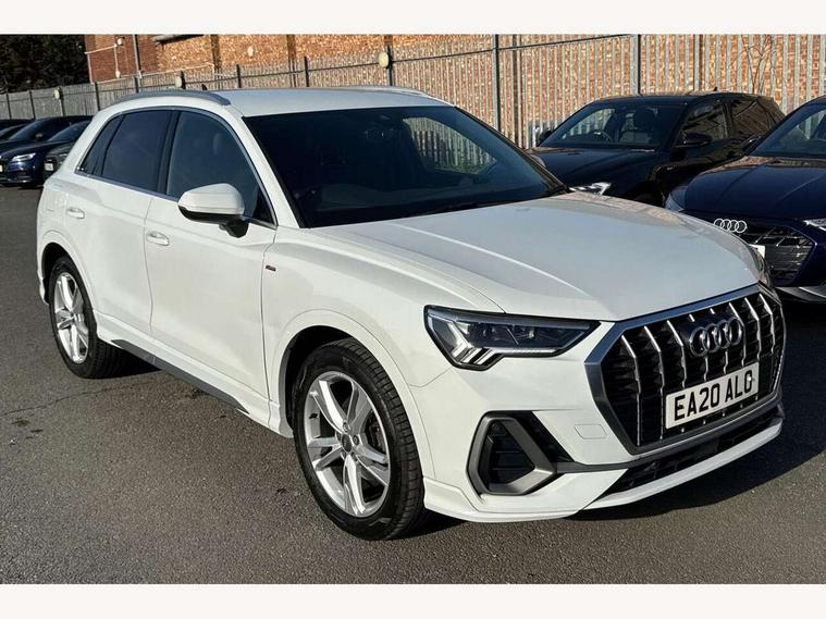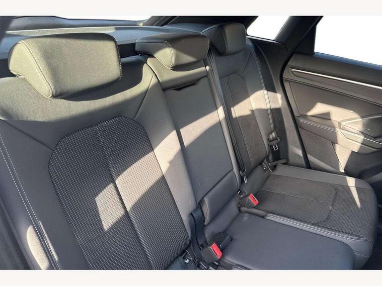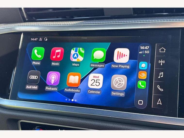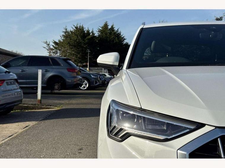 Apple CarPlay, Audi connect safety and service (e-call), Audi drive select, Audi lane departure warning, Audi side assist, Audi smartphone interface, Audi Virtual Cockpit - 10.25" display, Bluetooth interface, Camera based traffic sign recognition, Cruise control + speed limiter, MMI Navigation Plus with high resolution 10.1 inch touchscreen colour display, Power opening/closing tailgate, Progressive steering, Rear parking sensors, Service interval indicator, Start stop system with recuperation, Voice control system with natural language interaction, Sports suspension, 1 x USB type C and 1 USB type A charging points, 6 speakers, DAB digital radio module, Acoustic windscreen, Aluminium roof rails, Aluminium window trim, Auto dimming frameless rear view mirror, Body coloured bumpers, Electrically folding, adjustable and heated door mirrors with integrated LED side indicators and kerb view function for passenger side, Front and rear electric windows, Front fog lights, Front side air inlets in matt platinum grey, Front spoiler blade in matt platinum grey, Grille vertical bars in aluminium silver/Matt, High gloss black finish B and C pillars, LED headlights with LED daytime running lights and dynamic rear indicator, LED rear lights, Privacy glass, Rain and light sensors, Rear diffuser strip in matt titanium black, S Line badge on wings, S Line front and rear bumpers, Side skirt insert in matt Platinium grey, Silver chrome grille surround, Titanium black radiator grille, 12V socket in rear centre console, 40:20:40 split folding rear bench seat, 60:40 forwards/backwards position and backrest angle, Adjustable rear seat bench/backrest with centre armrest and cupholder, Aluminium door sill trims, Black cloth headlining, Dual zone electronic climate control, Front and rear black floor mats with contrast stitching in rock grey, Front and rear headrests, Front and rear roof module including reading lights, Front centre armrest with storage compartment and angle adjustment, Glove compartment lighting, Height and reach adjustable steering wheel, Illuminated door sill trims with S logo, ISOFIX child seat mounting and Top Tether with front passenger airbag deactivation, Luggage compartment light, Manual front seats with height adjustment, Perforated leather gearknob, Stainless steel luggage compartment sill finisher, Stainless steel pedals, Non smoking pack - Q3, 3x3 point rear seatbelts, 6 airbags - Driver, front passenger, curtain and side windows, Audi pre-sense front with pedestrain and cyclist recognition, Electrically operated child locks on rear doors, Electromechanical parking brake, Electronic stabilisation control including ABS, ASR and EDL, Hill descent control, Hill hold assist, Pre sense basic, Seatbelt monitoring, Tyre pressure warning, Warning triangle and first aid kit, Anti theft alarm, Anti theft wheel bolts, Remote central locking, Dark matt brushed aluminium inlay, Leatherette door armrest, MMI touch colour display in gloss black with aluminium surround,