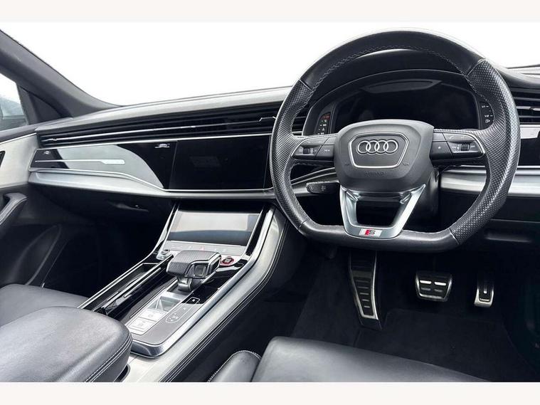 10.1" and 8.6" Dual colour touchscreens, All wheel steering, Audi connect safety and service (e-call), Audi connect with Amazon Alexa Integration, Audi drive select, Audi parking system plus includes 360 degree display with front and rear sensors, Audi virtual cockpit - 12.3" high resolution LCD display with fully customisable instrument cluster, Automatic start/stop system, Electro-mechanical PAS, Low washer fluid indicator, MMI - Multi Media Interface control system, MMI navigation plus with MMI touch, Natural voice recognition, On board computer, Operating buttons in black, glass look with haptic feedback, Power operated tailgate, Rear view camera, Service interval indicator, Smartphone interface includes wireless Apple carplay/Android Auto, 48V Mild hybrid technology, 85 litre fuel tank, Quattro all wheel drive with self locking centre differential, S specific Adaptive air suspension, Audi music interface with 2 USB ports with charge and data functions, Audi sound system with 6 channel amplifier, 180 watt amplifying capacity and 10 loudspeakers including subwoofer, Aux-in socket, DAB Digital radio, 3rd brake light, Acoustic windscreen, Aluminium look door mirrors, Aluminium window trim, Audi Beam uses LEDs to project the Audi logo, Audi HD Matrix LED headlights with dynamic front and rear indicators, Auto dimming frameless rear view mirror, Body coloured bumpers, Coming/leaving home lighting function, Electric front+rear windows, Electrically folding auto dimming/adjustable/heated door mirrors with memory function, LED side indicators and kerb view function for passenger side, Headlight washers, Heat insulating glass in windshield, LED signature daytime running lights, Platinum grey front spoiler lip and diffuser insert, Privacy glass - dark tinted rear and rear side windows from B-pillar backwards, Rain and light sensors, Rear side wing doors, Rear wiper, S specific dual brach chrome tailpipes on both the left and right, S specific front and rear bumpers, S specific radiator grille frame in matt selenite silver, S specific side skirts in matt selenite silver, Side air inlet grilles in matt titanium black, Trim and underbody protection in matt selenite silver, 2 zone automatic climate control, 4-way lumbar support for front seats, 40:20:40 split folding rear bench seat, Black cloth headlining, Comfort front centre armrest, Driver seat memory function, Electrically adjustable front seats, Front head restraints, Front/rear floor mats, Heated front seats, Illuminated door sill trims, ISOFIX child seat mounting for front passenger seat and 2 outer rear seats with top tether child seat mounting for all 3 rear seats, LED interior ambient lighting, Luggage compartment sill protection in stainless steel, Rear centre armrest with 2 cupholders, Rear headrests, Rear seat bench plus, Single front passenger seat, Stainless steel pedals, Sunvisors with illuminated vanity mirrors, Upper and lower interior elements in leather, leather door armrests, 3 point seatbelts on all seats, Audi pre sense front, Child locks on rear doors, Driver and front passenger, front side and curtain airbags, Electromechanical parking brake, Electronic Stability Control (ESC) including ABS, ASR and EDL, Front passenger airbag deactivation, Hill descent control, Hill hold assist, Predictive pedestrian protection, Seatbelt monitoring, Traction control, Tyre pressure loss indicator, Warning triangle and first aid kit, Anti theft alarm with tow away protection, Anti-theft wheel bolts and wheel loosening detection, Immobiliser, Keyless go with remote central locking, Tool kit, Tyre repair kit,