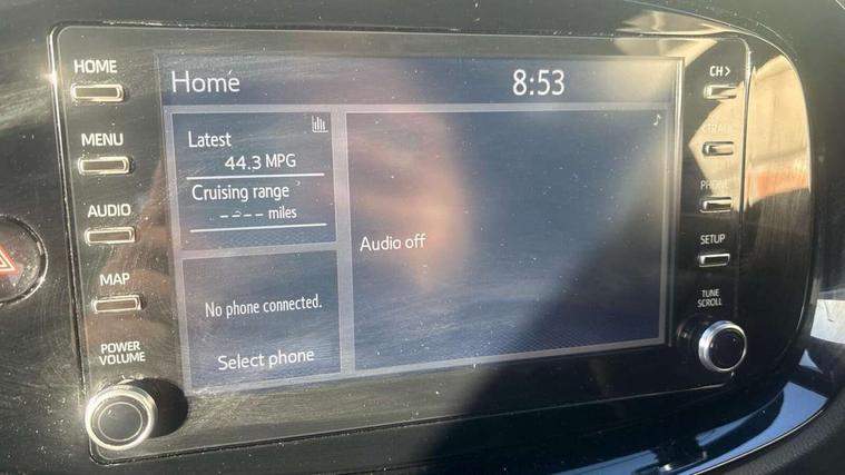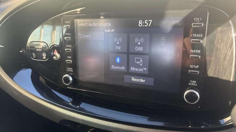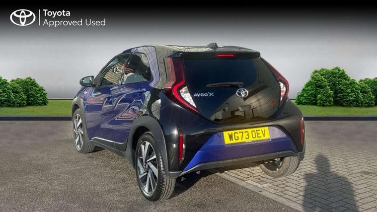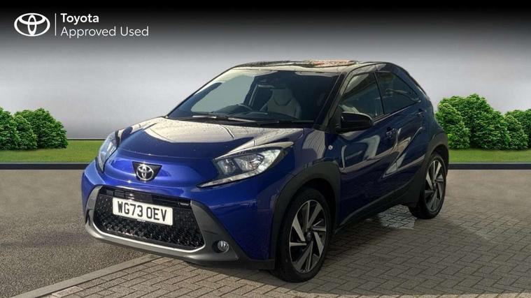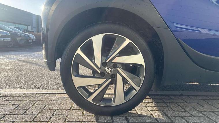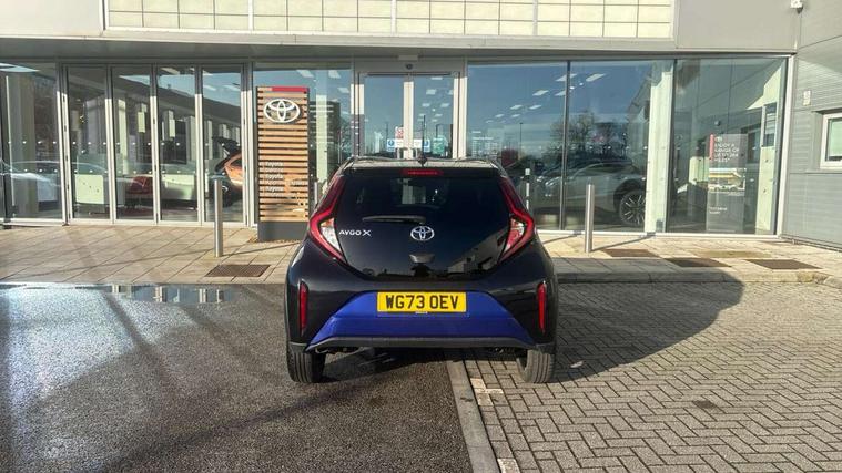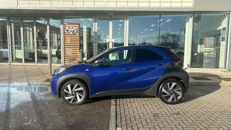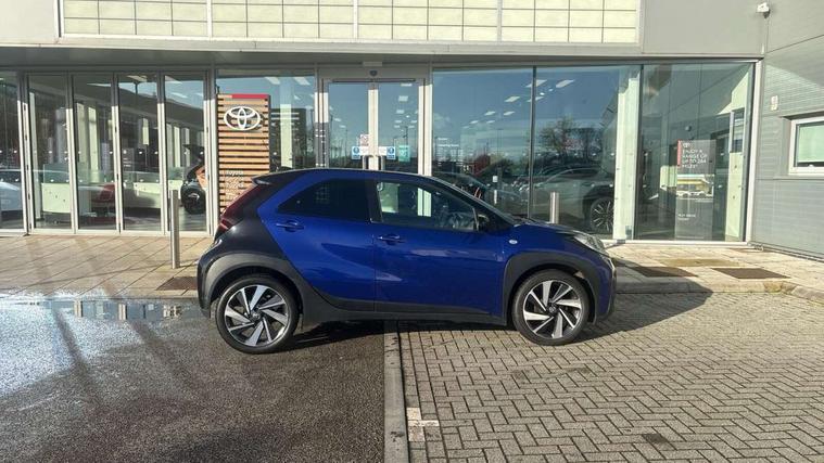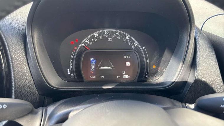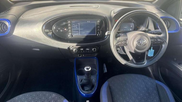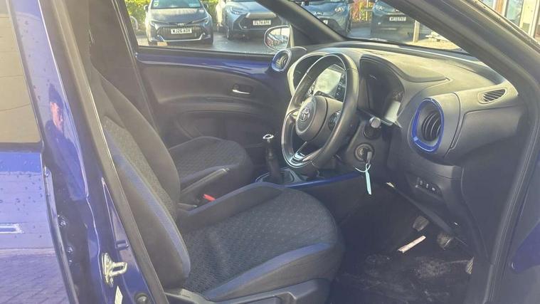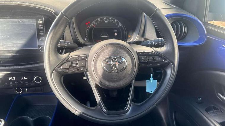 4.2" TFT colour screen, Adjustable speed limiter, Analogue speedometer, Bluetooth connectivity, Digital tachograph, Driver attention alert system, eCall emergency call system, Electric power steering, Intersection turn assist, Key reminder warning, Noise reduction kit, Pre collision system with emergency steering assist, Reversing camera with static guide lines, Smart phone integration with Apple car play/Android Auto, Speed limit display, Start and stop, Vehicle Stability Control (VSC), 4 speakers, 9" HD multimedia display touch screen with Toyota smart connect, DAB digital audio broadcast, USB connector, Auto headlights, Auto wipers, Automatic headlights cut-off, Bicycle towing hook, Black contrast roof, Black side protection mouldings, Black wheel arch mouldings, Body colour door handles, Body coloured front bumper, Boot door scuff plate, Eclipse black rear bumper, Electric heated door mirrors, Follow me home headlights, Front fog lights, Front power windows, Gloss black door mirrors, Gloss black upper front grille, Headlight cut-off reminder, LED daytime running lights, LED front light guide, LED High mounted stop lamp, Manual day/night rear view mirror, Manual headlight levelling, Pagoda roof, Power adjustable door mirrors, Power back door, Privacy glass, Projector halogen headlights, Rain sensor, Rear combination lights LED bulb type, Rear side wing doors, Rear windscreen defogger, Rear windscreen wiper, Short antenna, Variable intermittent windscreen wipers, 12v power outlet - front, 2 seat bench in 2nd row, 3 spoke leather steering wheel, 50/50 split folding rear seat, Adhesive roof headlining, Adjustable speed limiter switch on steering wheel, Audio and telephone switches on steering wheel, Auto air conditioning, Black insert on steering wheel, Black roof lining, Boot light, Centre room light, Chrome interior door handles, Chrome surround on air conditioning buttons, Clean air filter, Console box storage in body color, Fabric upholstery, Floor mats, Front and rear cup holders, Front head rest deco art, Front head restraints, Height adjustable driver seat, Intelligent adaptive cruise control switch on steering wheel, ISOFIX child restraint system on rear seats, Lane departure alert switch on steering wheel, Leather gearshift knob, Manual tilt steering wheel, Manually reclining and sliding driver seat, Manually reclining and sliding front passenger seat, Multimedia switches on steering wheel, Pollen filter, Rear door pockets, Rear head restraints, Satin silver insert on gear shift knob, Single compartment glovebox with lights, Single front passenger seat, Soft tonneau cover, Sun visors with mirror on driver and passenger side, Voice recognition switch on steering wheel, Toyota safety sense pack - Aygo X, Anti lock braking system + Electronic brake force distribution, Child safety door lock, Emergency brake light signal (EBS), Hill start assist control (HAC), Passenger airbag on/off switch, Seat belt reminder for front and rear seats, Supplement restraints system (SRS) - 6 airbags, Traction control, Tyre pressure warning system, Immobiliser, Remote power door locks, Black wheel centre caps, Tyre repair kit,