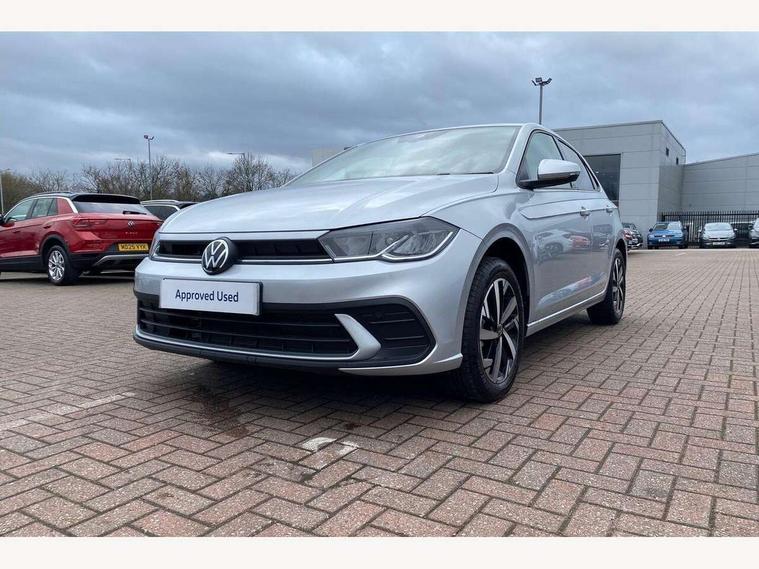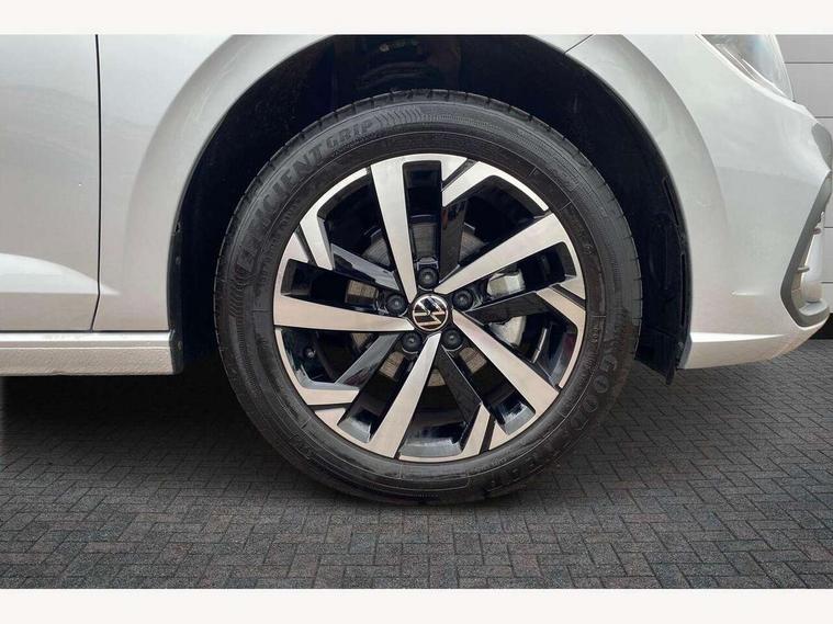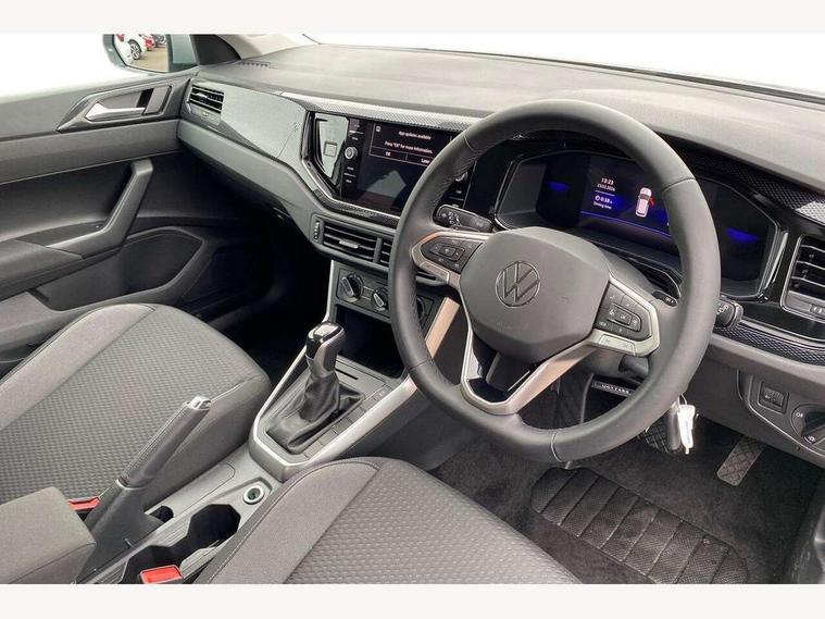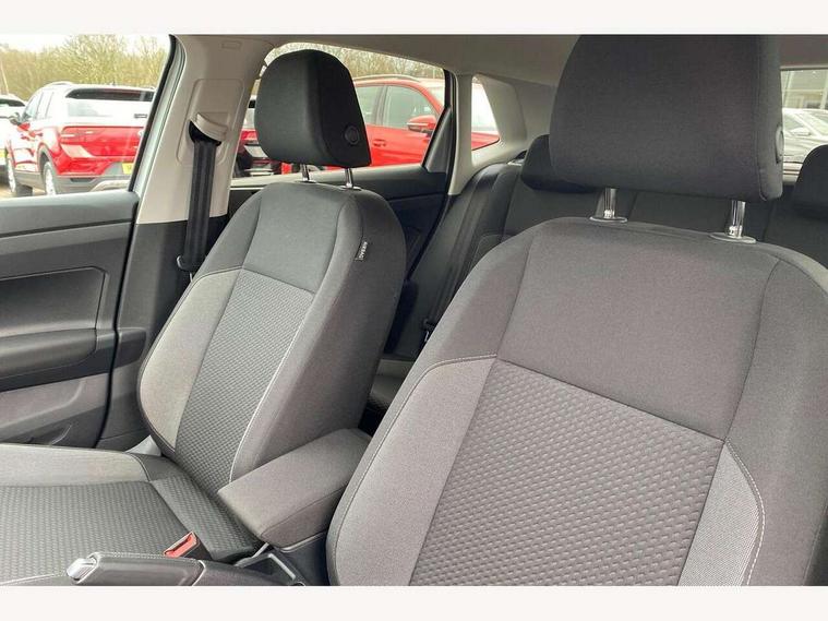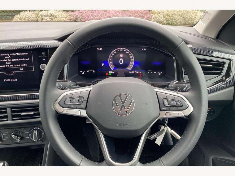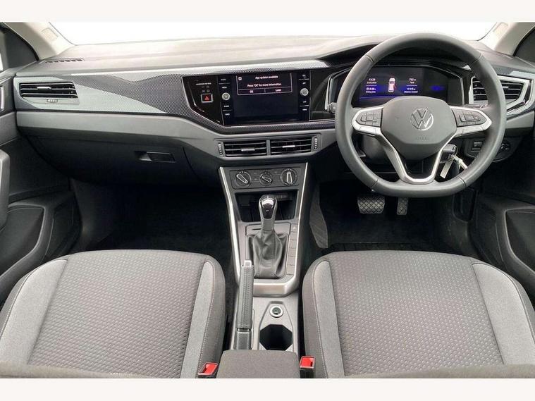 Advanced driver attention and drowsiness monitor, Bluetooth mobile phone interface, Dynamic road sign display, Emergency call service, Mobile phone preparation with inductive charging function, Multifunction front facing camera for distance control, Power assisted speed sensitive steering, Predictive adaptive cruise control without follow-to-stop and speed limiter, Preparation for navigation system with media and internet package, Preparation for We connect and We connect plus, Rear view camera, Speedo and rev counter, electronic odometer, trip, service interval display and exterior temperature gauge, Standard rear axle, Travel Assist - Lane keeping system and traffic jam assist, Travel assist including emergency assist, Trip computer, Warning signal and warning light for front and rear seatbelts not fastened, Washer fluid level indicator, Wireless app connect, Front wheel drive, Rear shock absorpion, Start-stop system with battery regeneration (recuperation - energy recovery during braking), DAB Digital radio, Diversity antenna for FM reception, Automatic dimming interior rear view mirror, Automatic headlight control with LED separate daytime running lights with coming/leaving home function, Body colour bumpers with chrome inserts, Body colour door handles, Body colour door mirrors, Electric front windows, Engine badge deletion, Headlight range adjustment, Heat insulating and laminated safety glass windshield, LED Headlights, LED rear combination lamps, Power folding adjustable/heated exterior mirrors and front passenger exterior mirror lowering function, Rain sensor, Rear electric windows, Rear fog light, Rear side wing doors, Rear tinted glass from B-pillar backwards approx 65% tinted, Rear windscreen washer and wiper with interval delay, Third brake light, 12V power socket in centre console, 2 front and 2 rear reading lights with switch off delay and dimmer, 2 USB-C ports in the front, 2 USB-C charging sockets on the center console in the rear, 3 rear head restraints, 60/40 split folding rear seat and rear seat bench not split, Ceramique roof lining, Chrome plated radiator grille inserts, air vent surrounds and light switch surrounds, Door and side trim panel, Driver and front passenger seat height adjustment, Driver/passenger sunvisors with illuminated vanity mirrors, Front centre armrest, Front seat backrest storage pockets, Front standard seats, Handbrake lever handle in leather, Hartley/Thomas cloth upholstery, Headliner in recycled material, Isofix child seat preparation easy-fit (for two outer rear seats, and front passenger seat) compatible with I-size, Leather trimmed gear knob, Luggage compartment cover, Luggage compartment lighting, Removable luggage compartment floor, Single front passenger seat, Standard climatic zones, Standard pedal cluster, Three spoke leather wrapped multifunction steering wheel with shifting paddles, Light and vision pack - Polo, 3 point height adj front seatbelts + pretensioners, 3 point seat belt for centre rear seat, 3 point seatbelts, outer rear with ECE lable, ABS, Driver and front passenger airbag with front passenger airbag deactivation, Drivers and front passengers safety optimised head restraints, ESC (Electronic stability control) + EDL (Electronic Differntial lock) and ASR (Traction control), Extended and predictive pedestrian/ cyclist protection, Front assist with autonomous emergency braking (for Adaptive Cruise Control ACC up to 130 mph), Front curtain and side airbags with center airbag, Front disc brakes, Hill hold control, Manual child lock in rear doors, Rear drum brakes, Single tone horn, Tyre pressure loss indicator, Alarm with interior protection, Anti-theft alarm system with interior monitoring, backup horn, and towing protection, Anti-theft wheel bolts, Electronic engine immobiliser, Lava stone black gloss/matt decorative inserts in dash and front door panels, 16" Torsby alloy wheels, Low rolling resistance tyres,