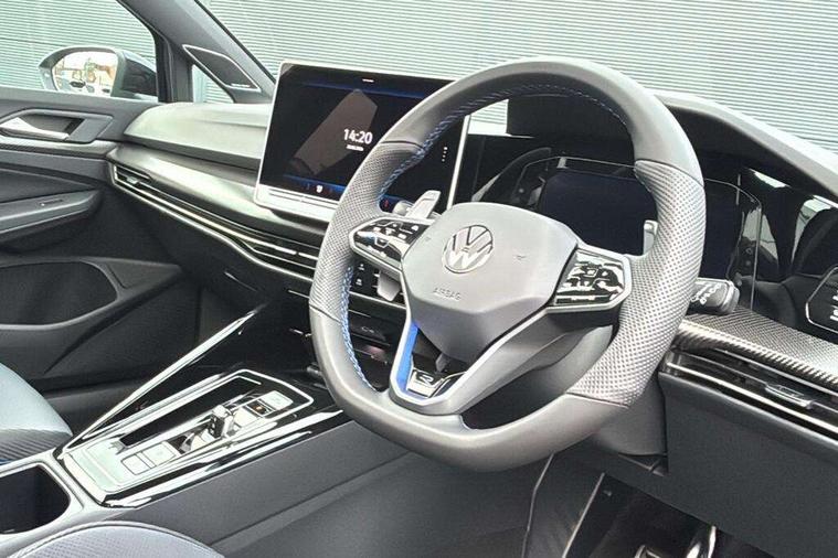 Activated carbon canister, Adaptive cruise control (ACC), Advanced driver attention and drowsiness monitor, Dynamic road sign display, E-Sim card for online connectivity, eCall emergency call system, Electronic maximum speed limit increased to 270 km/h, includes driving Modes 'drift' and 'special', larger roof spolier and GPS laptimer + G-Meter, Multi-color Digital cockpit pro, selection of different info profile possible, Multifunction front facing camera for distance control, Navigation system, Oncoming vehicle braking when turning including swerve support, Progressive steering, Side assist blind spot lane change system, rear traffic alert and exit warning system, Speed limiter, Speedo, rev counter, electronic odometer, trip, service interval display, exterior temperature and fuel gauge, Traffic jam assist, Voice enhancer and voice control, Warning signal and warning light for front and rear seatbelts not fastened, We connect plus preparation, We connect preparation, Wireless app connect, All wheel drive - 4Motion, Petrol Particulate Filter, Start-stop system with battery regeneration (recuperation - energy recovery during braking), XDS electronic differential lock for improved traction and handling, 2 USB C ports in front, 2 USB charging sockets on the centre console in the rear charging capacity upto 45W, Digital radio reception (DAB), Diversity antenna for FM reception, Gaming platform via car app, Infotainment system with 12.9" display, Mobile phone interface with inductive charging feature, 3rd brake light, Auto dimming rear view mirror, Automatic headlamp activation with Coming home and Leaving home feature, Black badge on B-pillar, Black mirror caps, Black strips on radiator grille and headlights, Body colour door handles, Darkened headlights, Darkened R Logos and VW logos in front, rear and on fender, Exterior mirrors convex on the left and aspherical on the right, Front and rear electric windows, Front fog lamps and cornering light, Heat insulating windshield made of laminated glass, Illuminated lighting animation with wake up/goodbye scenario, LED matrix headlights with ambient light V2, advanced high beam, dynamic range contol with cornering, LED rear lamp with indicator, poor weather, LED separate daytime running light, Light assist with High beam control, R name plate, Rain sensor, Rear fog light on one side and reversing lights on both sides, Rear side wing doors, Rear tinted glass 65% light absorbing from B pillar backwards, Rear windscreen washer and wiper with interval delay, Remote electrically foldable door mirrors, puddle lights and reverse activated passenger's door mirror, Welcome light with surround lighting, 12V socket in front centre console, 12V socket in luggage compartment, 3 rear head restraints, 3 seat bench in 2nd row, 30 colour ambient lighting, illuminated center console storage compartment in front, Air care climatronic 3 Zone automatic climate control with rear air conditioning control panel, Aluminium gearshift handle, Brushed stainless steel pedals, Chrome plated radiator grille inserts, air vent surrounds and light switch surrounds, Entry lights, Front + rear black carpet mats, Front centre armrest, Integrated front head restraints, ISOFIX anchors for child seats on outer rear bench seats and on front passanger seat compatible for i-Size, Luggage compartment lighting, Rear cupholder and loadthough, Single front passenger seat, Soul black instrument panel, Soul black roof lining, Split folding backrest with centre armrest and unsplit rear seat bench, Sun visors with illuminated vanity mirrors, Driver assistance pack - Golf Estate/Hatchback Auto, R styling pack - Golf, Technology park and comfort pro package - Golf Hatchback, 3 point height adj front seatbelts + pretensioners, 3 rear three point seatbelts, ABS, Autonomous emergency braking front assist with pedestrian and cyclist monitoring, Child locks on rear doors, Driver and front passenger airbag with front passenger airbag deactivation, Electronic parking brake with auto hold, ESC (Electronic Stability Control), Extended pedestrian protection measures, Front and rear black brake calipers with darkened R-logo, Hill start assist, Rear disc brakes, Two tone horn, Tyre pressure loss indicator, Volkswagen roadside assistance, Anti theft wheel bolts, Preparation for alcohol interlock, Sporty vehicle dynamics, Tool kit for tyre mobility set, Tyre mobility kit Includes 12V compressor and tyre sealant, Wheel hub cover with darkened R-logo,